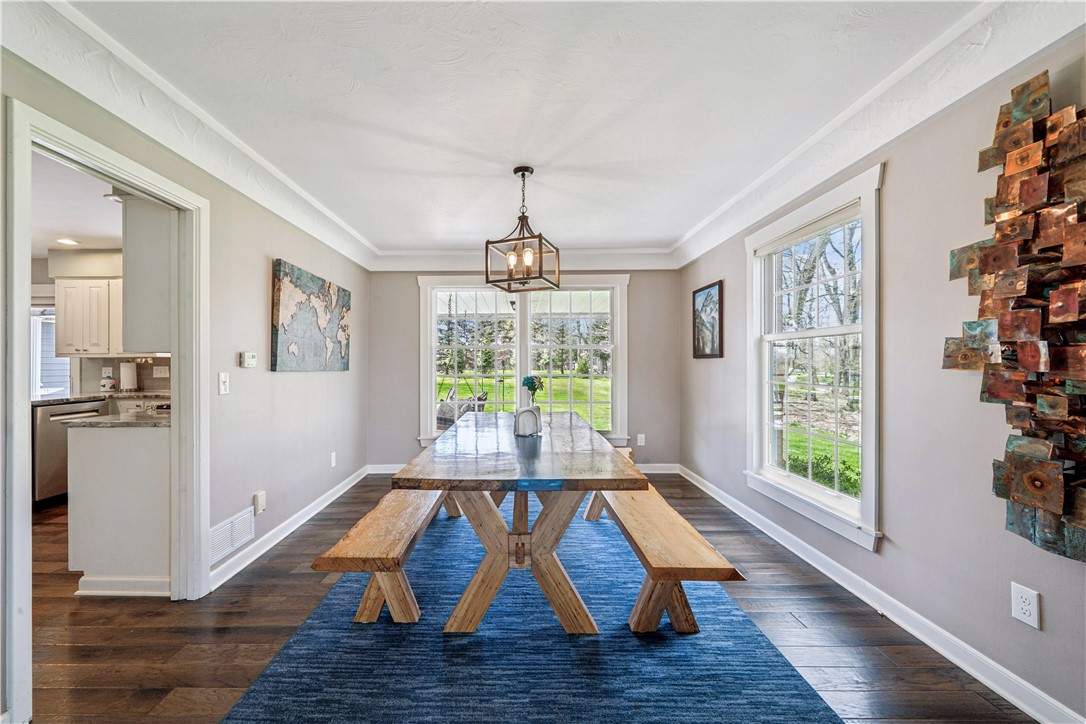 Welcome to this stunning property, perfectly situated on almost one acre lot in the award-winning Hampton school district. This home seamlessly blends classic elegance with modern convenience, offering spacious living both inside and out. Step inside to appreciate the quality craftsmanship, custom woodwork and beautiful hardwood flooring. The spacious rooms and large windows make the house light and bright. The well-equipped kitchen offers beautiful granite countertops, and the bathrooms have been updated as well. For entertainment, you'll find a large, open game room ready for gatherings and activities. The exterior is designed for enjoyment and utility, boasting a tabletop flat backyard perfect for recreation, a large shed and plenty of parking. The unique woodworking room (41'x24') can be converted into an in-law suite with a few conversions. The fine details like the central vacuum through the house, back steps from the lower-level storage to the garage and the custom quality throughout is amazing. The lawn shed with power (20'x16') can house ATVs, gardening equipment, riding tractors, etc. With more than 4,200 square feet of finished space and at least 450 square feet of unfinished space that you can personalize, this is more than just a home; it's a beautifully maintained, spacious retreat with unparalleled flexibility and location.