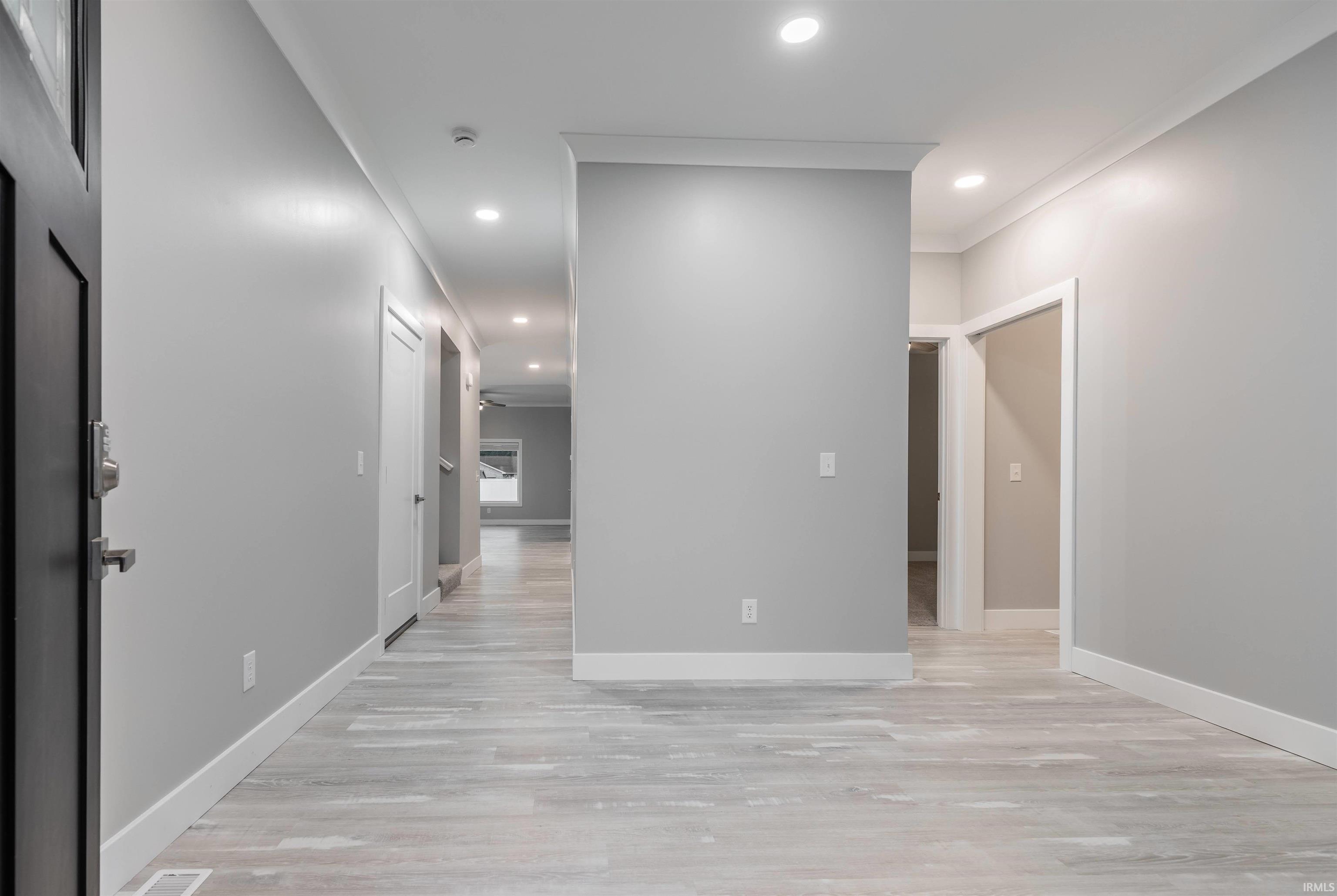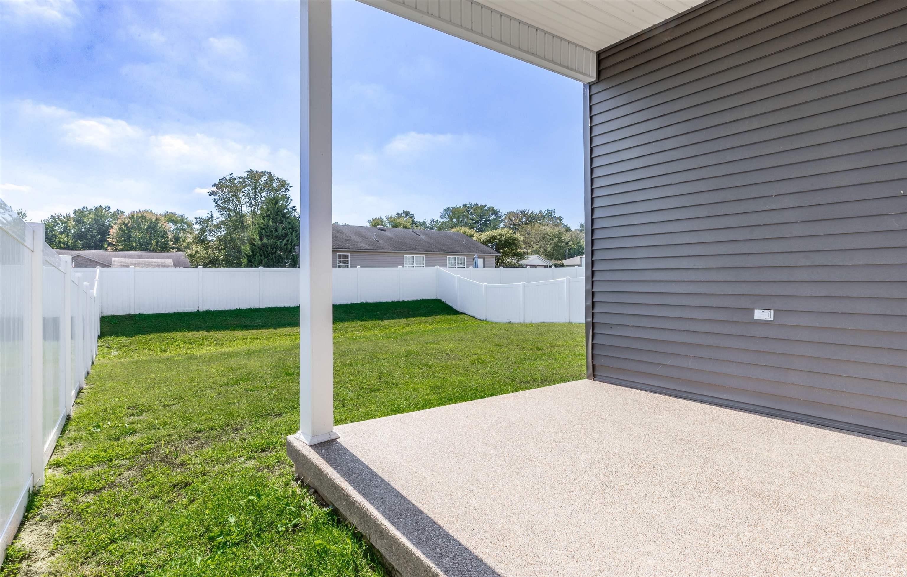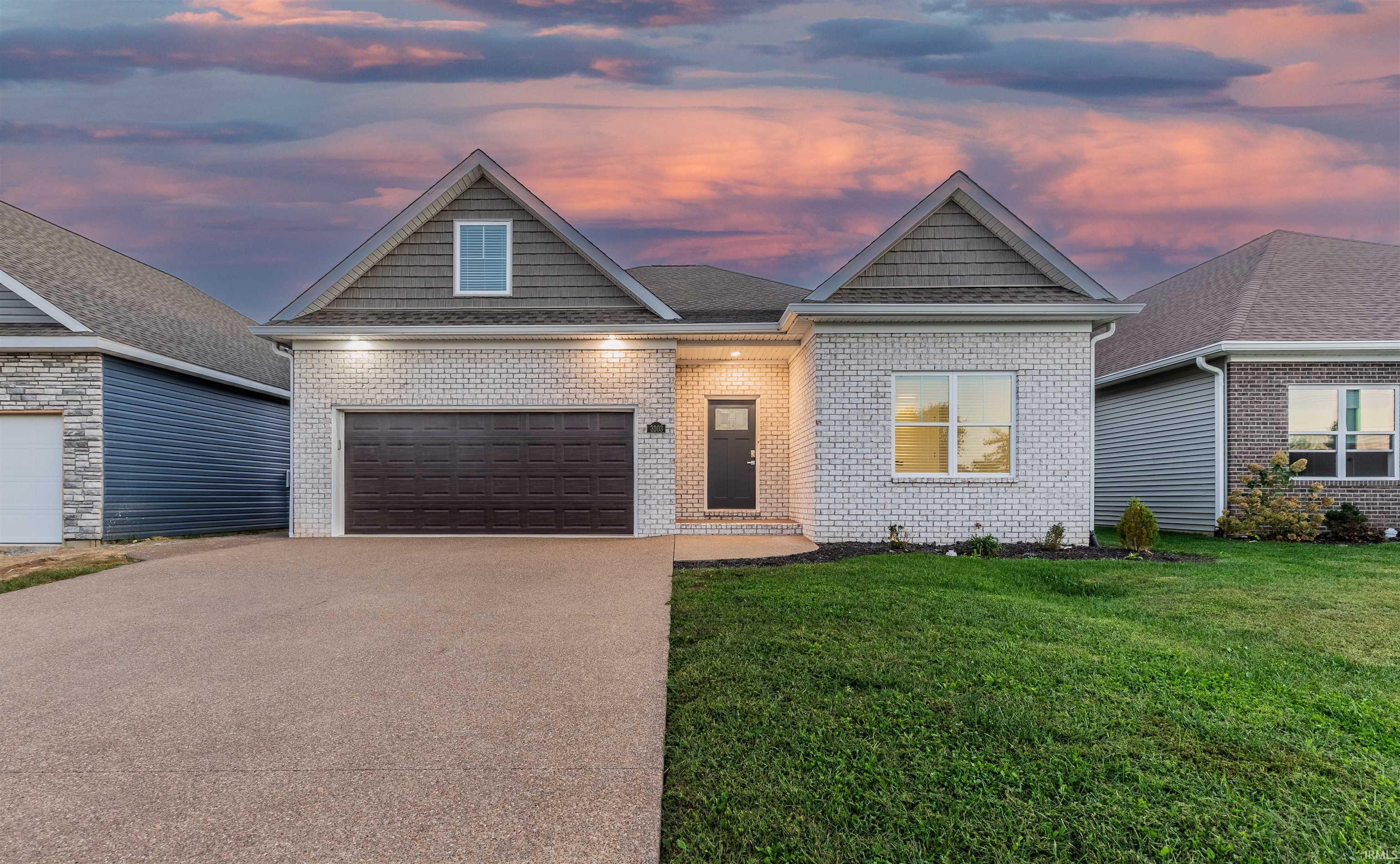 Located in McCutchanville on cul-de-sac street with sidewalks and aggregate driveways, This newly constructed home stands out with features you won't typically find - including a full vinyl privacy fence already in place. Offering over 2,100 square feet, the open-concept design welcomes you with a spacious foyer and 9-foot smooth ceilings, complemented by crown molding, tray ceilings, 6-inch baseboards, and wood shelving throughout. The kitchen blends style and function with white and gray cabinetry, granite countertops, an oversized breakfast bar, castled cabinets, subway tile backsplash, and a large walk-in pantry - plus all appliances and window blinds are already included. The owner's suite is tucked privately at the rear of the home, featuring a walk-in closet with wood shelving and a beautifully finished bath with dual vanity and tiled walk-in shower. Two additional bedrooms are positioned on the opposite side for added privacy. Upstairs, a versatile bonus room with landing space offers the perfect setup for a media room, office, or flex space. Enjoy the covered back porch overlooking the FULLY fenced yard (maintenance free) , along with a dedicated laundry room with cabinetry and a 2-car garage complete with an additional storage room. This home is priced great , brand new and with all the upgrades you can imagine! Few lots left on this one street development so construction is near the end. See the highlight sheet with more details.