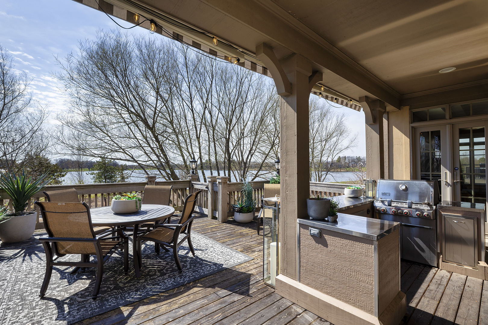 Exceptional custom residence in the highly sought-after Sanctuary Club, offering refined luxury, expansive living, and picturesque lake views on a premium half-acre lot. French-inspired architectural details and timeless design welcome you into a home defined by soaring ceilings, a dramatic staircase, rich hardwood flooring, and an open, light-filled floor plan ideal for both everyday living and elegant entertaining. The formal dining room is highlighted by a tray ceiling and statement chandelier and is conveniently connected to the adjacent butler's pantry-perfect for hosting gatherings. The gourmet eat-in kitchen is a chef's dream, featuring Viking stainless steel appliances, a six-burner range, double ovens, oversized center island, granite countertops, stylish backsplash, and a custom walk-in pantry. The kitchen flows seamlessly into the impressive two-story great room, showcasing a floor-to-ceiling stone fireplace, decorative catwalk, and expansive windows framing serene lake views. Outdoor living is truly exceptional, with a stunning lakeview deck enhanced by an outdoor kitchen with built-in grill and a retractable electric awning for shade and comfort. Whether entertaining guests, dining al fresco, or enjoying morning coffee, the peaceful water views create a resort-like atmosphere. The fully finished walkout basement offers the comfort and functionality of main-level living, featuring abundant natural light and direct outdoor access. Designed for entertaining and recreation, the lower level includes a temperature-controlled wine room just off the pool room with a full bar, a spacious game room, second family room, large dining area, and a dedicated workout room-creating a versatile space ideal for gatherings, relaxation, or extended living. The secluded main-level primary suite is a private retreat offering beautiful lake views, a grand double-door entry, private deck with jacuzzi, breakfast bar, multiple closets, and a spa-like ensuite bath with soaking tub and separate shower. Additional highlights include three generously sized secondary bedrooms with walk-in closets, two home offices ideal for today's work-from-home lifestyle, and premium finishes throughout. The attached three-car garage has been thoughtfully upgraded with a modular garage floor, storage cabinetry, dedicated work areas, and a television-creating a polished and functional space for storage, hobbies, or entertaining. A rare opportunity to enjoy luxurious indoor-outdoor living in a premier lakefront setting. Truly a must-see home that must be experienced in person to be fully appreciated.