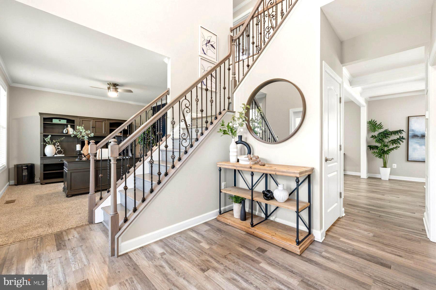 Welcome home to Sullivan Estates! Property is less than 5 years young! 5 bedrooms, 3.5 bath residence with side-load 4 car garage sits on over 3 acres and backs to wooded privacy! Contemporary open floor plan with luxury vinyl plank flooring. Gourmet kitchen boasts granite countertops, oversized island, tiled backsplash, two pantries, and stainless steel appliances. Dining room showcases beautiful coffered ceilings, crown molding, and a butler's serving station. Kitchen and dining room open up to the family room featuring a stone surround gas fireplace. The bright and airy sunroom with vaulted ceiling leads outside to a maintenance free composite deck backing to trees. The office is located off the foyer. Generously appointed primary suite with tray ceiling, large walk-in closet, and attached luxurious ensuite with two vanities, walk-in shower, and soaking tub. The upstairs level also has 3 additional bedrooms, a hallway bath, and the convenience an upper-level laundry room. The finished walkout basement has a huge rec room, a bonus room that can be used as a not-to-code 5th bedroom, a full bath, two unfinished storage rooms, and access to a lower-level patio. Some unique features of this property include the 4 car garage, 3 outdoor living spaces, two kitchen pantries, radon mitigation system, brand new roof replaced in 2025, and septic pumped only 6 months ago. Rear property line extends far into the woods for added privacy. Location couldn't be better! Easy access to I-95, US-17, and Rt 28/Catlett Rd. This residence is zoned for Margaret Brent Elementary, Rodney E. Thompson Middle, and Mountain View High School.