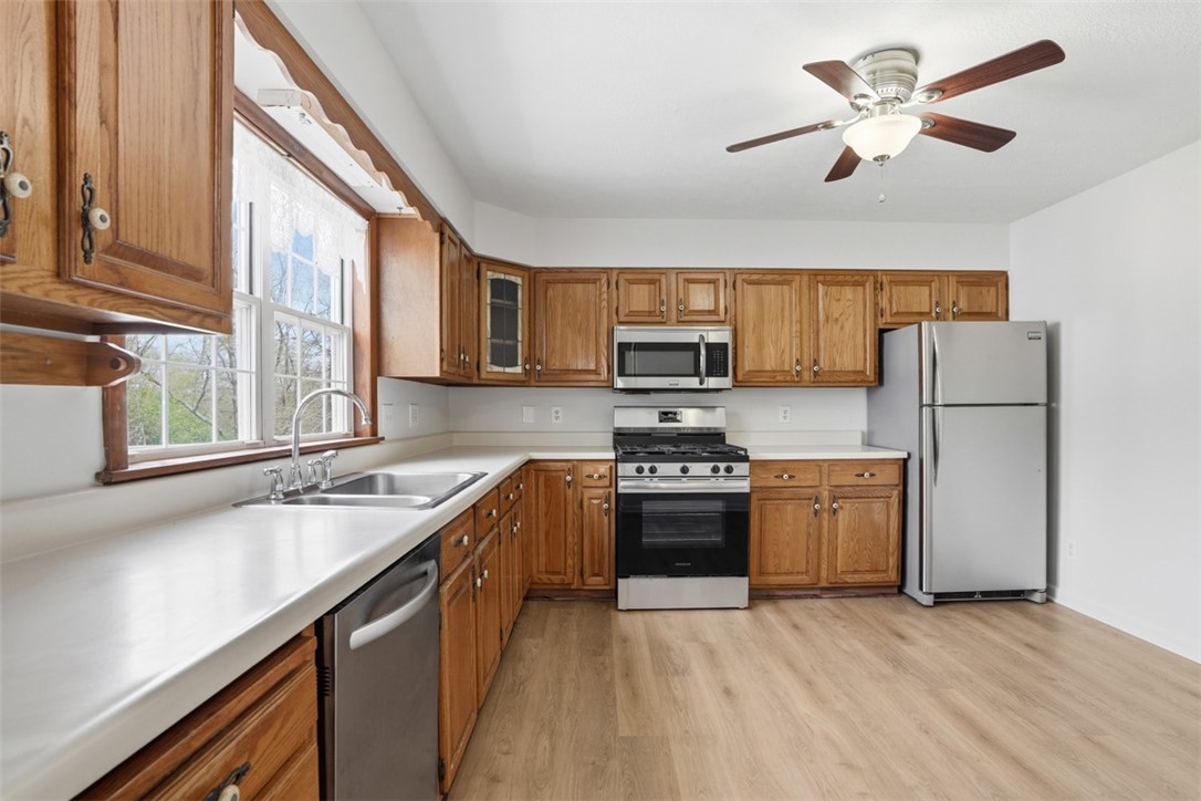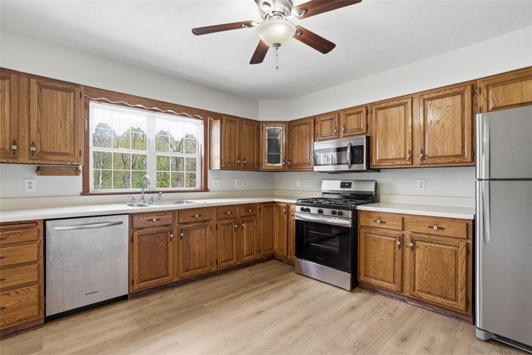 Welcome to 108 Whitney Drive - a newly renovated 4-bedroom, 3-bath home located in the heart of Cranberry Township! This spacious property features brand new luxury vinyl flooring throughout the main living areas, updated lighting, and fresh neutral paint, creating a bright and modern feel. The kitchen is equipped with stainless steel appliances and offers ample space for an eat-in area, while a dedicated dining room provides the perfect setting for entertaining. Enjoy generous storage throughout the home along with well-sized bedrooms and thoughtfully designed living spaces. The finished lower level includes a dedicated office, a cozy den, and a full bath, along with a brand-new washer and dryer, with direct access to the nearly half-acre flat yard - ideal for outdoor living. Step outside to enjoy the deck, covered patio, fire pit, and storage shed, offering multiple options for relaxation and entertaining. Additional features include a two-car garage and a large driveway, providing plenty of parking. Conveniently located near shopping, dining, and major roadways, this home offers both comfort and accessibility. Ready for its next tenants now!