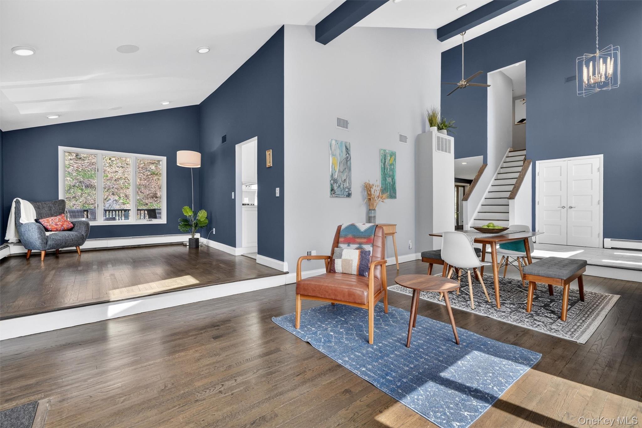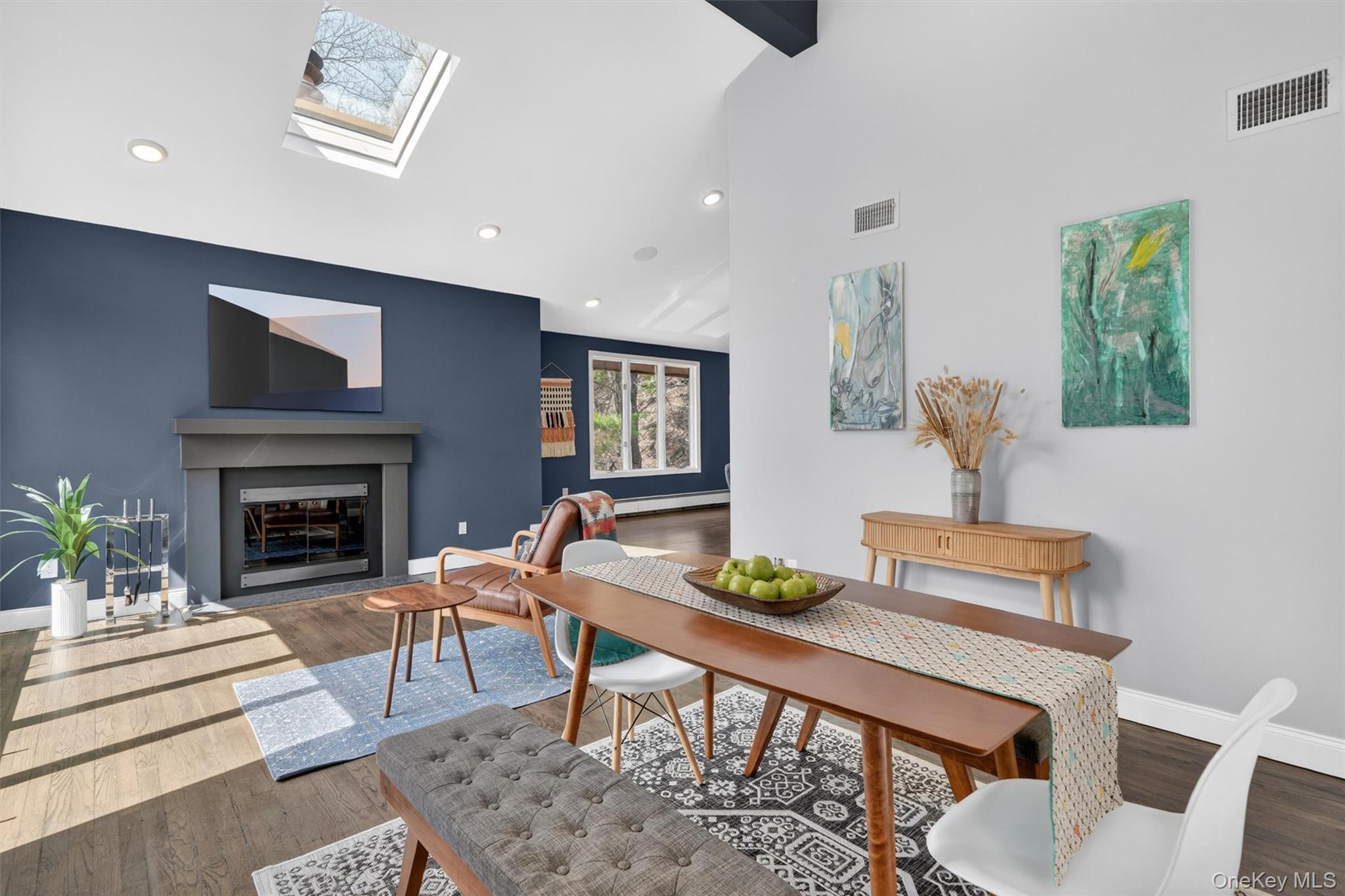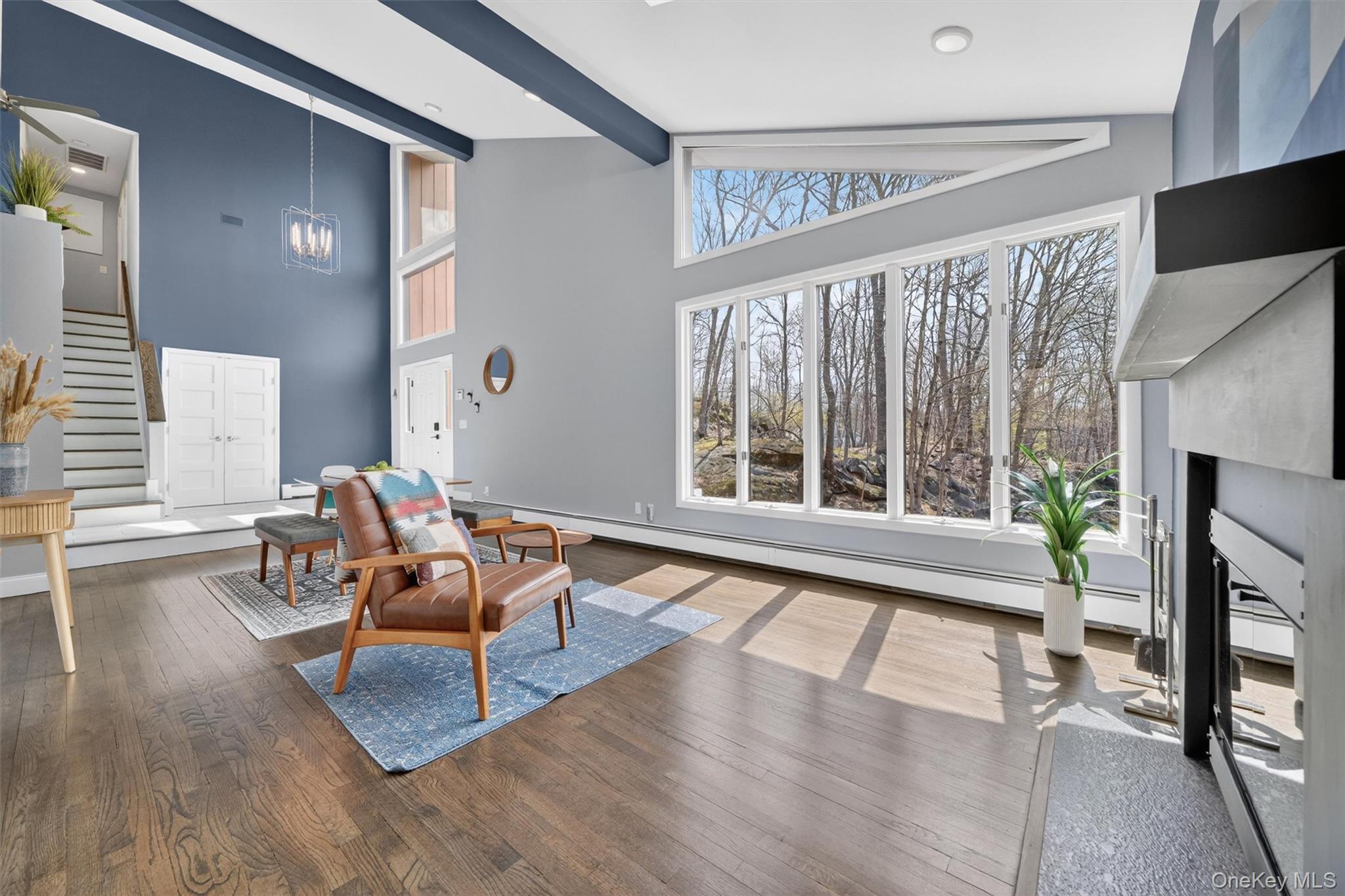 Tucked away at the end of a cul-de-sac, this architectural Contemporary offers a rare blend of high-design entertaining and restorative tranquility. A soaring foyer sets an expansive tone, leading to a sun-drenched living room anchored by a classic wood-burning fireplace. The chef's kitchen, featuring a generous center island, flows seamlessly to an extensive deck for al fresco dining. Indoors, the four-season sunroom provides a year-round connection to nature, while the great room - complete with a custom wet bar and pellet stove - serves as the home's social heart. The first level bedroom provides comfort and privacy for guests. The primary suite is a true retreat, with walk-in closets, and a spa-inspired bath with heated floors and a zero-barrier shower. Just in time to enjoy summer, the outdoor grounds transform into a private resort featuring a heated Gunite pool, hot tub, and a cabana with kitchenette, half bath and outdoor shower. Equipped with Sonos surround sound interiorly/exteriorly and a Tesla charger. This smart home is located just minutes from Croton-Harmon and Cortlandt stations, offering a scenic NYC commute in under an hour. Note some photos are virtually enhanced/staged. Live the dream...where modern luxury meets resort-style living every day!