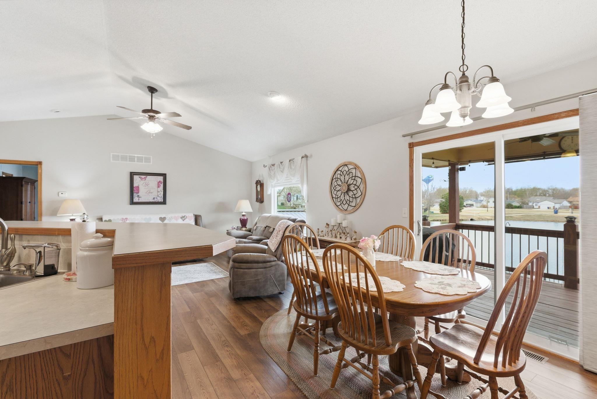 Have you been on the hunt for a ranch style home, located on a quiet, cul-de-sac lot, with a water view...and the best part NO SPECIALS?!? If so your search stops here!!! Welcome home to 6465 N. Upchurch Circle. This tranquil, well maintained home may be just what the house hunting doctor ordered! The welcoming front porch invites you into the main living area, and right away you're wowed with the beautiful water views! On to the kitchen which includes appliances that remain with the home, a pantry, and an eating bar that opens to the dining area. Who wouldn't love to have dinner overlooking the water, and catching a sunset! The primary bedroom features a walk in closet, and an en-suite bath complete with a double vanity, and a recently updated, custom tiled/marble shower! Two additional bedrooms, separate laundry room, and a full bath that includes a recently added heated/whirlpool tub, round off your tour of the main floor. Head downstairs to the spacious rec room, which features a gas fireplace, and lovely view out windows, so that you can enjoy the outside from all levels! One additional bedroom, a full bath, and a very large storage area complete the lower level tour. Don't forget to check out what's sure to be your favorite hangout...the outside deck, and patio area!!! Whether grilling, chilling, or playing you're sure to love this space. Pride of ownership beams through the inside/out of this home, and the following are a just few updates that have been made since the sellers purchase: New roof along with new gutters, and gutter guards installed in 2025 by Rhoden Roofing, New Pella patio door installed in 2024, 6 new Pella windows installed in 2025, New main car overhead garage opener installed in 2025, New exterior paint, New luxury vinyl plank flooring installed in the living/dining area in 2023, Decorative trusses added in front and back, Added a water filtration system, and a new concrete patio area complete with a gazebo in 2020!! The owners said they have loved watching the sunsets, and the fireworks from the deck of the home, and hope the new owners will now be able to enjoy that as well. There is a park close by for play, a walking path, and lots of fishing to enjoy if that floats your bobber or lure! Close proximity to highway access, food and amenities, and did I mention NO SPECIALS?!? Why buy new, when you can save lots of money on a home that shows new!!! Come check it out today, make it yours, and start your summer off right...in your new home!!!