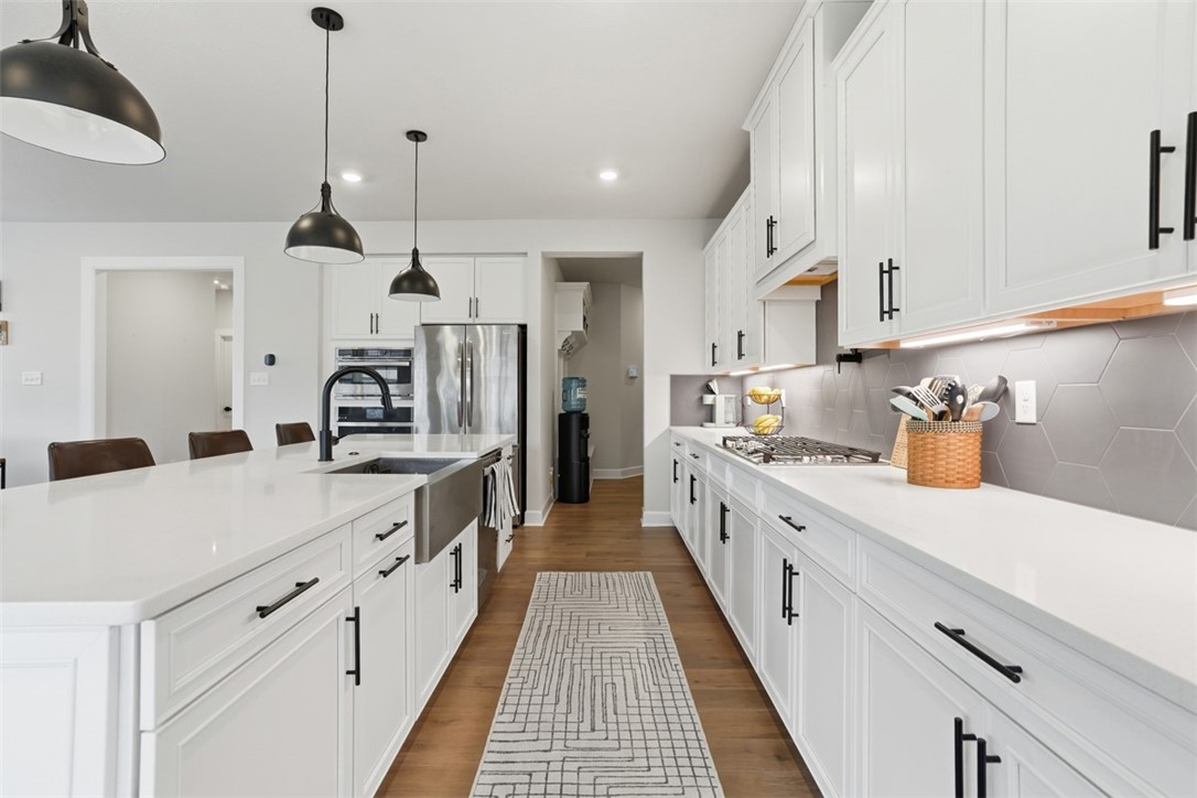 Welcome home to 4001 Cross Creek Circle! This beautifully maintained, three-year-old home offers 5 bedrooms and 5 bathrooms with a thoughtfully designed layout perfect for modern living. The main level features a spacious primary suite with a private en suite bath, providing true one-level living convenience. Enjoy durable and stylish LVP flooring throughout the main floor, which includes an inviting eat-in kitchen, cozy family room, dining room, private office, guest bedroom, laundry room, and a walk-in pantry. A mudroom off the garage adds everyday functionality, while the deck is ideal for outdoor entertaining. Upstairs, you'll find three additional bedrooms, two full bathrooms, a large den, and extra storage space - perfect for growing needs. The home is completed by an impressive 33x30 finished basement featuring a custom bar, full bathroom, and walk-out access to a gravel patio. With ample storage and space, there's even potential for a 6th bedroom. A perfect blend of comfort, space, and flexibility - this home truly has it all.