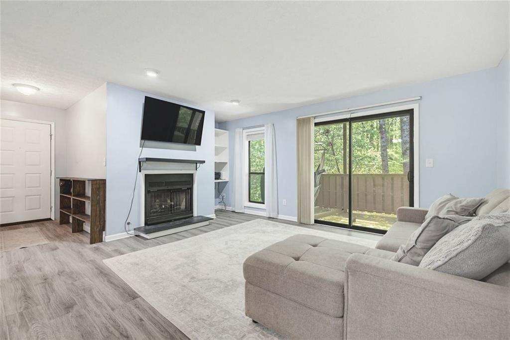 Welcome to this well positioned one bedroom, one bathroom condo located on the main level in the established Woodcliff community of Sandy Springs. Backing to a serene, wooded setting, this home offers a rare sense of privacy and natural surroundings while remaining close to everyday conveniences. Inside, the layout is both functional and inviting. The family room features a fireplace and opens directly to a covered deck overlooking the trees, an ideal spot for morning coffee or unwinding at the end of the day. The dining area flows seamlessly into the kitchen and offers ample space for hosting, while the bedroom is generously sized and, also enjoys peaceful wooded views. Additional features include a walk-in closet, full bath, and a dedicated laundry room. The Woodcliff community is known for its well-maintained grounds and amenities, including swim and tennis. Major exterior updates have already been completed, with new roofs installed in 2022. A great low maintenance opportunity to own in a well-maintained community with a peaceful, natural setting.