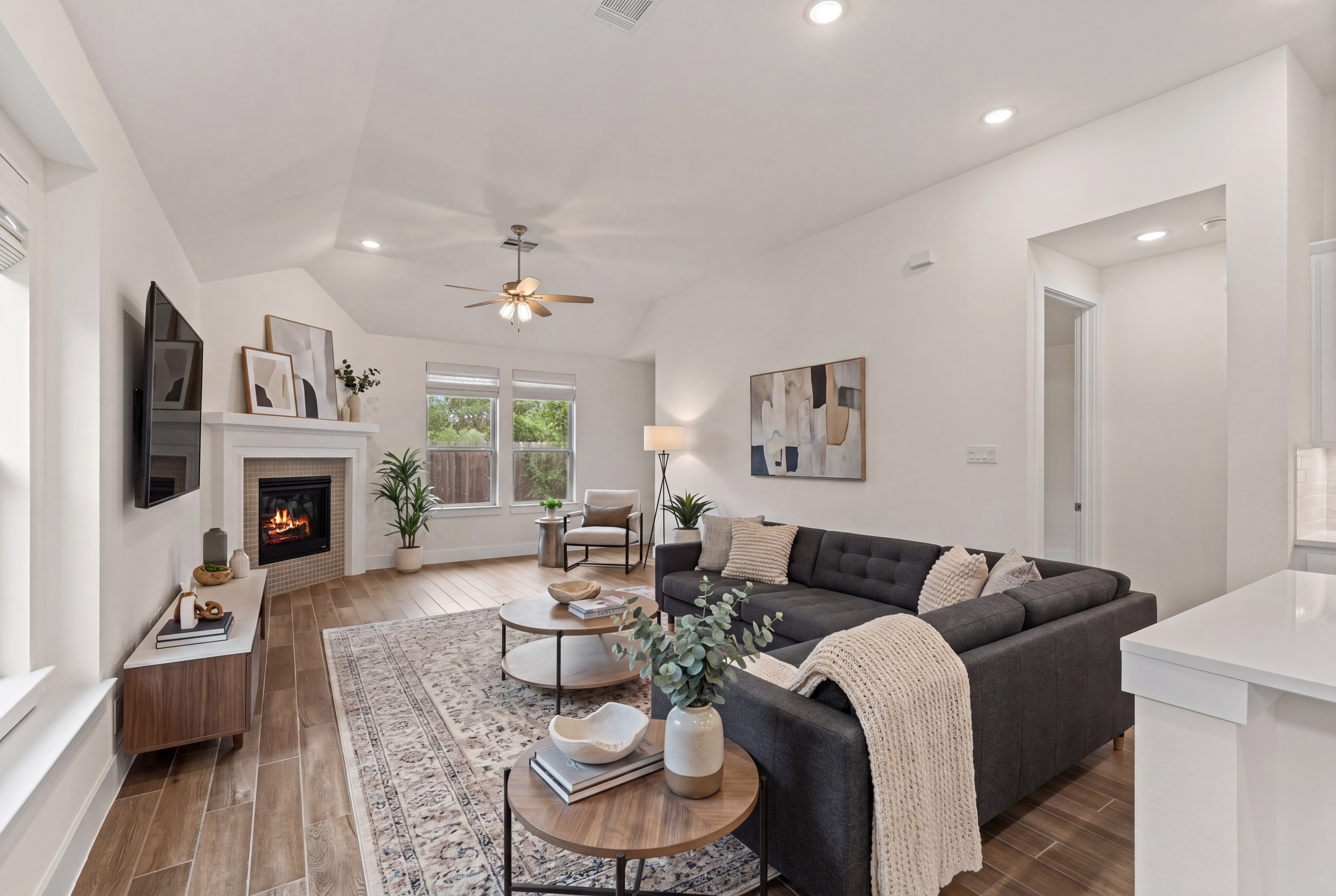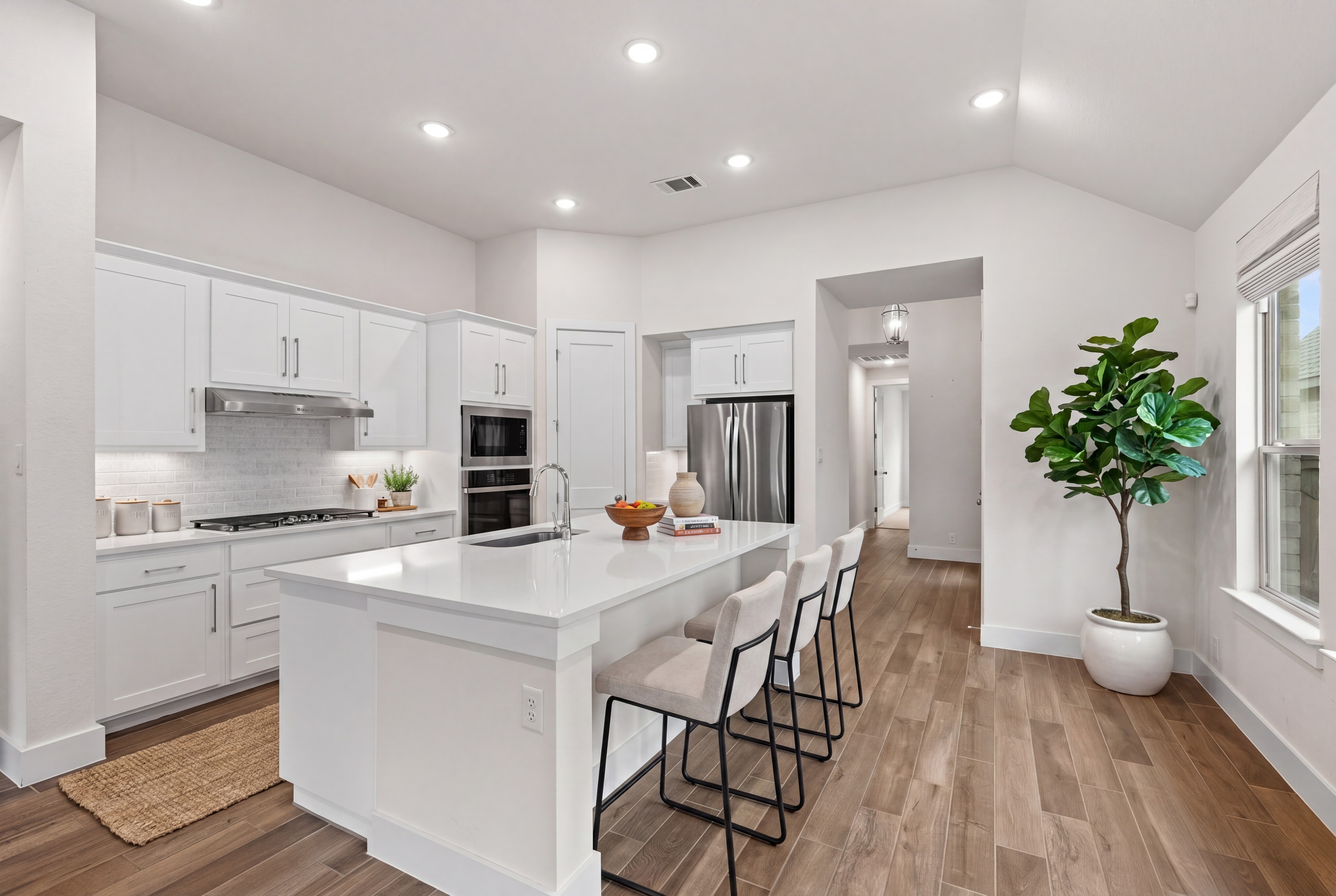 A golf cart ride to the vibrant heart of downtown NB and Gruene places this refined garden home moments from iconic dining, live music, and the timeless charm of the Hill Country.This 3 bedroom, 2 bath residence showcases wood-look tile flooring throughout the main living and dining spaces, creating a seamless and sophisticated flow.The island kitchen features gas cooking, built-in stainless steel appliances, and a walk in pantry all opening effortlessly to the main living area for elevated everyday living and entertaining.The primary suite offers a serene, spa inspired retreat, featuring a soaking tub, and separate shower.The backyard offers a peaceful setting for morning coffee or evening gatherings, complemented by a low-maintenance yard ideal for a lock-and-leave lifestyle.A rare blend of location, design, and ease this home delivers understated luxury in one of New Braunfels’ most desirable settings.