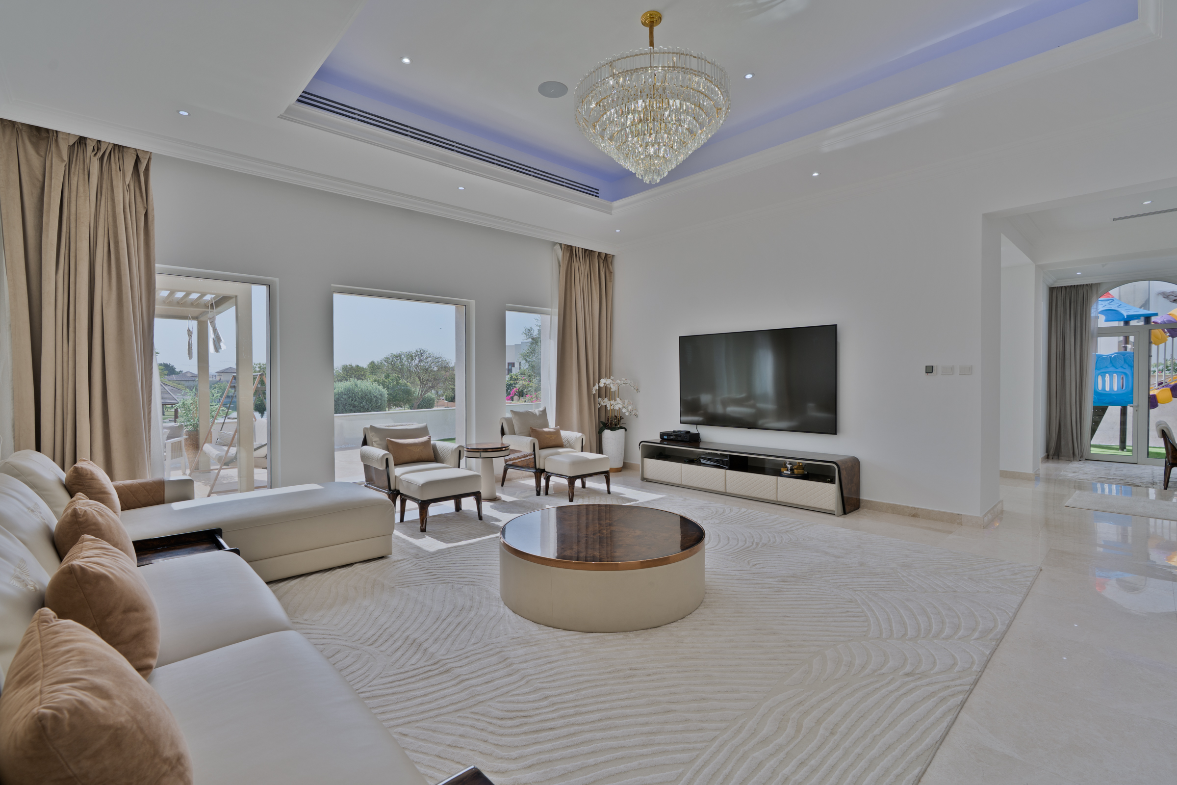 Designed keeping families in mind, the fully-furnished home features airy open-plan layouts and refined interiors. A combination of soothing pastels and balanced hues lend unique character to each room, and light features consistently throughout thanks to tall glazing.