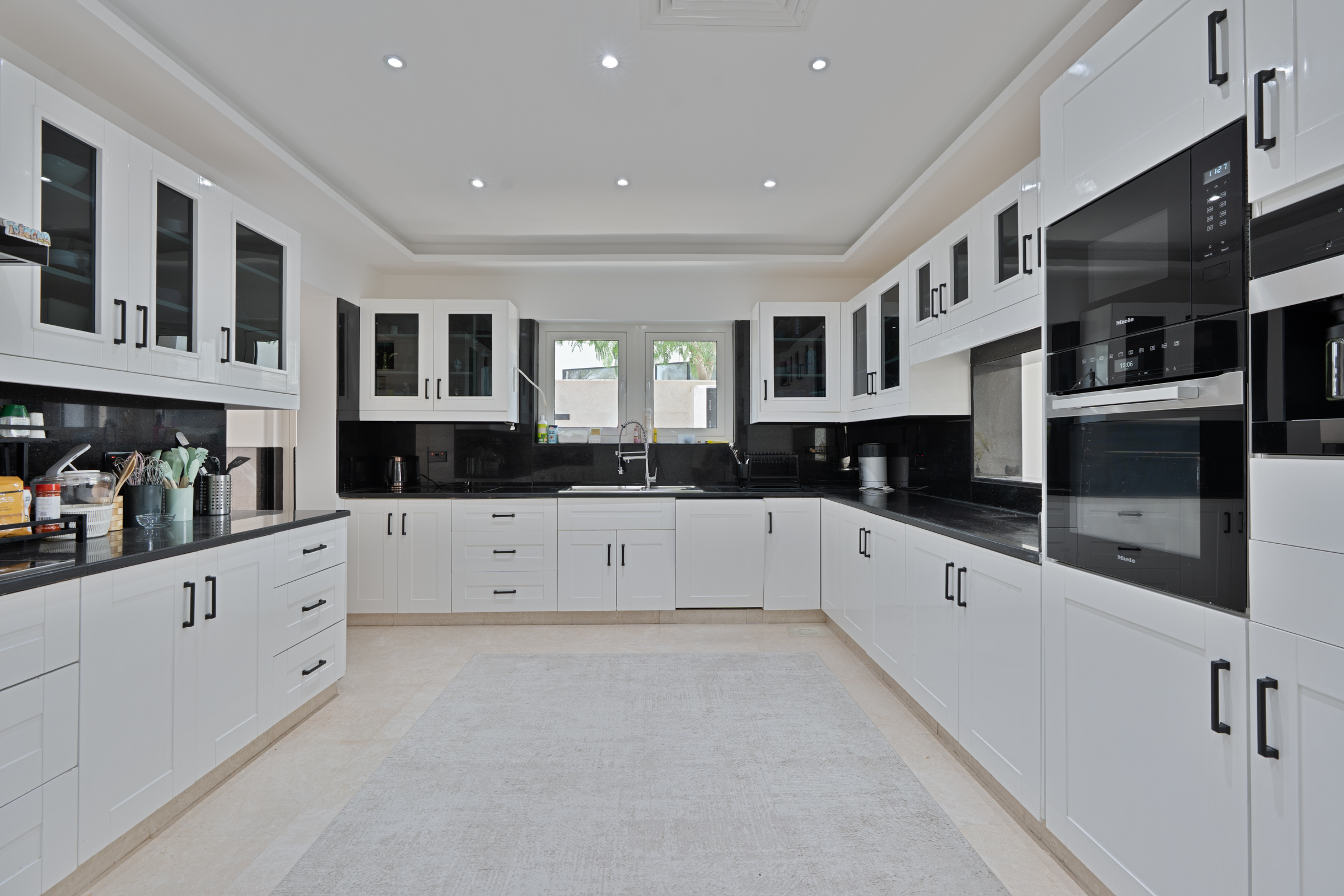 A vast living room shares the space with large dining areas, all of which open out onto the backyard. A voluminous kitchen — partially upgraded and appointed with top-tier appliances — sits adjacent to this space, rounding off the social setup.