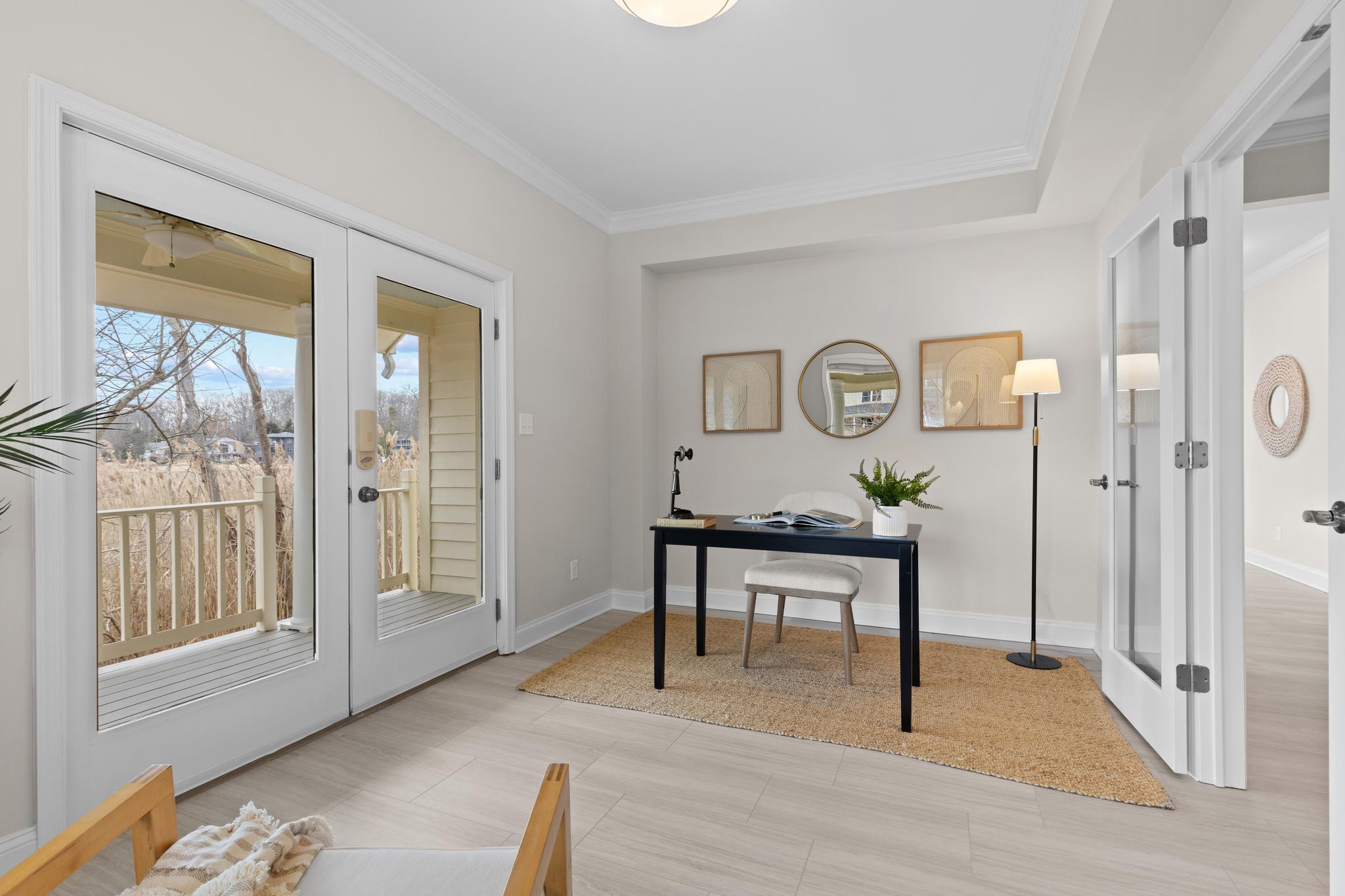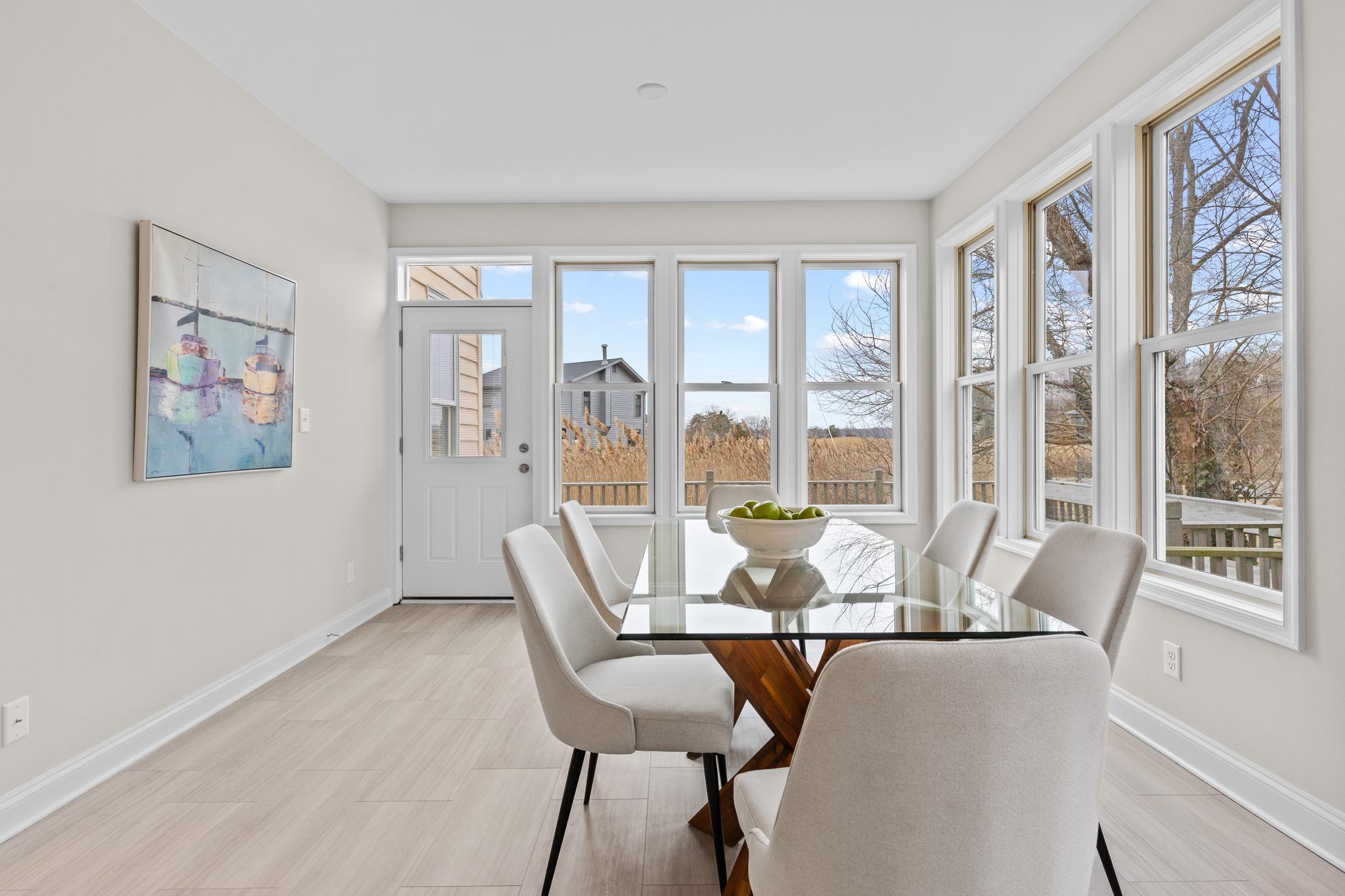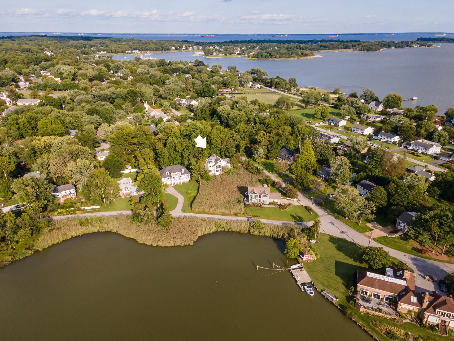 Absolutely transformed with a recently completed interior remodel this stunning contemporary home boasts panoramic water views across Lake Hillsmere and out to the South River; located in the coveted Hillsmere Shores community. With 5 bedrooms that all provide newly updated private baths, over 4,000 sqft of living space, 9'+ ceilings, freshly renovated first floor office, multiple decks including a unique, spacious 360 sqft roof garden accessed from the third floor bedroom suite and lounge area, this home is perfect for entertaining gatherings large or small. Enjoy the captivating views from almost every room! The brand new beautifully designed and appointed gourmet Kitchen features leathered countertops, stylish backsplash, high end appliances and fabulous butcher block island. A conveniently located main level Bedroom suite with full bath provides flexibility for one level living. The luxurious Primary bedroom suite includes a large adjacent living space with panoramic uninterrupted water views and fireplace. The private balcony is the perfect location to unwind and watch the sunset over the South River and the luxurious primary bath is sure to please with 2 sinks, soaking tub, walk-in shower and large walk-in closet with windows offering natural light. The thoughtful layout and design throughout the home captures both an abundance of natural light and takes advantage of the views, while the open floor plan and gourmet Kitchen makes daily life and entertaining easy. Abundant outdoor living space including the wrap around porch, roof deck and covered balcony along with the backyard creates a private sanctuary within the community. Tucked in on a quiet street just a stroll away from the many community and surrounding amenities including the neighborhood Marina and boat ramp, community pool, community beach with pavilion, playground and picnic area, close proximity to public/private schools, restaurants/shopping and Quiet Waters Park with over 300 acres of beautiful parkland featuring trails winding through forests and grasslands, summer concerts and winter ice skating; year-round activities are always readily available. Additionally, it is conveniently located to access Downtown Annapolis, head over the Bay Bridge to the Eastern shore or jump on Rt. 50 to get back to Washington, D.C. Annapolis living at its best. Welcome Home!