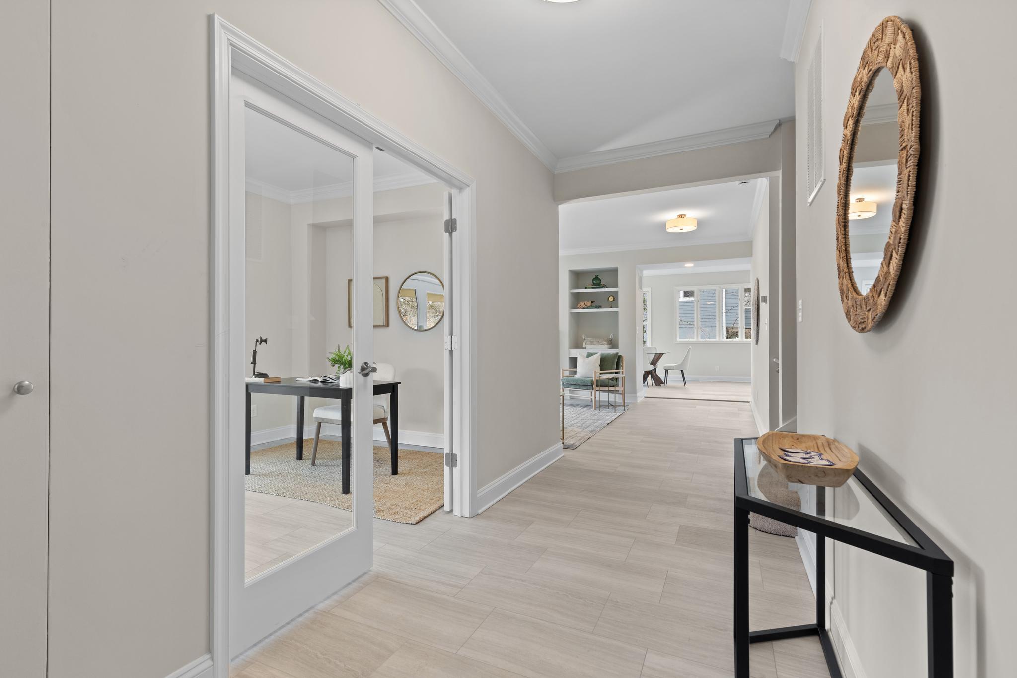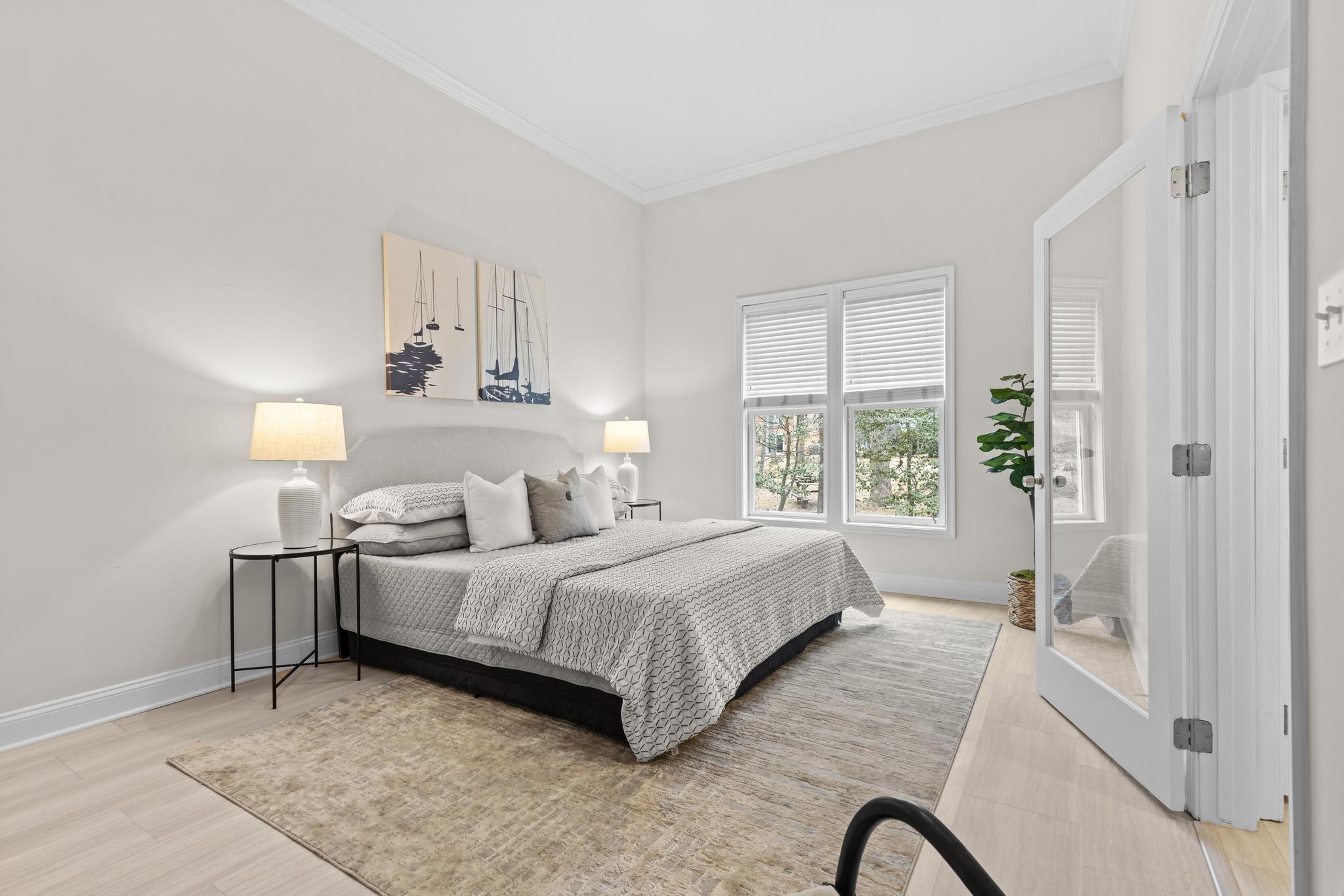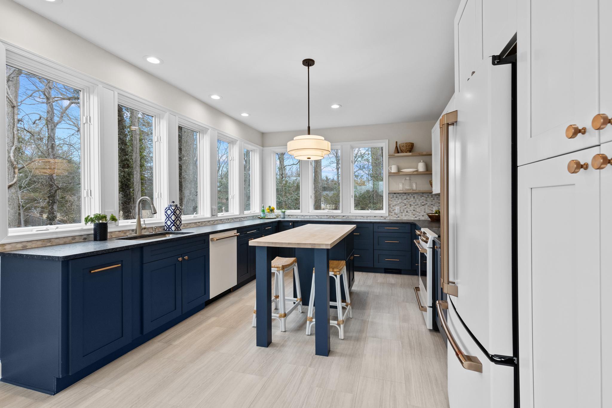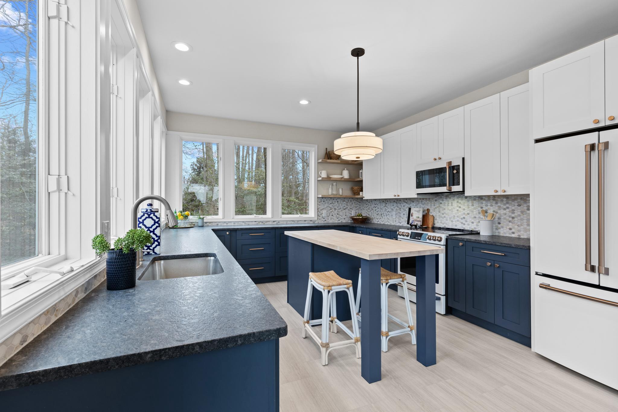Absolutely transformed with a recently completed interior remodel this stunning contemporary home boasts panoramic water views across Lake Hillsmere and out to the South River; located in the coveted Hillsmere Shores community. With 5 bedrooms that all provide newly updated private baths, over 4,000 sqft of living space, 9'+ ceilings, freshly renovated first floor office, multiple decks including a unique, spacious 360 sqft roof garden accessed from the third floor bedroom suite and lounge area, this home is perfect for entertaining gatherings large or small. Enjoy the captivating views from almost every room! The brand new beautifully designed and appointed gourmet Kitchen features leathered countertops, stylish backsplash, high end appliances and fabulous butcher block island. A conveniently located main level Bedroom suite with full bath provides flexibility for one level living. The luxurious Primary bedroom suite includes a large adjacent living space with panoramic uninterrupted water views and fireplace. The private balcony is the perfect location to unwind and watch the sunset over the South River and the luxurious primary bath is sure to please with 2 sinks, soaking tub, walk-in shower and large walk-in closet with windows offering natural light. The thoughtful layout and design throughout the home captures both an abundance of natural light and takes advantage of the views, while the open floor plan and gourmet Kitchen makes daily life and entertaining easy. Abundant outdoor living space including the wrap around porch, roof deck and covered balcony along with the backyard creates a private sanctuary within the community. Tucked in on a quiet street just a stroll away from the many community and surrounding amenities including the neighborhood Marina and boat ramp, community pool, community beach with pavilion, playground and picnic area, close proximity to public/private schools, restaurants/shopping and Quiet Waters Park with over 300 acres of beautiful parkland featuring trails winding through forests and grasslands, summer concerts and winter ice skating; year-round activities are always readily available. Additionally, it is conveniently located to access Downtown Annapolis, head over the Bay Bridge to the Eastern shore or jump on Rt. 50 to get back to Washington, D.C. Annapolis living at its best. Welcome Home!