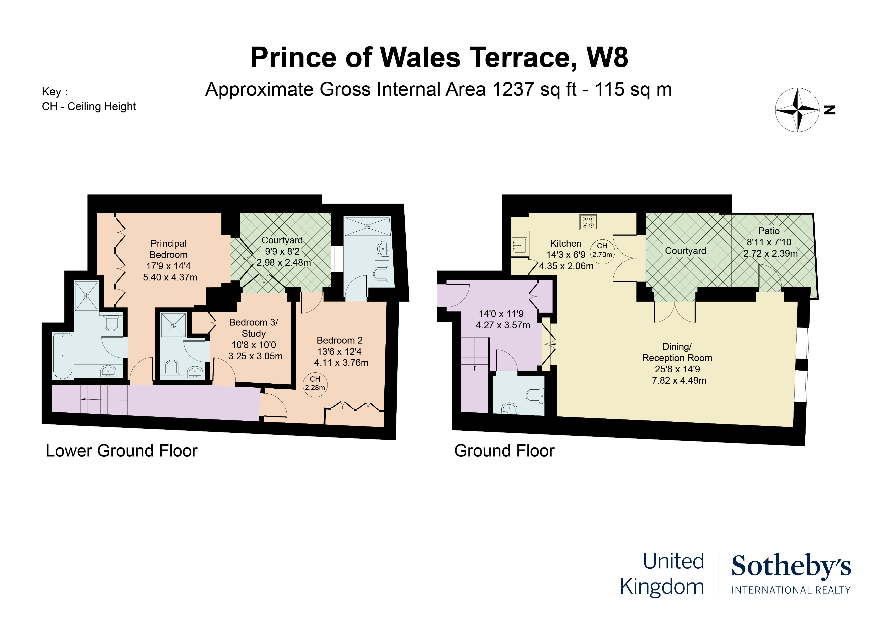 The ground floor comprises an open plan reception room with a dining area. The thoughtfully designed kitchen is nestled behind a discreet nook providing a separation of space, but still benefiting from the large windows, oak parquet floors, high ceilings and abundance of natural light thanks to multiple windows and the French doors which lead onto a private patio. The elegant kitchen comes with Miele appliances, marble countertops and a wine fridge as well as bespoke cabinetry; it also has a Juliette balcony which overlooks the lower ground floor’s patio. A guest W.C is also located on this floor.