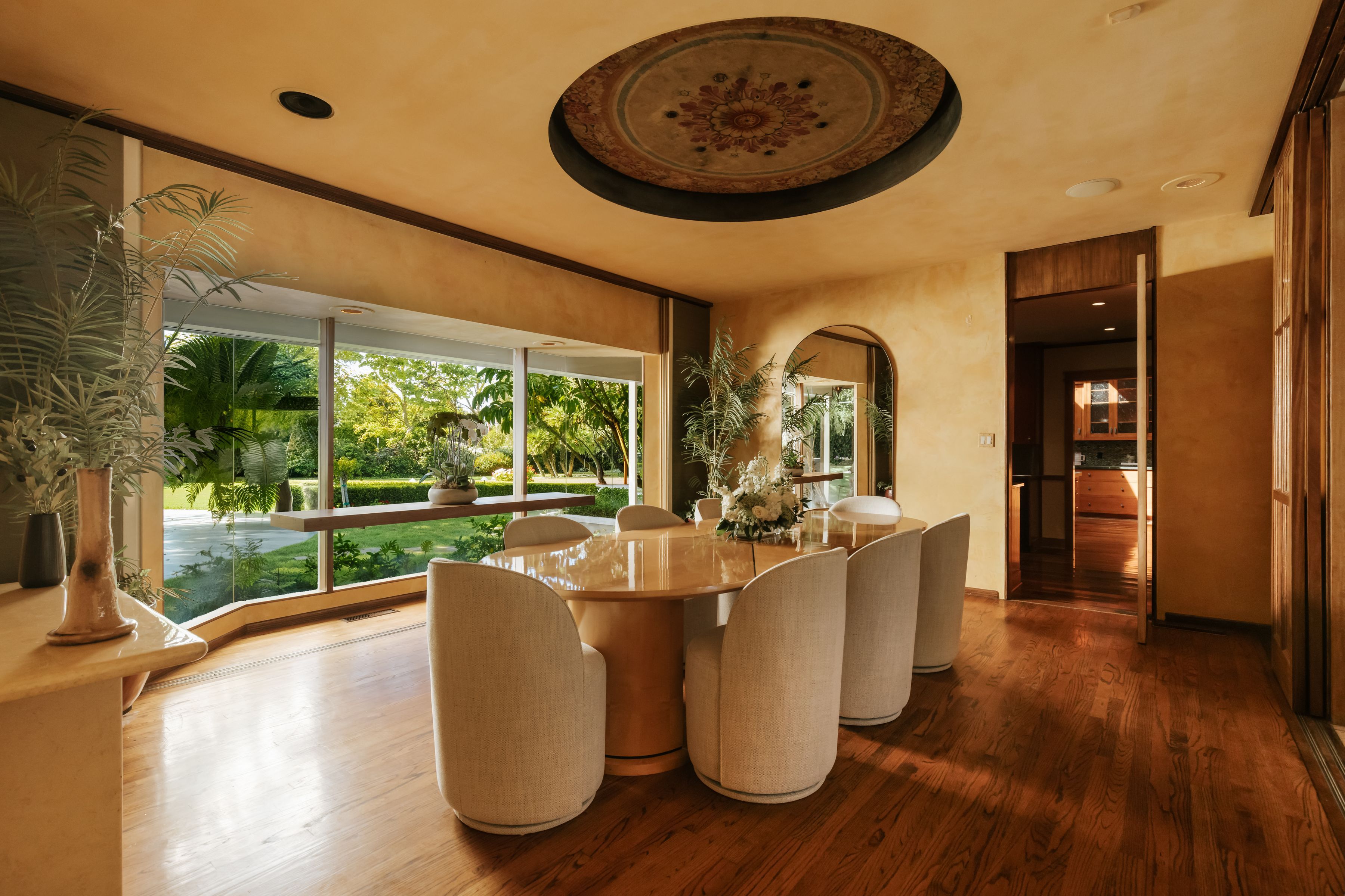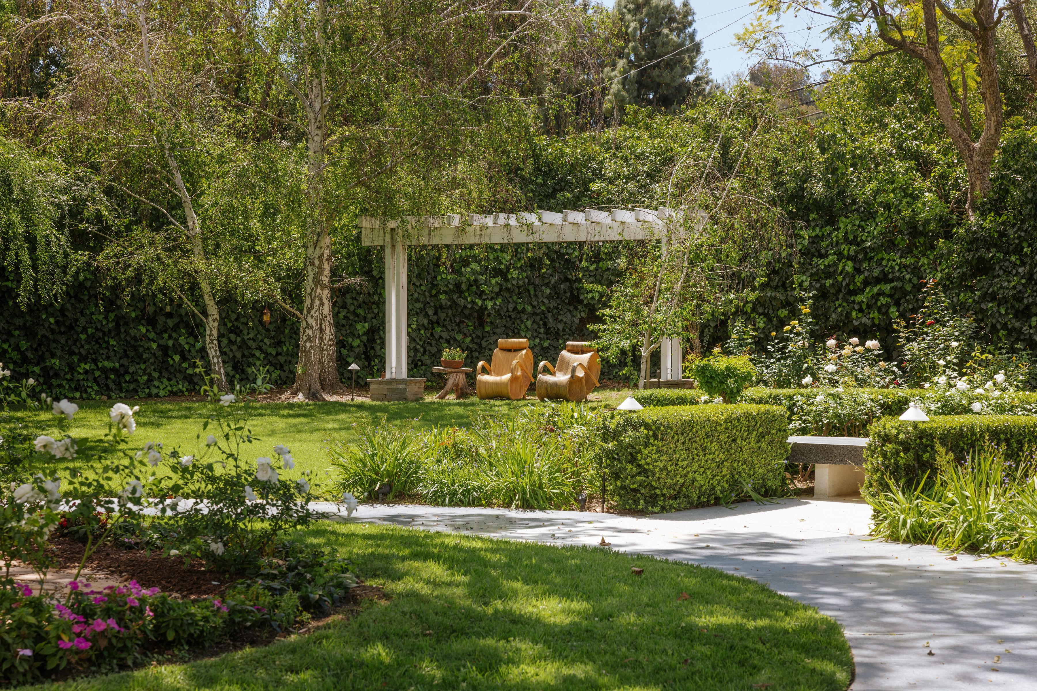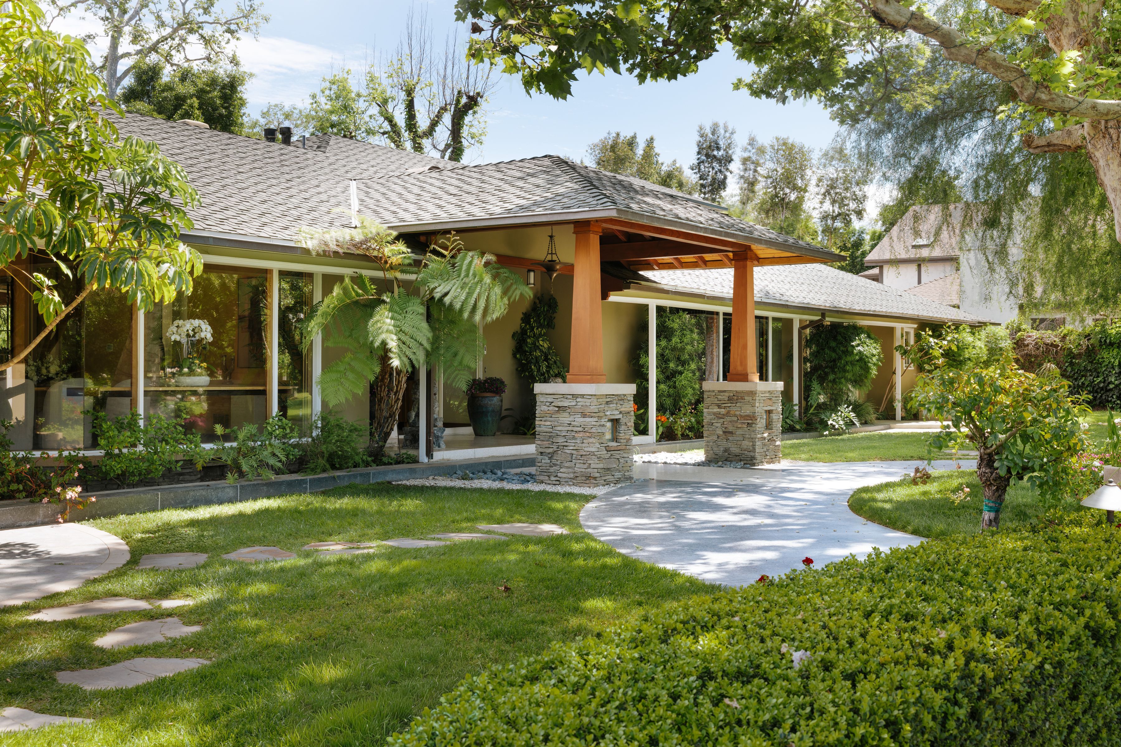 Set behind gates in Encino’s coveted Music Row neighborhood, the longtime estate of legendary guitarist Steve Vai unfolds across nearly two private acres—an oasis of natural beauty, serenity, and inspiration. Originally conceived as a mid-century residence and thoughtfully expanded to over 10,000 sq ft, the home offers 5 ensuite bedrooms, 9-foot ceilings, original poured-in-place terrazzo throughout the entry, foyer, and patios, and rich acacia wood flooring throughout, complemented by acacia wood flooring and refined finishes. An additional 3000 sqft. has been added which includes studio, pool house, and gym. Opening seamlessly to lush, landscaped grounds, the estate lives as a true sanctuary—an inspired, artful environment where nature, creativity, peace, and possibility converge.
