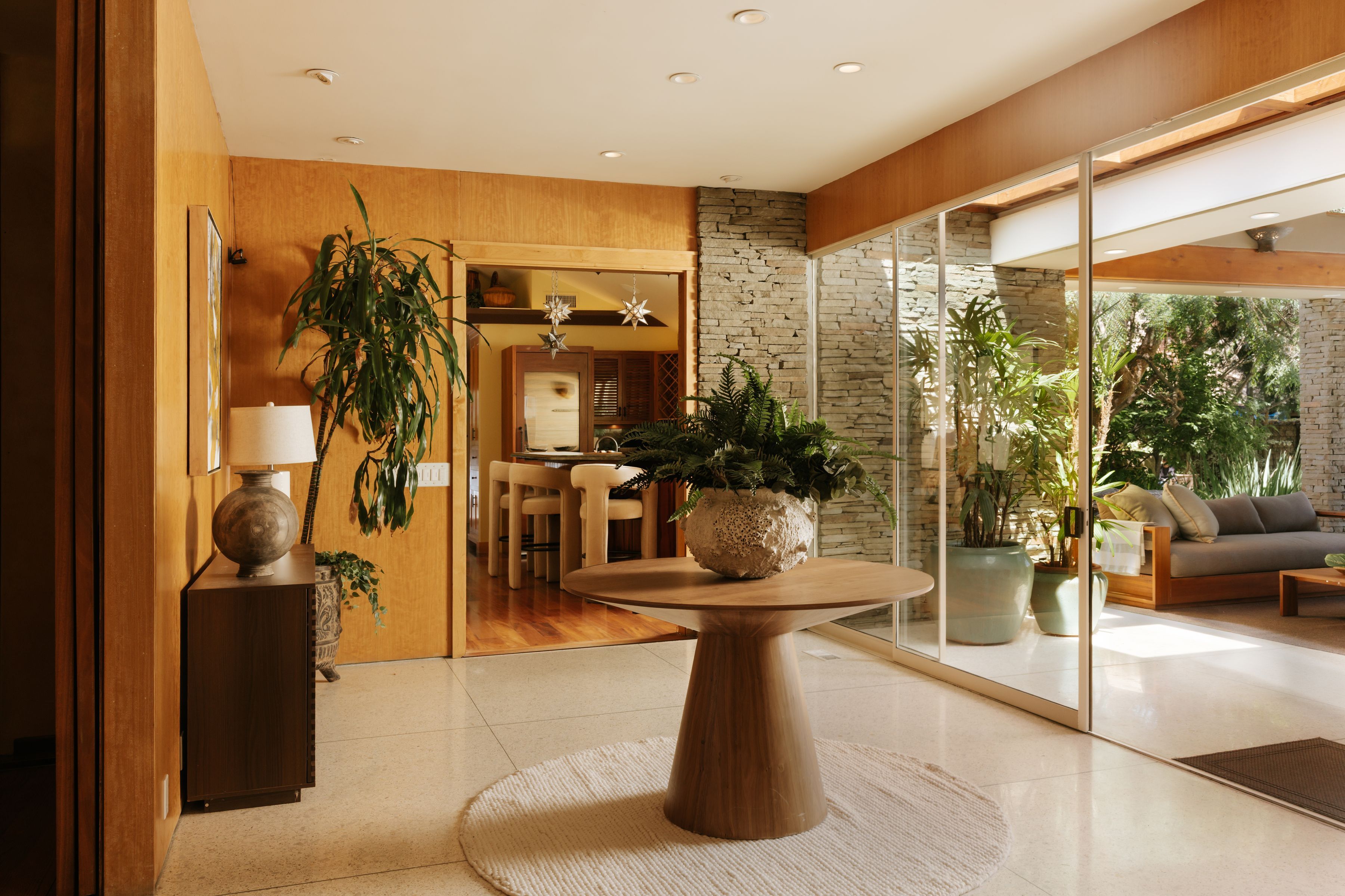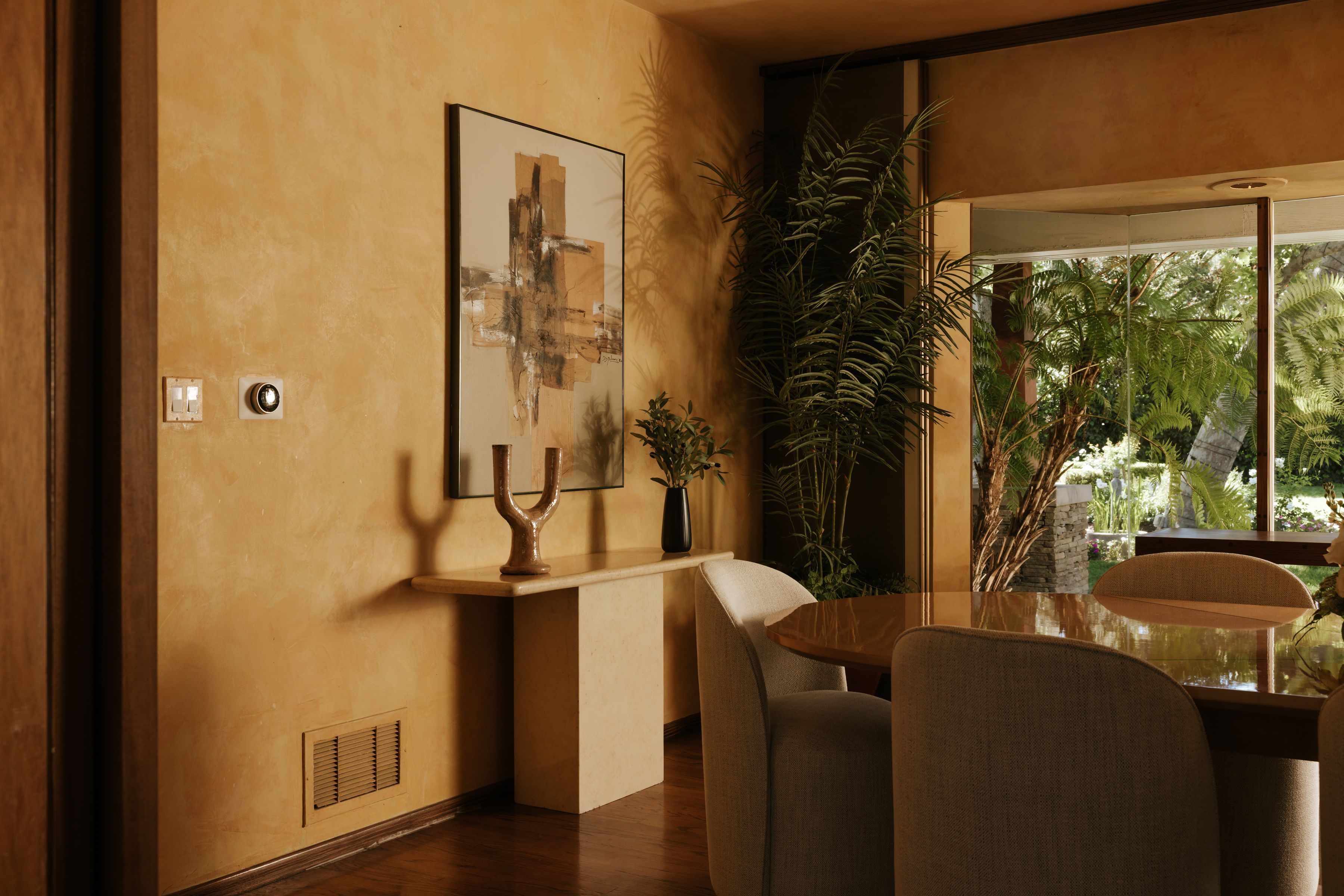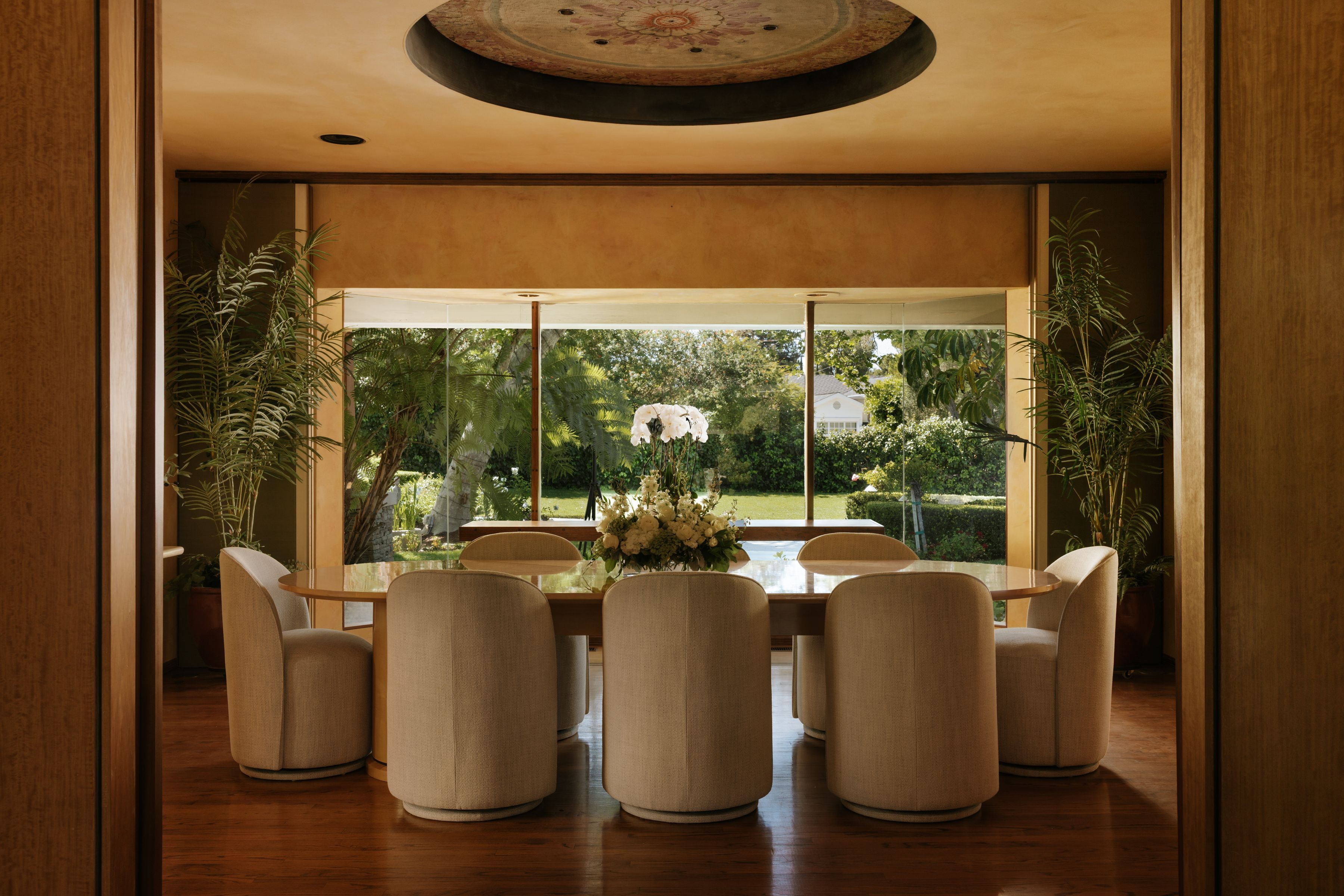 Set behind gates in Encino’s coveted Music Row neighborhood, the longtime estate of legendary guitarist Steve Vai unfolds across nearly two private acres—an oasis of natural beauty, serenity, and inspiration. Originally conceived as a mid-century residence and thoughtfully expanded to over 10,000 sq ft, the home offers 5 ensuite bedrooms, 9-foot ceilings, original poured-in-place terrazzo throughout the entry, foyer, and patios, and rich acacia wood flooring throughout, complemented by acacia wood flooring and refined finishes. An additional 3000 sqft. has been added which includes studio, pool house, and gym. Opening seamlessly to lush, landscaped grounds, the estate lives as a true sanctuary—an inspired, artful environment where nature, creativity, peace, and possibility converge.