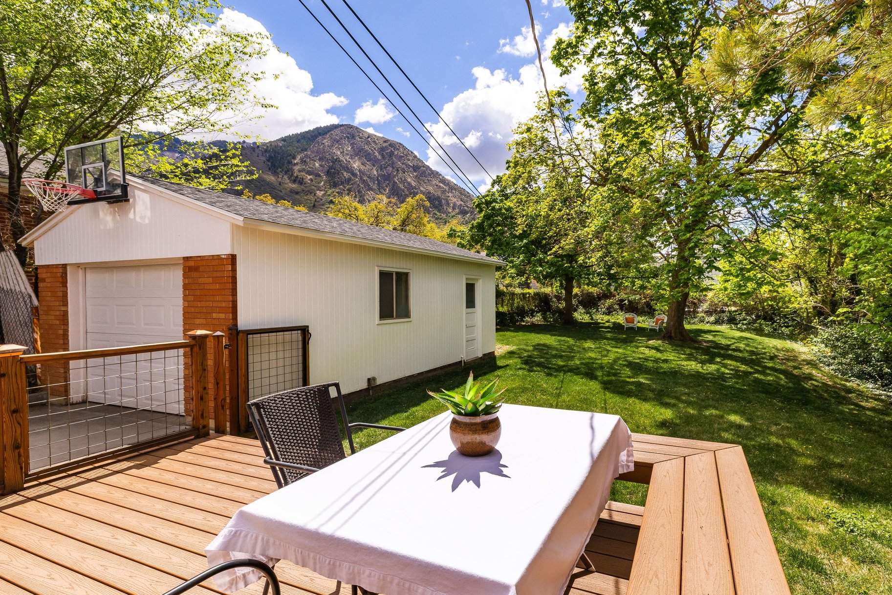 OPEN HOUSE SAT. APRIL 25th 10 - 2 PM. Sitting just a half block from the mountains and steps from scenic trails, this classic East Bench bungalow beautifully blends 1940s character with thoughtful modern updates. Meticulously maintained and move-in ready, the home features upgraded electrical, plumbing, windows, and roof, enhancing both comfort and efficiency. Inside, tasteful, high-quality finishes create a warm and inviting atmosphere. The kitchen shines with granite countertops, top of the line stainless steel appliances, including a Wolf range with an induction cooktop and quality soft-close cabinetry. Sliding glass doors lead to the spacious deck and backyard where you will enjoy your morning coffee as the sun rises over the mountain peaks, entertain with family and friends or relax in the afternoon shade beneath mature maple trees. Both bathrooms are elegantly updated with full tile surrounds and pedestal sinks, including one with a large soaking tub. The lower level offers a cozy family room, a generously sized bedroom ideal as a primary suite, and a versatile den or office that could serve as an additional bedroom. A bright spacious bathroom and laundry room complete this level. Gleaming hardwood floors, fresh paint throughout, and large windows fill the home with natural light, creating a welcoming space ready for immediate enjoyment. A newer driveway and a generously sized single-car garage add to the home's appeal. This is a rare opportunity in one of Ogden's most beloved neighborhoods.