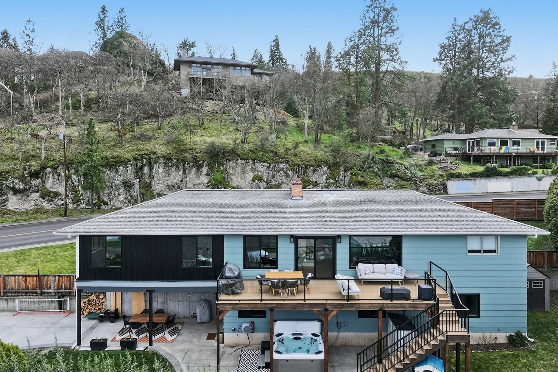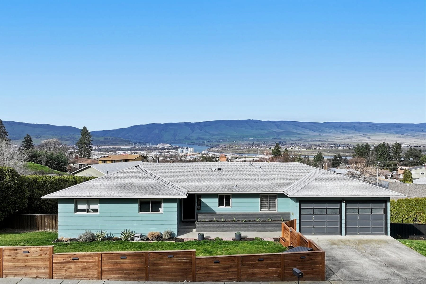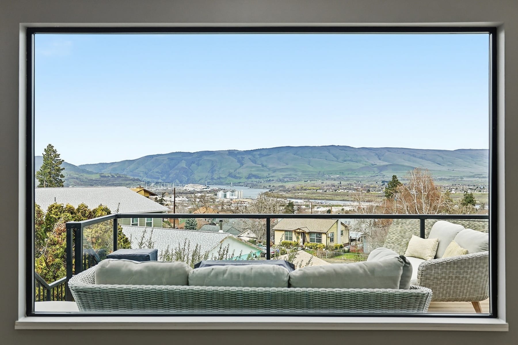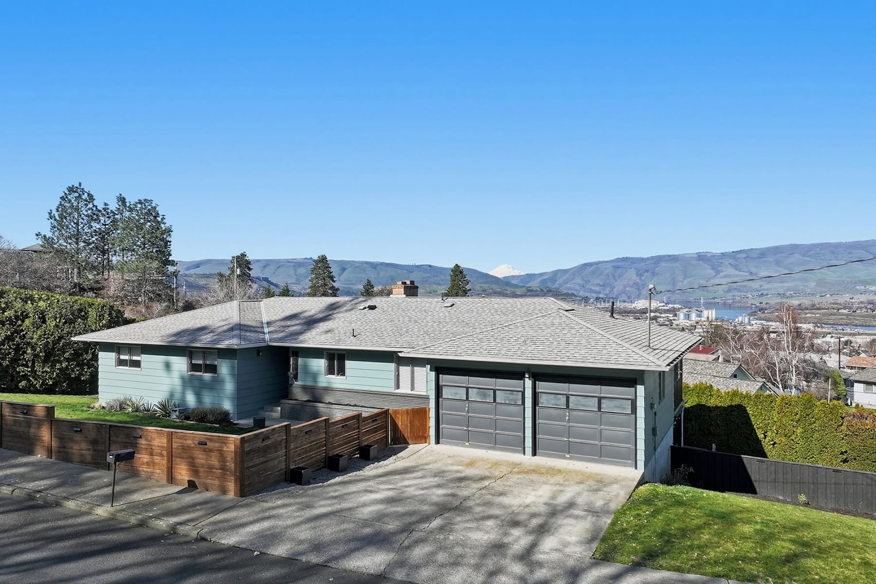 Welcome to a sanctuary of sophistication in this beautifully updated 4-bedroom, 2.5-bath residence, where contemporary elegance seamlessly merges with functional design. Ideally situated to capture local views, this home is perfect for serene living and gracious entertaining. Upon entry, expansive picture windows invite natural light and frame stunning views of the Washington Hills, Columbia River, and The Dalles Dam. The thoughtfully designed main floor showcases three generously sized bedrooms, creating a comfortable retreat for family and guests. Descending to the lower level, you'll find the primary suite, a private oasis complete with an ensuite full bath. This versatile space includes a family room, exercise area, and kitchenette, making it ideal for entertaining or accommodating multi-generational living. With its own entrance, this suite offers significant potential for rental income or guest privacy.The heart of the home features a stunning kitchen equipped with an induction cooktop, exquisite quartz countertops, and premium appliances, all harmoniously complemented by custom wood cabinetry. A dedicated beverage station enhances your hosting experience, ensuring every gathering is effortless. Slider doors provide seamless access to a newly constructed deck, creating an enchanting setting for alfresco dining and evening soirees beneath the stars.Step outside to discover a covered patio complete with a hot tub and fire pit'an idyllic retreat for relaxation after a long day. The fully fenced property offers an oasis of privacy and tranquility, while RV parking caters to those with a spirit of adventure.Equipped with a modern heat pump for year-round comfort, this residence is nestled on a quiet street, just moments from the picturesque Sorosis Park. Experience the unparalleled charm and elegance of this exceptional property.