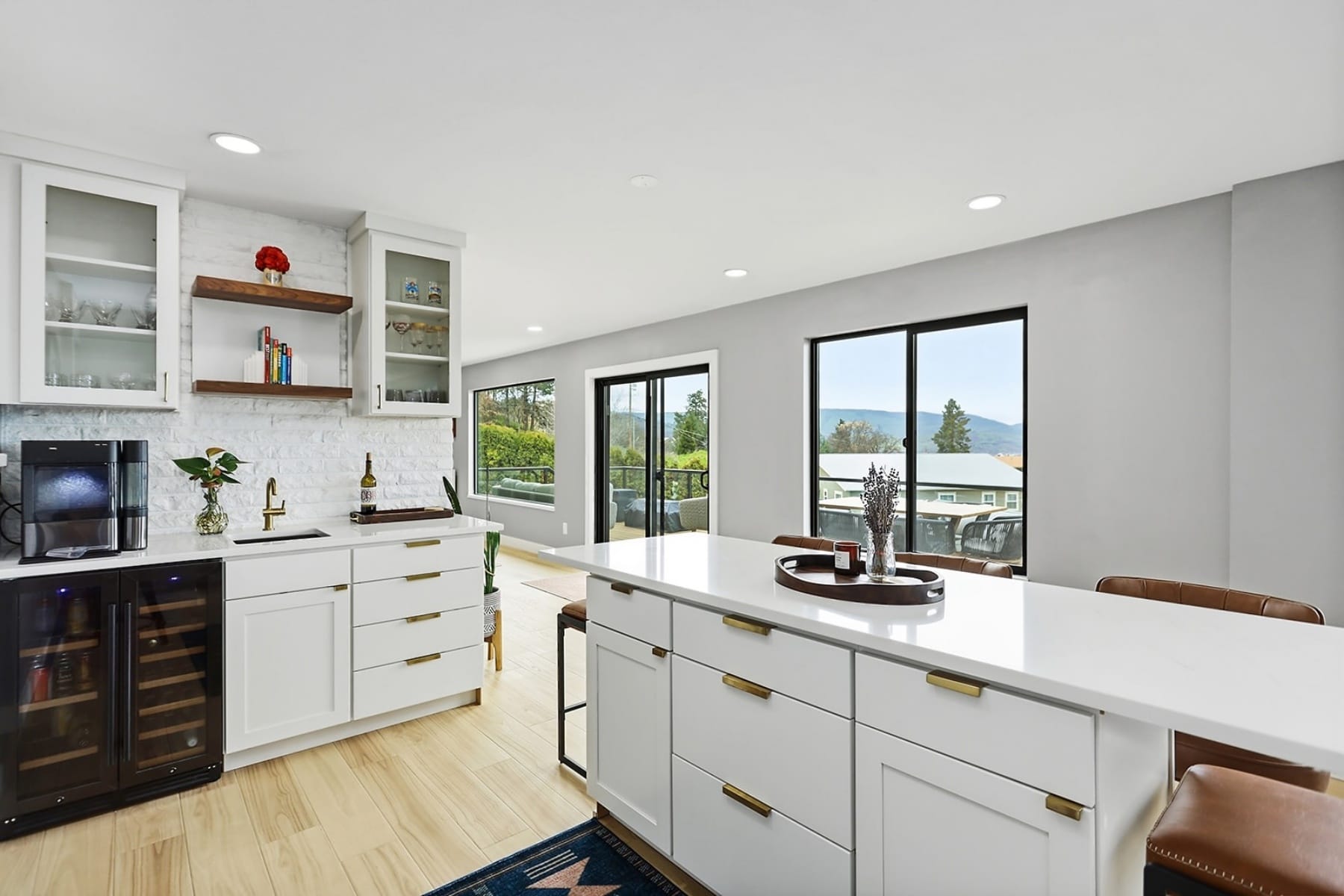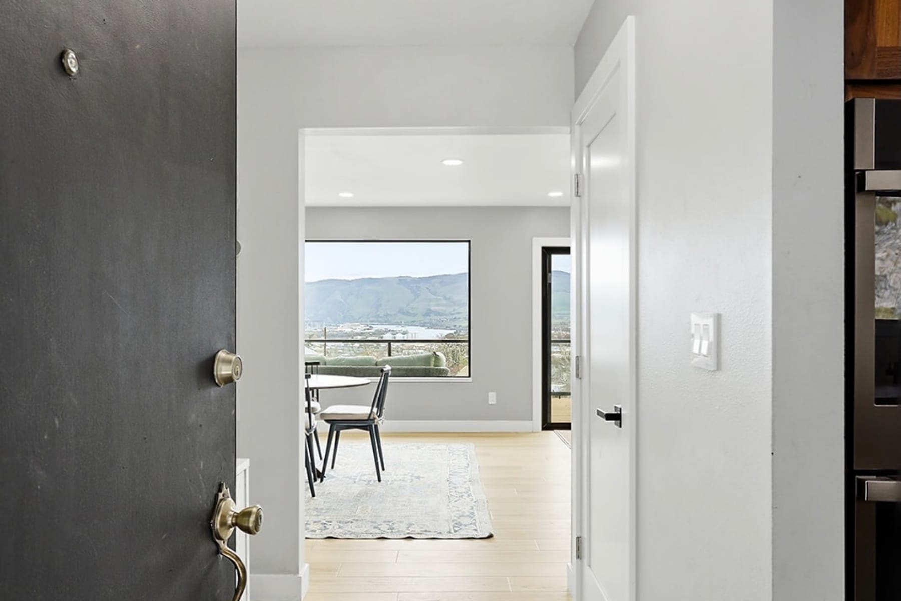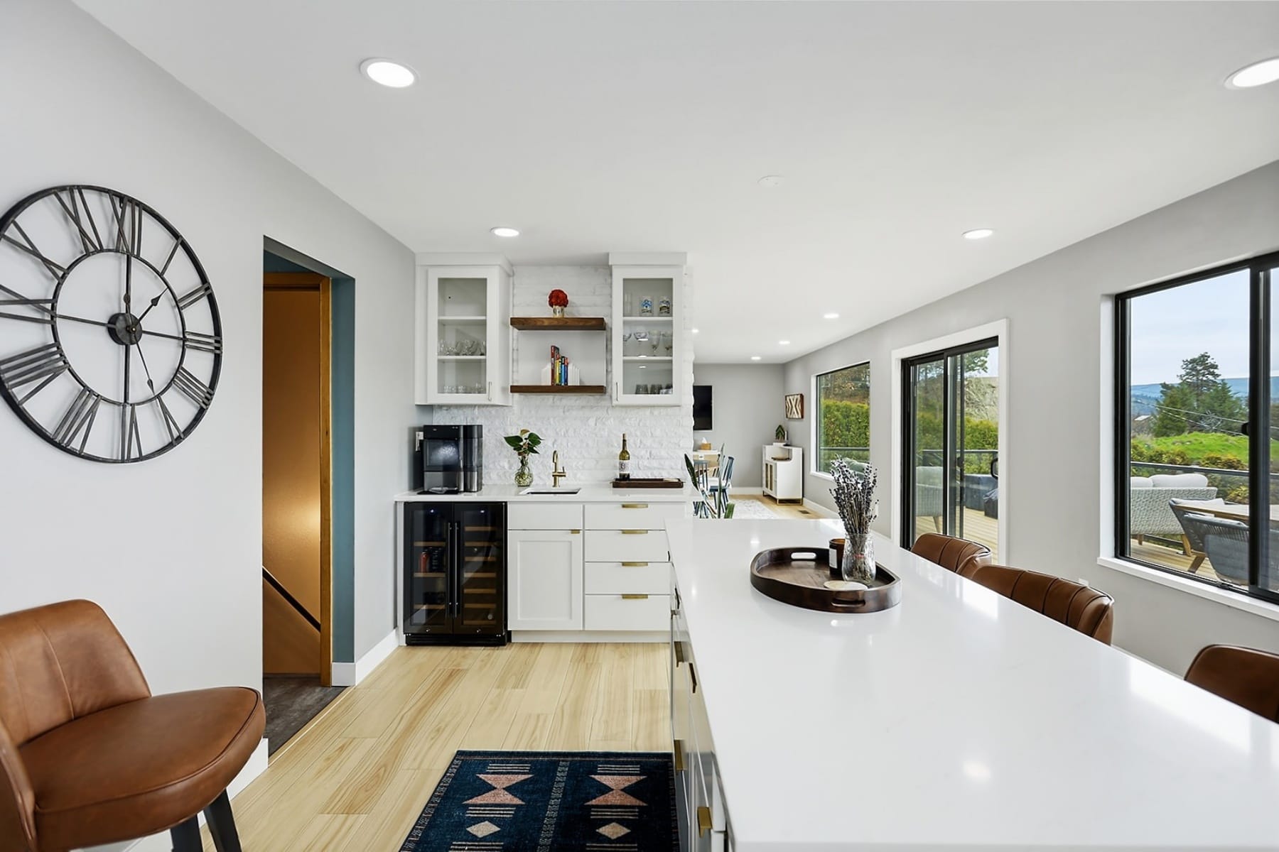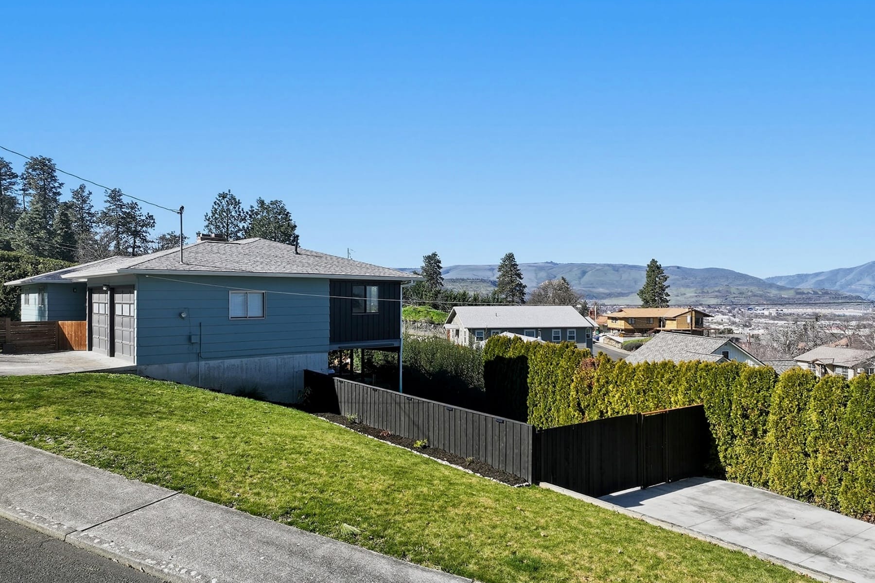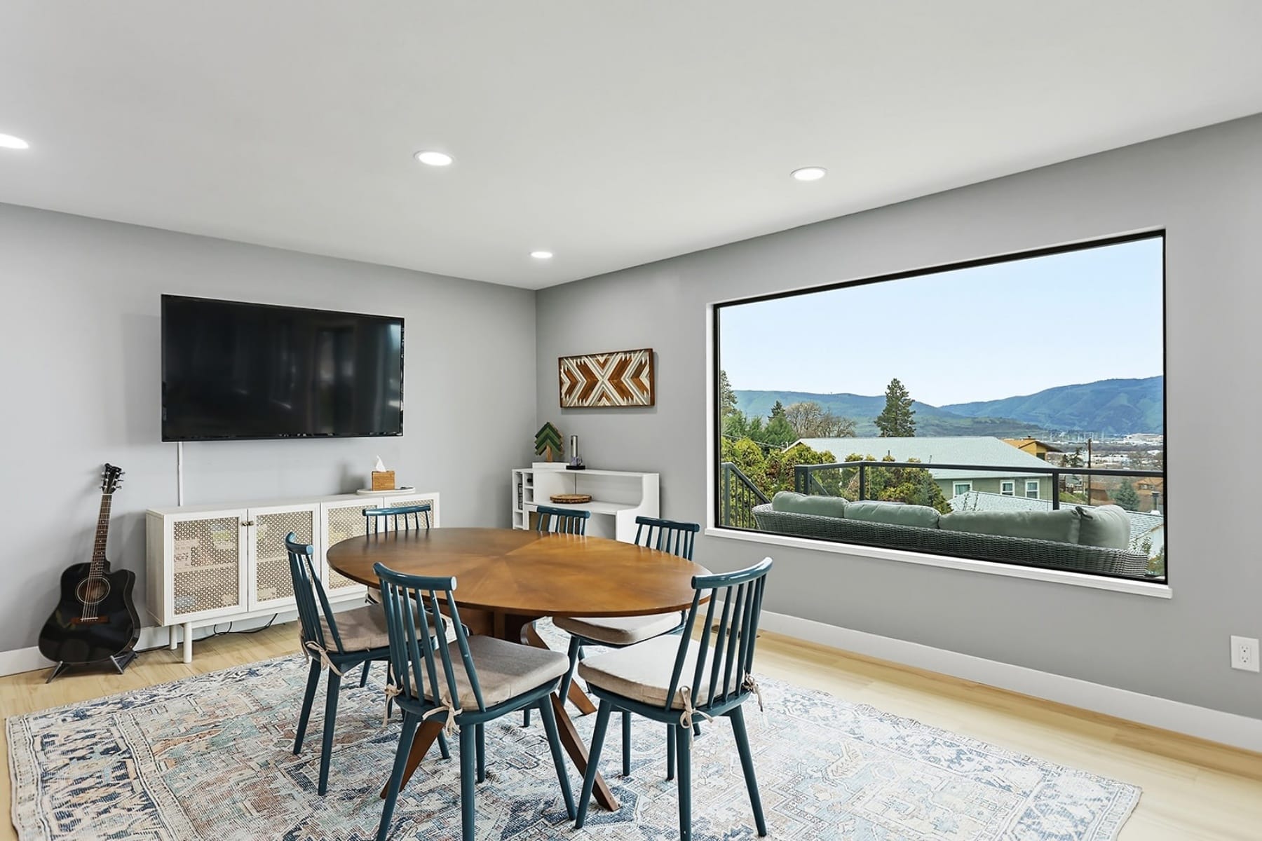 Welcome to a sanctuary of sophistication in this beautifully updated 4-bedroom, 2.5-bath residence, where contemporary elegance seamlessly merges with functional design. Ideally situated to capture local views, this home is perfect for serene living and gracious entertaining. Upon entry, expansive picture windows invite natural light and frame stunning views of the Washington Hills, Columbia River, and The Dalles Dam. The thoughtfully designed main floor showcases three generously sized bedrooms, creating a comfortable retreat for family and guests. Descending to the lower level, you'll find the primary suite, a private oasis complete with an ensuite full bath. This versatile space includes a family room, exercise area, and kitchenette, making it ideal for entertaining or accommodating multi-generational living. With its own entrance, this suite offers significant potential for rental income or guest privacy.The heart of the home features a stunning kitchen equipped with an induction cooktop, exquisite quartz countertops, and premium appliances, all harmoniously complemented by custom wood cabinetry. A dedicated beverage station enhances your hosting experience, ensuring every gathering is effortless. Slider doors provide seamless access to a newly constructed deck, creating an enchanting setting for alfresco dining and evening soirees beneath the stars.Step outside to discover a covered patio complete with a hot tub and fire pit'an idyllic retreat for relaxation after a long day. The fully fenced property offers an oasis of privacy and tranquility, while RV parking caters to those with a spirit of adventure.Equipped with a modern heat pump for year-round comfort, this residence is nestled on a quiet street, just moments from the picturesque Sorosis Park. Experience the unparalleled charm and elegance of this exceptional property.