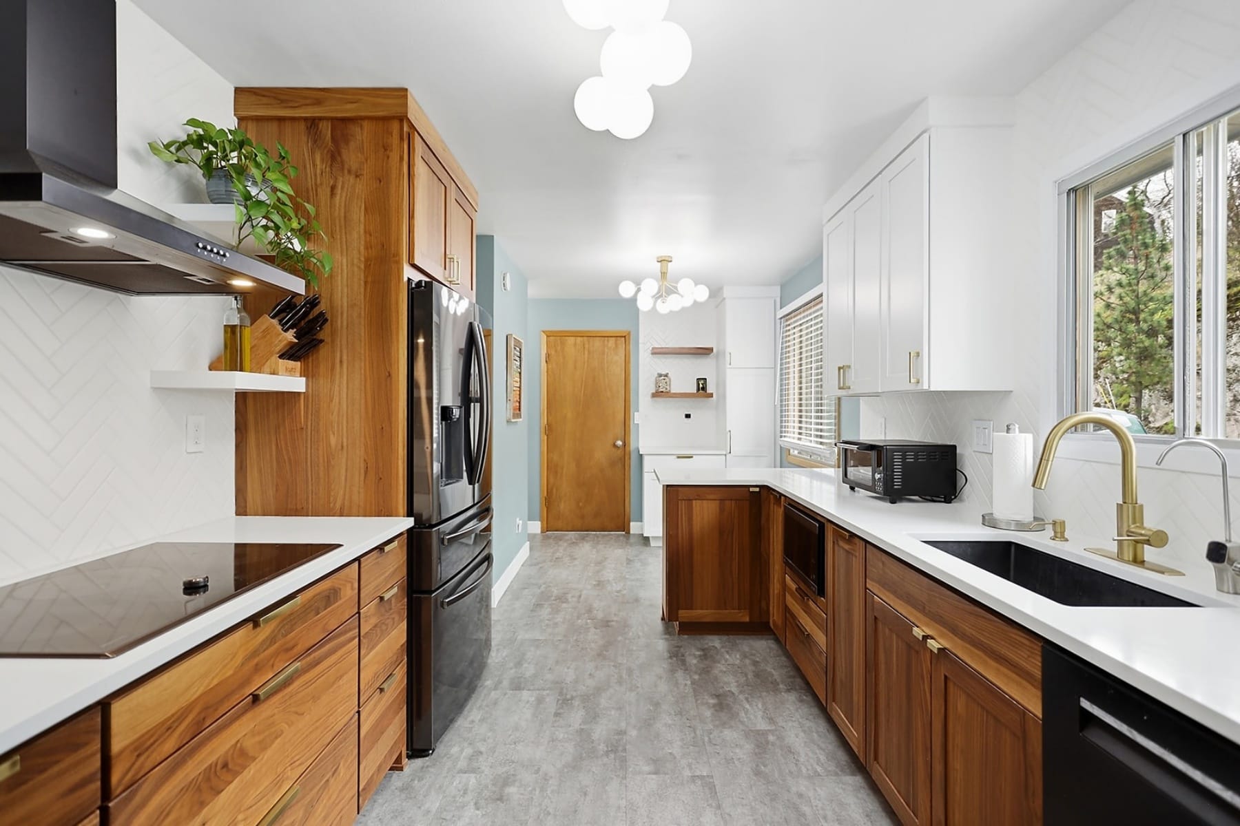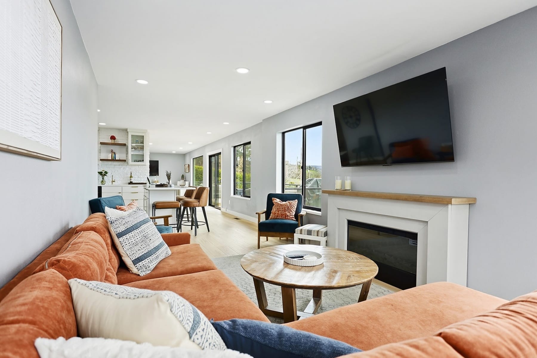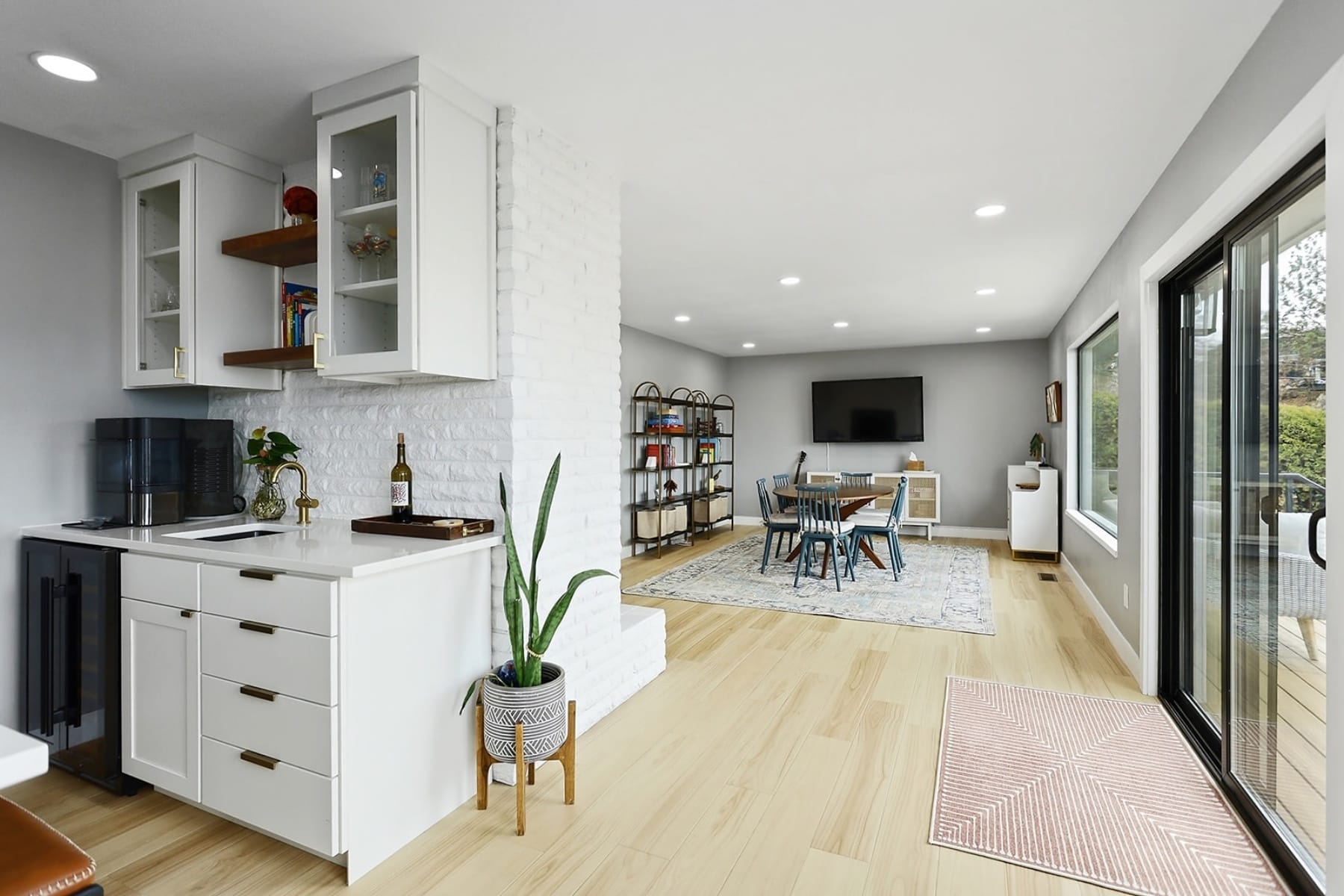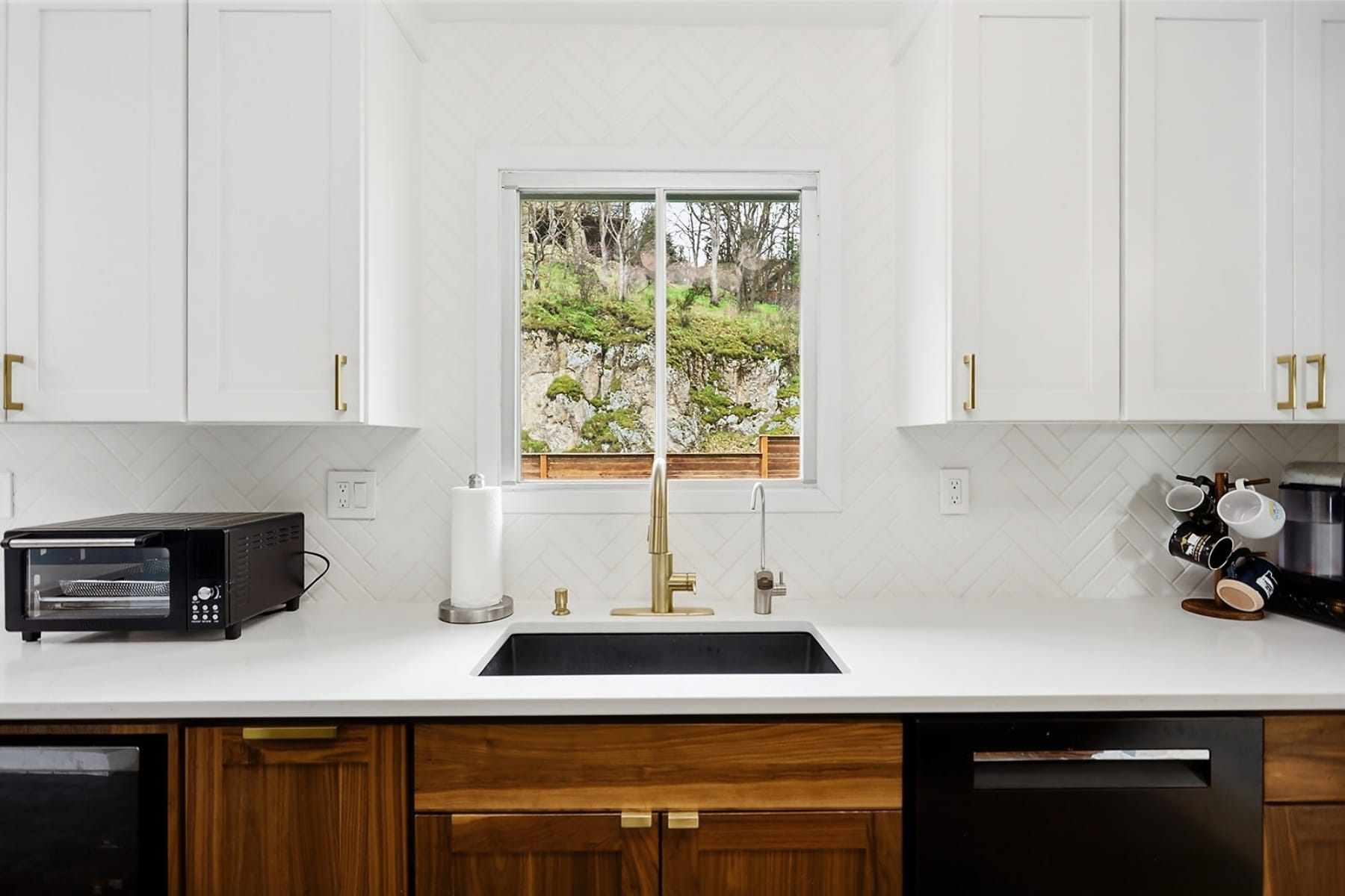 Welcome to a sanctuary of sophistication in this beautifully updated 4-bedroom, 2.5-bath residence, where contemporary elegance seamlessly merges with functional design. Ideally situated to capture local views, this home is perfect for serene living and gracious entertaining. Upon entry, expansive picture windows invite natural light and frame stunning views of the Washington Hills, Columbia River, and The Dalles Dam. The thoughtfully designed main floor showcases three generously sized bedrooms, creating a comfortable retreat for family and guests. Descending to the lower level, you'll find the primary suite, a private oasis complete with an ensuite full bath. This versatile space includes a family room, exercise area, and kitchenette, making it ideal for entertaining or accommodating multi-generational living. With its own entrance, this suite offers significant potential for rental income or guest privacy.The heart of the home features a stunning kitchen equipped with an induction cooktop, exquisite quartz countertops, and premium appliances, all harmoniously complemented by custom wood cabinetry. A dedicated beverage station enhances your hosting experience, ensuring every gathering is effortless. Slider doors provide seamless access to a newly constructed deck, creating an enchanting setting for alfresco dining and evening soirees beneath the stars.Step outside to discover a covered patio complete with a hot tub and fire pit'an idyllic retreat for relaxation after a long day. The fully fenced property offers an oasis of privacy and tranquility, while RV parking caters to those with a spirit of adventure.Equipped with a modern heat pump for year-round comfort, this residence is nestled on a quiet street, just moments from the picturesque Sorosis Park. Experience the unparalleled charm and elegance of this exceptional property.