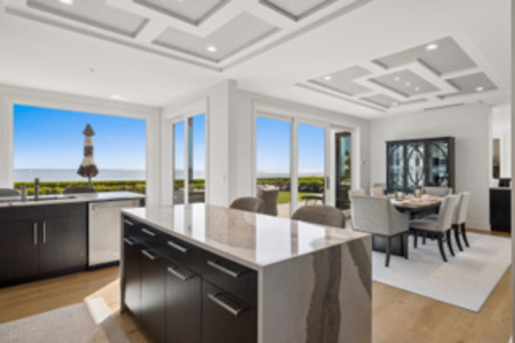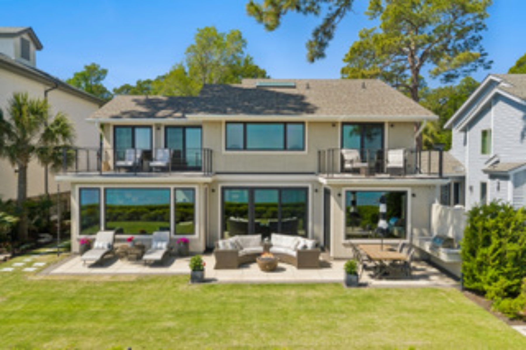 Experience an extraordinary, sweeping panorama of water-arguably one of the most breathtaking views on Hilton Head Island. With over 180 degrees stretching from the Port Royal Sound to the Atlantic Ocean, this is a true wide-angle coastal masterpiece. Each morning begins with stunning sunrises over shimmering water, while light afternoon breezes and ever-changing tides create a dynamic, living backdrop. Dolphins regularly play just offshore, osprey dive with precision, and shrimp boats head out for their daily catch-an authentic, ever-changing showcase of Lowcountry coastal life.This completely renovated, classic contemporary home shows like new and offers just over 3,400 square feet of thoughtfully designed living space, featuring 3 bedrooms and 3.5 baths. Clean architectural lines and an open layout maximize the views from nearly every room, blending comfort with understated sophistication-ideal for both everyday living and effortless entertaining. Custom cabinetry throughout and quartz countertops elevate the interiors, while a striking linear gas fireplace anchors the living space.Outdoor living is equally compelling, with a spacious patio featuring a gas fire bowl, built-in grill, and multiple areas to gather or unwind. Upstairs, two decks extend the experience-one off the primary bedroom, perfect for morning coffee at sunrise, and a larger deck ideal for evening "sundowners" with a full sweep of the water.A spacious two-car garage adds convenience, while the coveted Dolphin Head location places you just a short stroll from Pine Island and its pristine beachfront. Just steps away, the private Dolphin Point Club pool-overlooking the sound and reserved exclusively for residents of the street-offers a rare blend of convenience, privacy, and community.Wide water, endless horizon, coastal breezes-the epitome of Lowcountry living. Owner is SCREA.
