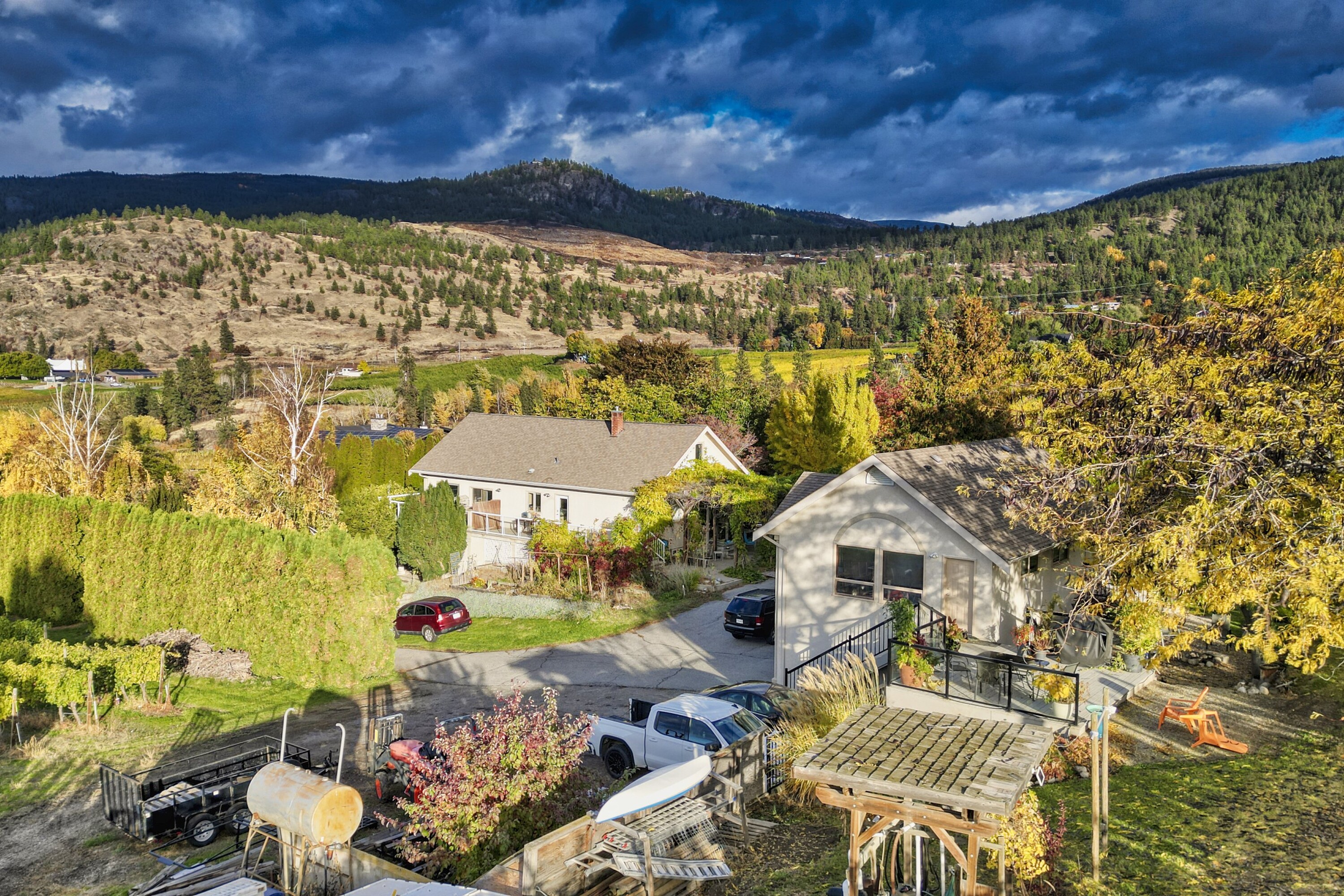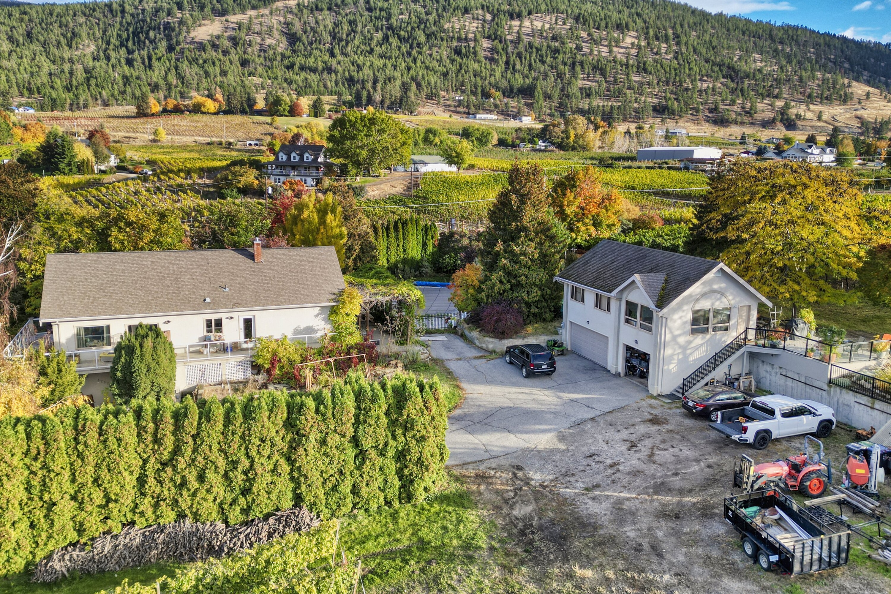 Breathtaking lake views define this exceptional 5.64-acre estate on the coveted Naramata Bench. Set in a quiet enclave along Corbishley Avenue, the property offers a refined vineyard lifestyle with meaningful revenue potential. The four bedroom residence is designed for effortless living and entertaining, with soaring ceilings, expansive windows, and seamless indoor-outdoor flow to generous decks overlooking Okanagan Lake. The private grounds are equally compelling, featuring a solar-heated saltwater pool, curated gardens, and open space for recreation or farm-to-table living. Above the triple garage, a fully self-contained one bedroom carriage suite provides flexibility for guests, extended family, or supplemental income. Approximately 4.5 acres are planted with Pinot Gris and Merlot, presenting an established vineyard opportunity. For those seeking a turnkey lifestyle, the current owners are open to leasing back the grape supply, allowing for immediate income while enjoying the setting. Moments to Penticton and steps to the KVR Trail, this is a rare offering where luxury living and vineyard potential meet. Whether pursuing a boutique wine venture or simply embracing the rhythm of vineyard living, this property captures the essence of the Okanagan lifestyle with elegance and enduring value. An exceptional opportunity for discerning buyers seeking both lifestyle and investment in one of the South Okanagan's premiere geographical indications.