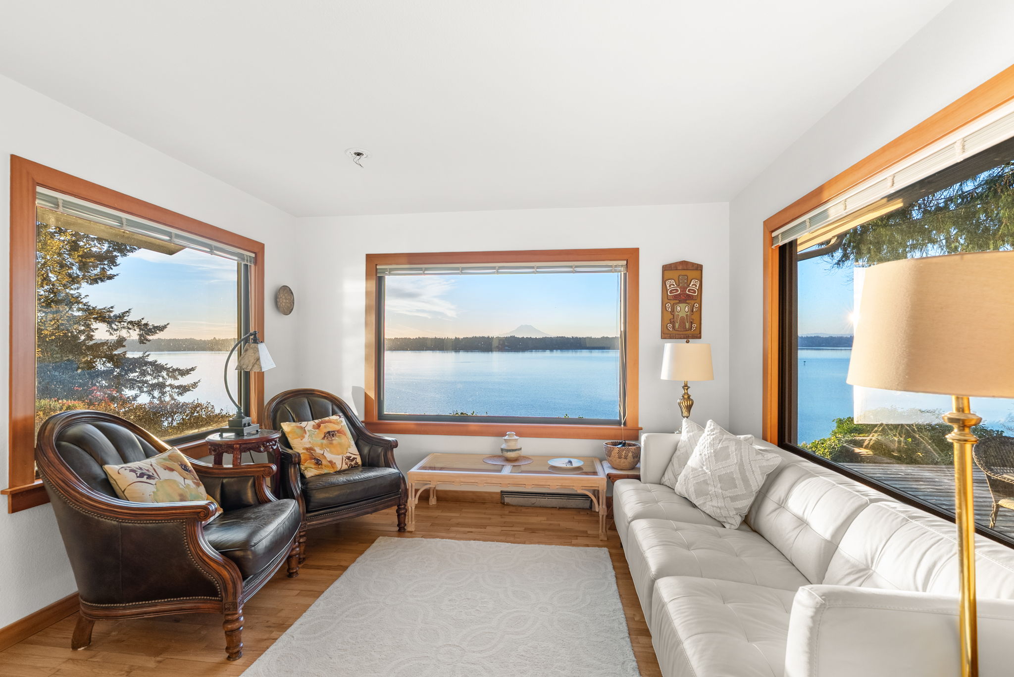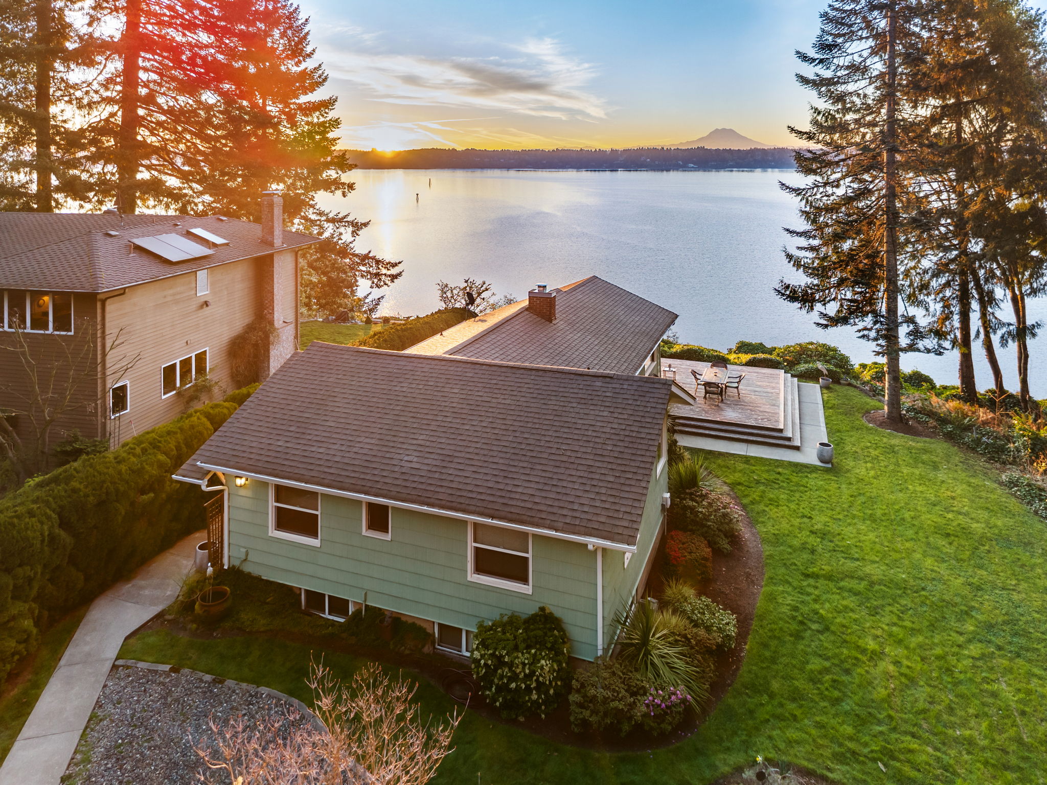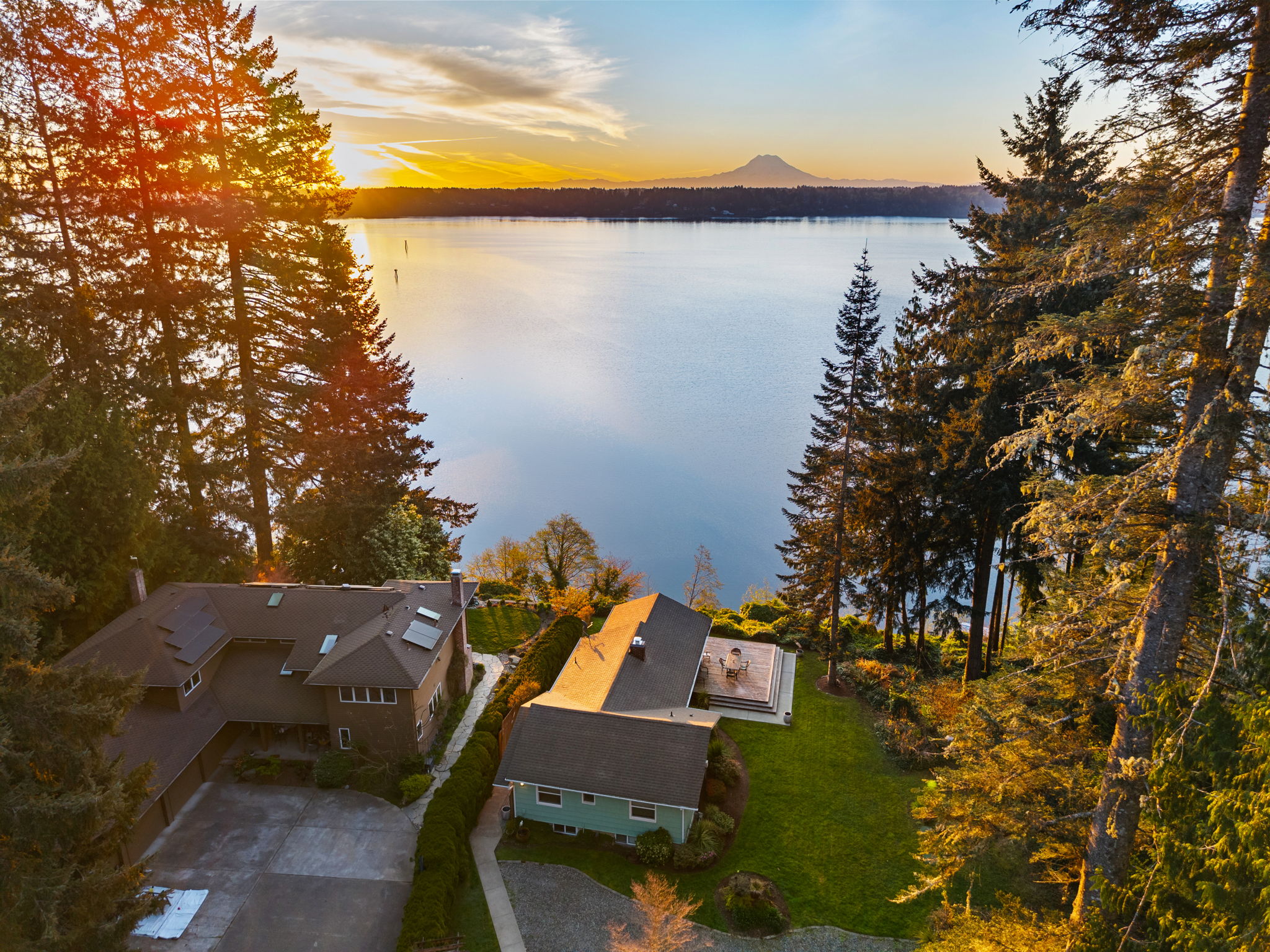 Escape to timeless serenity at 2501 43rd Ave NW, a historic 1925 Cooper Point high-bank bungalo offering rare solitude on 2.07 wooded acres. This charming 1,463 sq ft home commands breathtaking panoramic views over Budd Inlet, where you can watch ships navigate the Port of Olympia, catch exciting sailboat races, and enjoy the ever-changing tides and marine life of South Sound. Perched on a private high bank, the property delivers sweeping vistas of majestic Mount Rainier dominating the horizon. On crystal-clear days, a telescope reveals the distant peaks of Mount Adams and Mount St. Helens—a view that never loses its magic. Surrounded by towering evergreens and lush landscaping, the home feels like a private Pacific Northwest retreat while remaining remarkably convenient—just two miles from West Olympia amenities, shopping, dining, and downtown. Inside, the warm, light-filled interiors feature classic wood finishes, cozy bedrooms, and thoughtful updates that honor the home’s rich heritage. Outside, a generous deck and expansive lawn invite morning coffee with birds flying overhead or sunset dinners as the sun dips behind the water and mountains. The large lot provides ample space for gardening, play, or simply soaking in the peaceful forest setting. Blending historic character, unmatched natural beauty, and convenient location, this Cooper Point gem is a true legacy property. Own your own slice of Olympia's most coveted high-bank waterfront views—where solitude and stunning scenery meet every day.