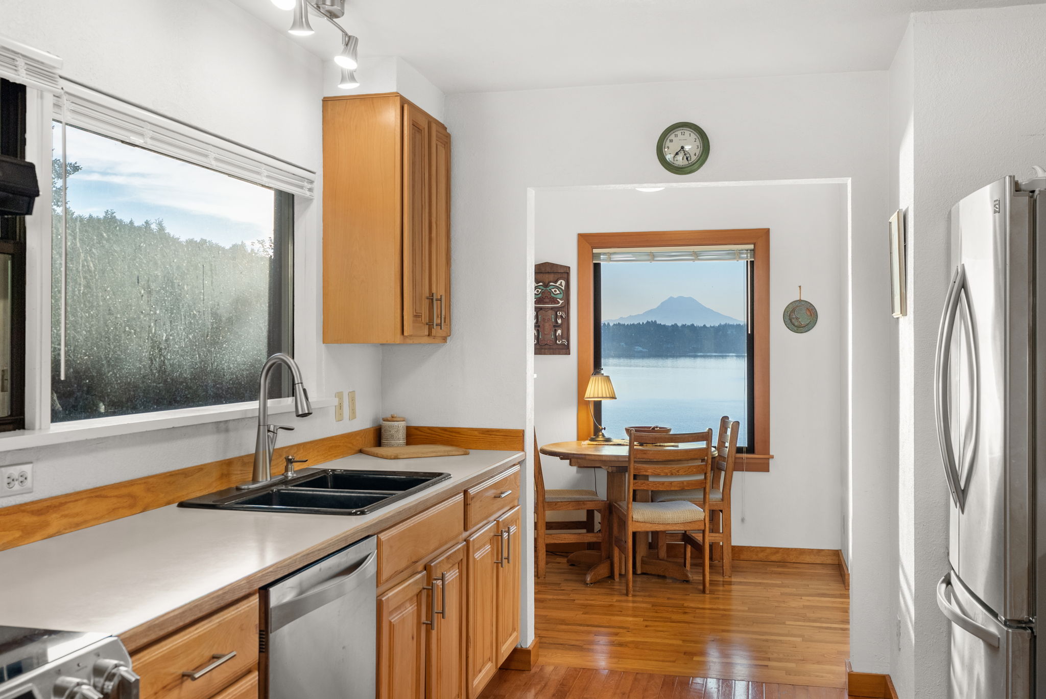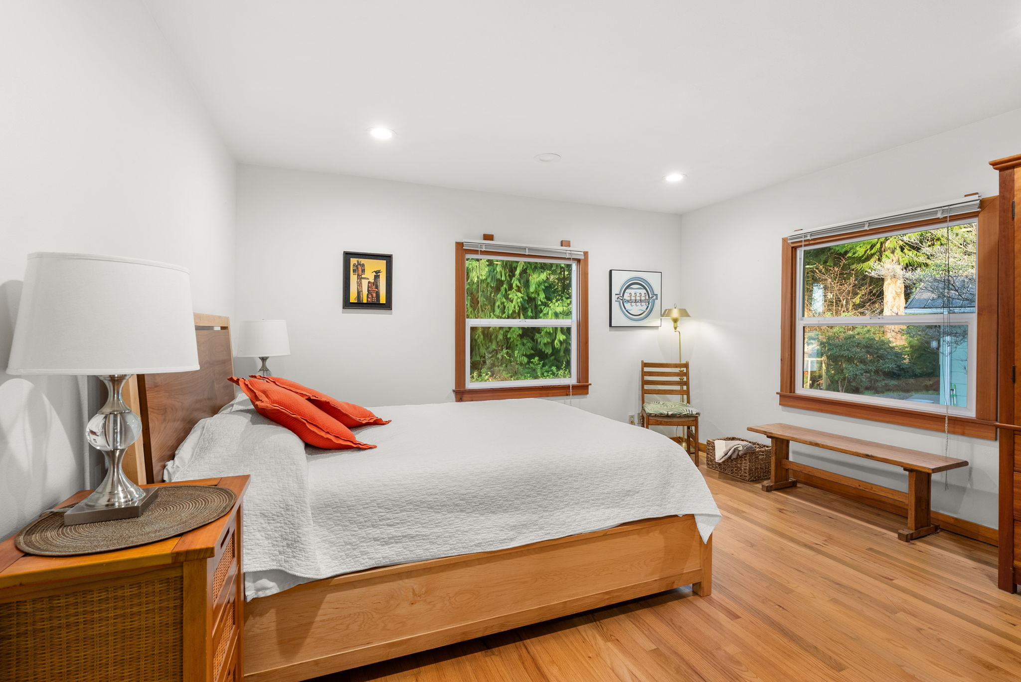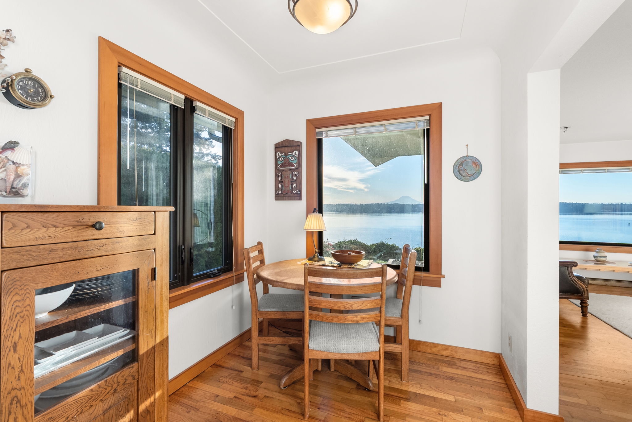 Escape to timeless serenity at 2501 43rd Ave NW, a historic 1925 Cooper Point high-bank bungalo offering rare solitude on 2.07 wooded acres. This charming 1,463 sq ft home commands breathtaking panoramic views over Budd Inlet, where you can watch ships navigate the Port of Olympia, catch exciting sailboat races, and enjoy the ever-changing tides and marine life of South Sound. Perched on a private high bank, the property delivers sweeping vistas of majestic Mount Rainier dominating the horizon. On crystal-clear days, a telescope reveals the distant peaks of Mount Adams and Mount St. Helens—a view that never loses its magic. Surrounded by towering evergreens and lush landscaping, the home feels like a private Pacific Northwest retreat while remaining remarkably convenient—just two miles from West Olympia amenities, shopping, dining, and downtown. Inside, the warm, light-filled interiors feature classic wood finishes, cozy bedrooms, and thoughtful updates that honor the home’s rich heritage. Outside, a generous deck and expansive lawn invite morning coffee with birds flying overhead or sunset dinners as the sun dips behind the water and mountains. The large lot provides ample space for gardening, play, or simply soaking in the peaceful forest setting. Blending historic character, unmatched natural beauty, and convenient location, this Cooper Point gem is a true legacy property. Own your own slice of Olympia's most coveted high-bank waterfront views—where solitude and stunning scenery meet every day.