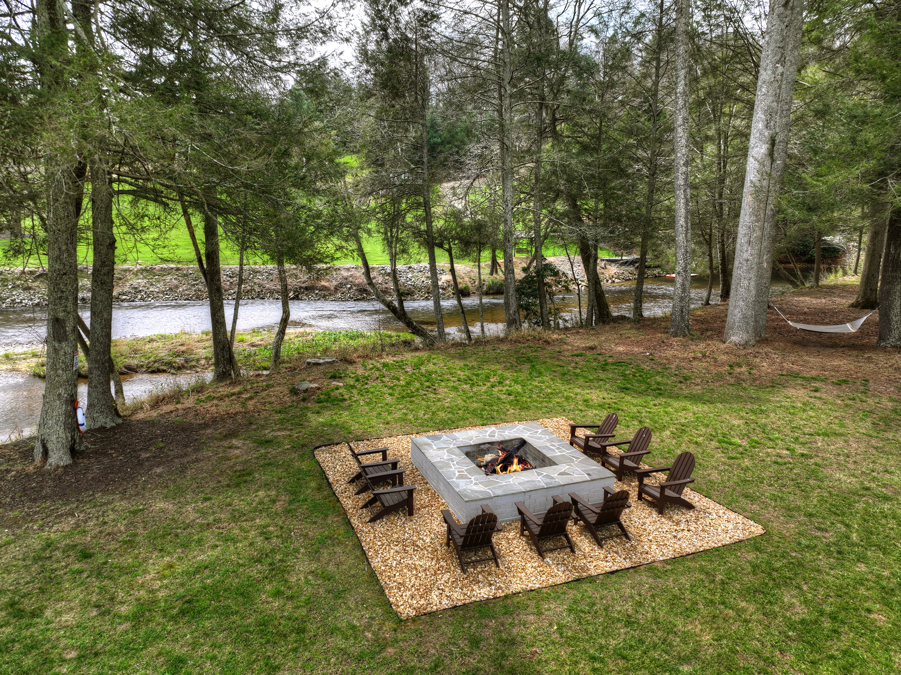 Just Listed-Perfectly curated and on the Toccoa River | Designer-Furnished & Turnkey. Welcome to the ultimate riverside wellness retreat in Suches, Georgia—where luxury meets the natural beauty of the Toccoa River. Set on 2.5 private acres in the exclusive Riverlands community, this custom-built home, built in 2024, offers 340 feet of pristine river frontage, with ownership extending to the midpoint—creating a rare, private trout fishing experience. Fully furnished and professionally curated by an award-winning designer— Inside, the open floor plan features elevated craftsmanship throughout and stunning river views from almost every room. The gourmet kitchen is equipped with Thermador appliances, custom cabinetry, and leathered granite countertops, flowing into the living space with white oak beams and custom built-ins. Expansive windows showcase stunning river and mountain views. The home includes four bedrooms, each with its own en-suite bath, plus a powder room. The main-level owner’s suite features vaulted ceilings, a spa-like bath, and a custom closet. Upstairs offers two additional suites and a flexible loft area with a built-in desk, a bonus room, and a brand-new sauna. Outdoor living is exceptional. Enjoy a covered porch with outdoor kitchen, fireplace, and views of the Toccoa. The terrace level offers a new pickleball court and a hot tub overlooking the river, storage for all your river accessories & outdoor gear, a riverside fire pit for evenings under the stars. Located in a boutique community with no rental restrictions, this property offers strong income potential all just a short scenic drive to Blue Ridge. Designed for comfort and efficiency with spray foam insulation, a tankless water heater, and durable white oak LVP flooring throughout. Built as a full-time residence with no expense spared. Currently on a short-term rental program. Must see in person to appreciate the detail and thoughtful design.