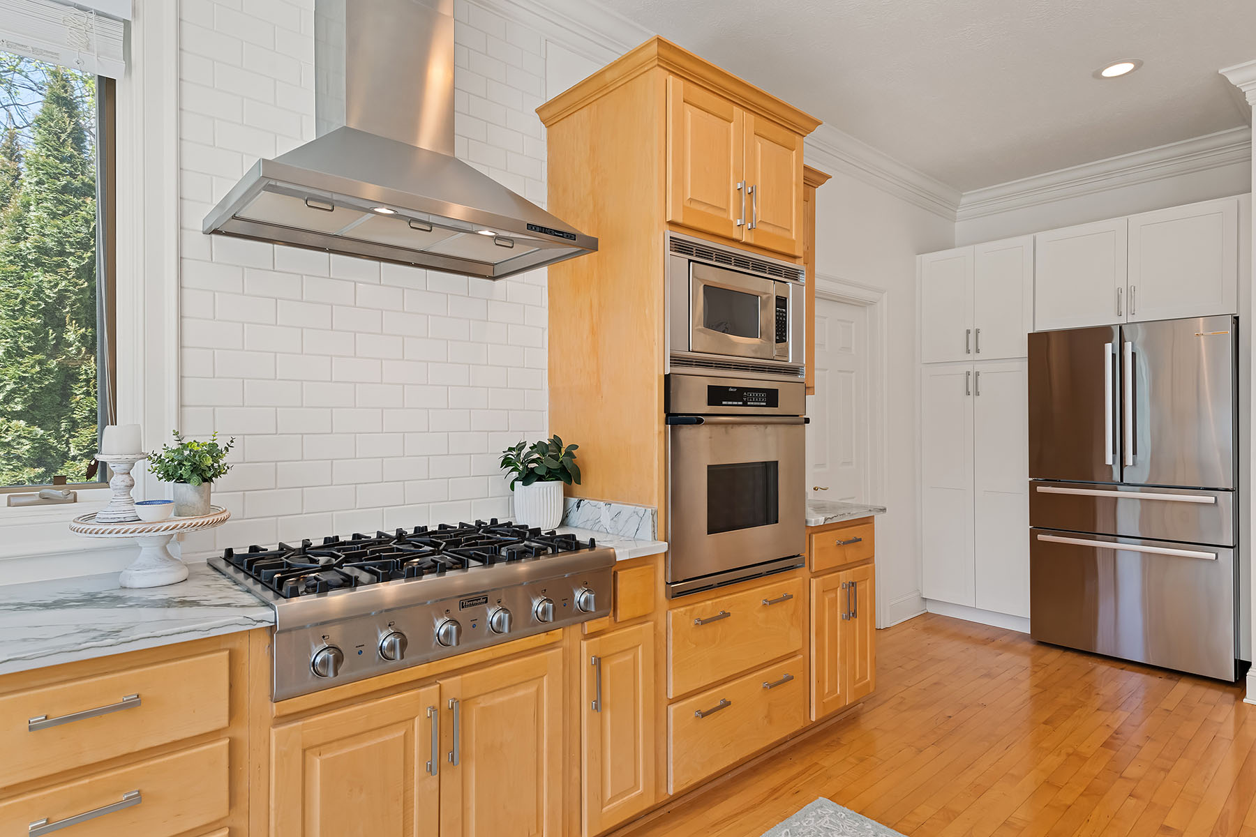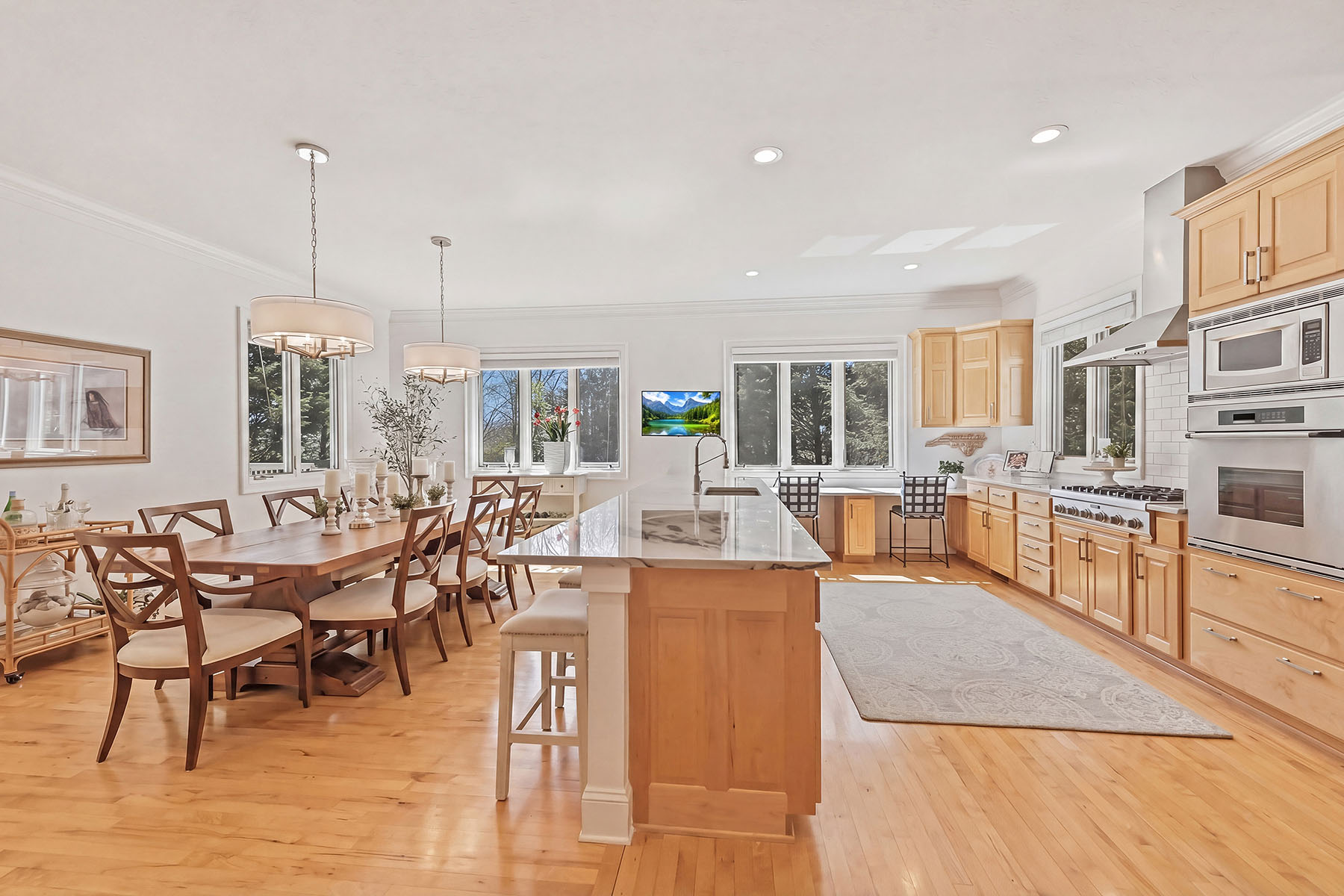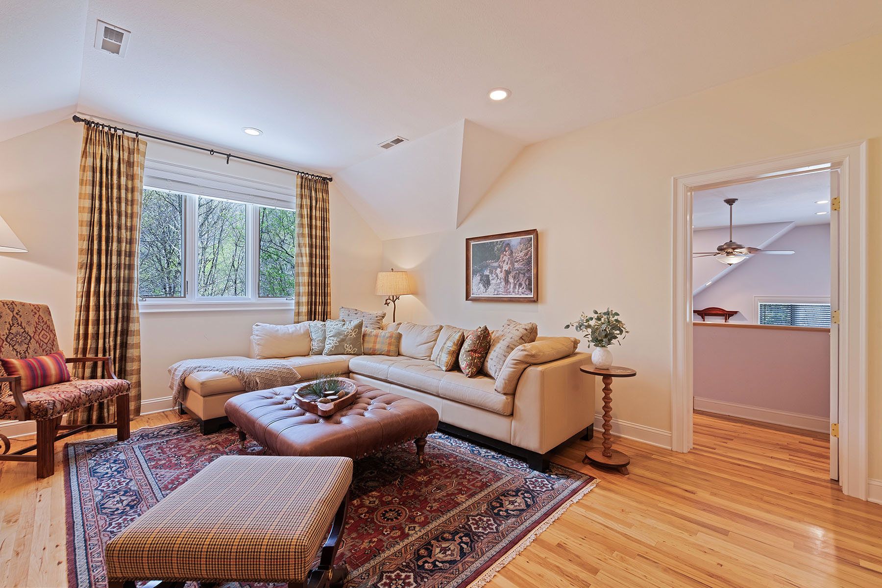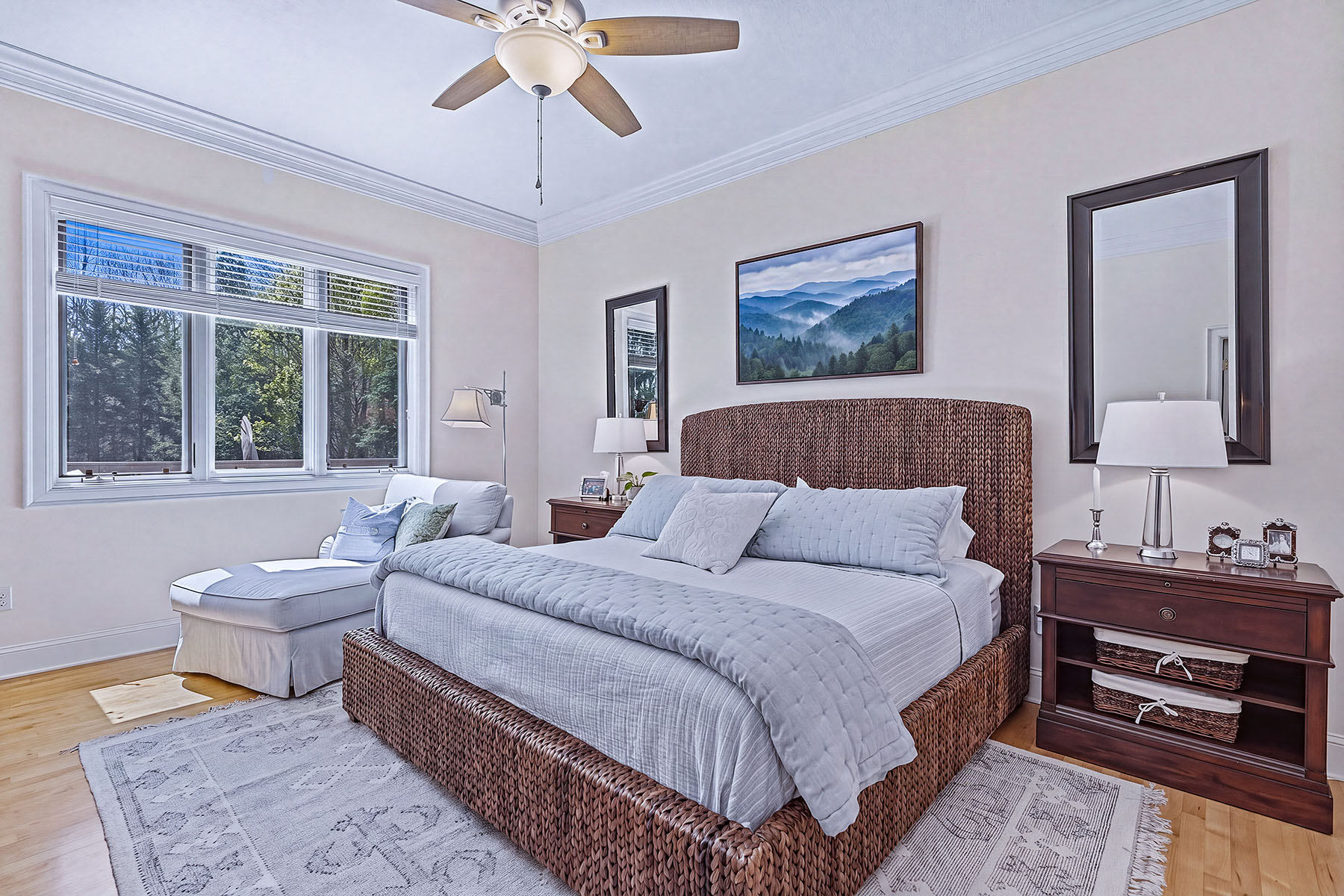 Welcome to Villa Catawba, a custom European-inspired residence set on 5.10 acres in the Villages of Plott Creek, approximately five miles from downtown Waynesville. Positioned to capture winter mountain views on a level yard that supports everyday living and outdoor entertaining. Constructed in 1999 with two-by-six framing for enhanced insulation, the home combines brick veneer and fiber cement siding with a roof replaced in 2023. Inside, 10-foot ceilings on the main level and 9-foot ceilings upstairs create a sense of volume, complemented by crown molding and hardwood flooring throughout. The kitchen opens to the dining area, creating a connected gathering space anchored by a large 3-centimeter Monte Blanc quartzite countertop, updated lighting, refined hardware and a Bosch counter-depth refrigerator integrated with built-in cabinetry. A butler's pantry and laundry area extend the functionality with additional custom storage and updated finishes. The residence includes five bedrooms, a bonus room suitable for office, media or flexible use and four full baths plus one half bath. The primary bath has been fully renovated with Italian tile, quartz surfaces, Kohler fixtures, a zero-entry shower, lighted mirrors and a smart toilet. Three guest baths have been updated with quartz countertops, vessel sinks and contemporary fixtures. Additional interior features include a wood-burning fireplace with blower, walk-in closets, finished attic storage and a game room with pool table and furnishings included. Infrastructure enhancements include a whole-house generator with warranty, surge protection, water filtration system installed in 2025, updated main-level heating and cooling in 2021 and dual water heaters. Outdoor living extends to a freshly stained deck, while the backyard is defined by a stone fire pit and walkway installed in 2024, creating a natural gathering area that complements the surrounding mountain setting. Select tree removal has further enhanced the views.