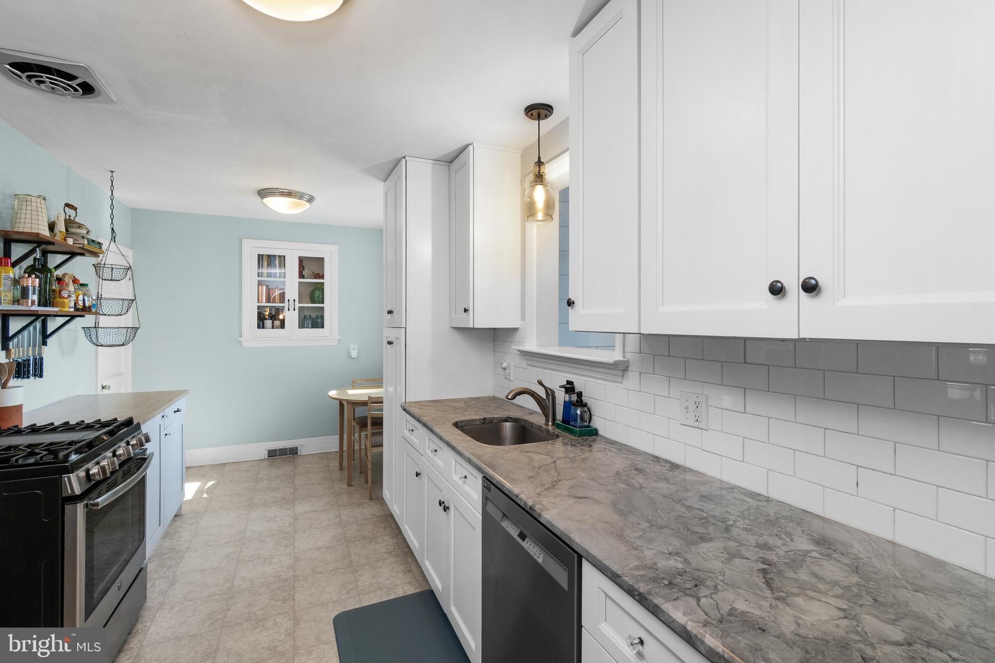 Welcome to 1110 Merrick Avenue in Haddon Township. A welcoming foyer with coat closet opens to a bright living room featuring hardwood flooring and abundant natural light. Straight ahead, the remodeled kitchen offers 42-inch soft-close cabinets and drawers, stainless steel gas oven, microwave, dishwasher, three-door refrigerator, subway tile backsplash, and a charming dining area. The first floor also includes a formal dining room, a primary bedroom, and a remodeled full bathroom finished with classic subway tile. At the rear of the home, an impressive family room addition provides generous gathering space and features a sliding glass door leading to the cement patio and fenced backyard, creating an ideal indoor-outdoor connection. Upstairs, you will find two additional bedrooms, a new half bathroom, and a spacious hallway area currently used as an office that can easily function as a sitting area, study space, or flex room. A full basement offers potential for future finishing or additional storage. The property also includes a one-car garage. Major upgrades provide peace of mind, including a newer roof, newer HVAC system, new hot water heater, and solar panels that will be paid off at closing. Conveniently located approximately 0.9 miles from the Westmont PATCO Speedline station, commuters can reach Center City Philadelphia in about 18 minutes. Newton Lake Park is approximately 0.6 miles away, and Cooper River Park is about 1.5 miles from the property. Popular local restaurants and shopping along Haddon Avenue in nearby Collingswood are roughly 1.0 mile away, offering a variety of dining and retail options. This home offers flexible living space, thoughtful updates, and a convenient location close to parks, dining, and transit.