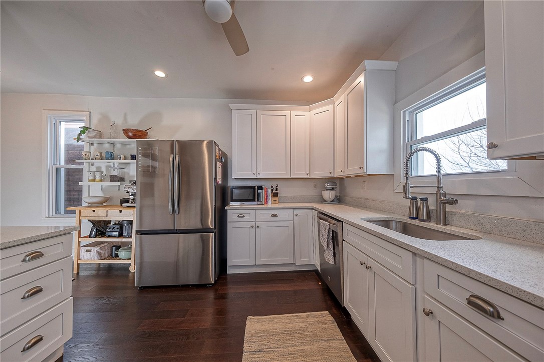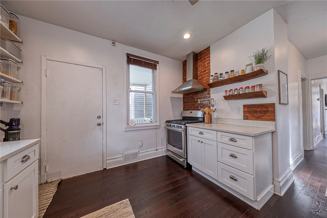 Charming Home with Modern Updates - Quartz Counter Tops, Stainless Steel Appliances - Stove Top Pot Filler, and Plenty of Cabinet and Counter Space - Engineered Hardwood Flooring Through Out Main Level - Exposed Brick LR - Decorative Fireplace in DR - Spacious BR's w/Ceiling Fans - Updated Bath - Primary BR w/Walk-In Closet - 2nd BR w/New Folding Barn Doors to Large Closet - Insulated Super 3rd BR has Area for Office w/Additional A/C - Covered Front and Back Porches to Enjoy Morning and Afternoon Sunshine - Additional Composite Deck for More Entertaining and Small Yard - Fenced Front and Back Yards - Spacious Walk Out Basement w/Laundry and Exercise Area/Storage - Updated Electric - Custom Scalloped Metal Roof - Convenient Location to Parkway, Squirrel Hill, Schenley Park, Universities, and Downtown.