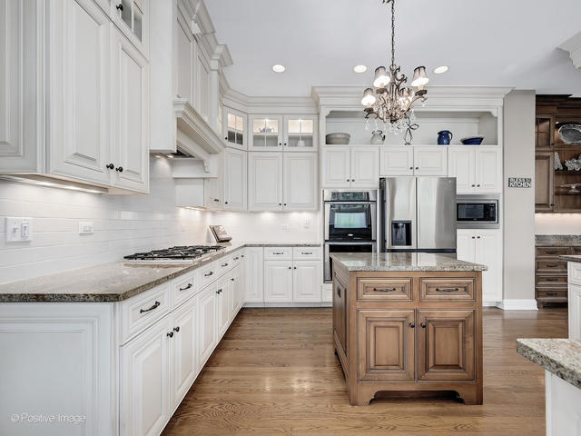 Welcome to 3408 Wild Prairie Ln - Geneva living at its finest! Spectacular, meticulously maintained 6BR + office/4.1BA single family home situated on a picturesque, professionally landscaped 100' x 150' lot with nearly 6,000 SF of living space on three levels, attached 3 car garage, impressive finished look-out basement, and wonderful Trex deck off of the kitchen that steps down to the large, fully fenced in grassy back yard with spacious paver patio. From the moment you stroll past the gracious covered dual front porch and into the striking foyer with 20FT vaulted ceiling, you will be captivated by the home's exceptional design elements, high-end craftsmanship, sun-drenched interior, and sought-after modern layout perfect for both fabulous entertaining and effortless everyday family living - for everyone! The amazing main level offers airy 10FT ceilings, extensive custom millwork and moldings, dedicated private office, front living room with French doors and extra reading alcove fitted with custom built-in shelving and a cozy window bench, and dining room with elegant wainscoting and 3-piece crown molding - all before heading into the heart of the home! The dream kitchen features a 15FT tiered-island with breakfast bar seating, center prep island, gorgeous antique white cabinetry with glass-paneled double-box uppers flush to the ceiling, stainless steel appliances with double oven, and tiled backsplash with under cabinet lighting. From the kitchen, move seamlessly into the adjacent: eat-in area with light-filled bay window that overlooks the backyard and has scenic views of nearby Peck Farm Park; the peaceful screened-in porch opening to the Trex deck; the spacious family room with stone fireplace and floor-to-ceiling windows - or, when it is time to come and go - the tiled Mud Room with coat closet, sink, and abundant built-in storage that opens directly into the attached 3-car garage. The second floor delights with a convivial lofted landing, 5BR's and 3 full baths - all with large dual vanities - a palatial primary suite with 12FT ceilings, dual walk-in closets (16 x 7 and 7 x 6), and an en-suite marble bath with separate shower and jacuzzi tub, an extra-large laundry room, and; enticing architectural details throughout such as desk alcove, reading nook, and lofted ceilings. Not to be outdone, enter the basement and prepare to be WOWED by the stunning 21FT stone and granite sit down wet bar with dishwasher, wine fridge and wall-mounted TV, a dedicated theatre room (projector and screen included), entertainment room with fireplace and large windows overlooking the backyard, additional sitting area with bay window, extra storage, and a full bath. Extensive enhancements and updates (full list available) include new roof and gutters (2023), new HVAC (2024), sprinkler system, custom solar screens (entire home), custom lighting, and so much more. Truly special home in highly-rated Geneva school district with convenient access to Randall Road and only minutes to downtown Geneva, METRA, shopping and dining. A stone's throw to Geneva Middle School North and Peck Farm Park (385 acres) with incredible hiking/biking trails, Butterfly House, wetlands, Nature Playground, observation silo and numerous athletic fields.