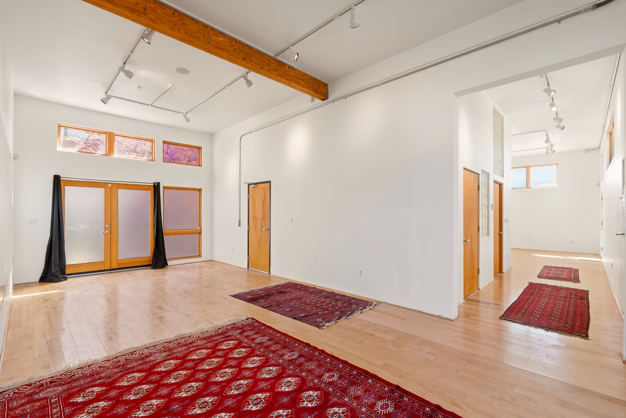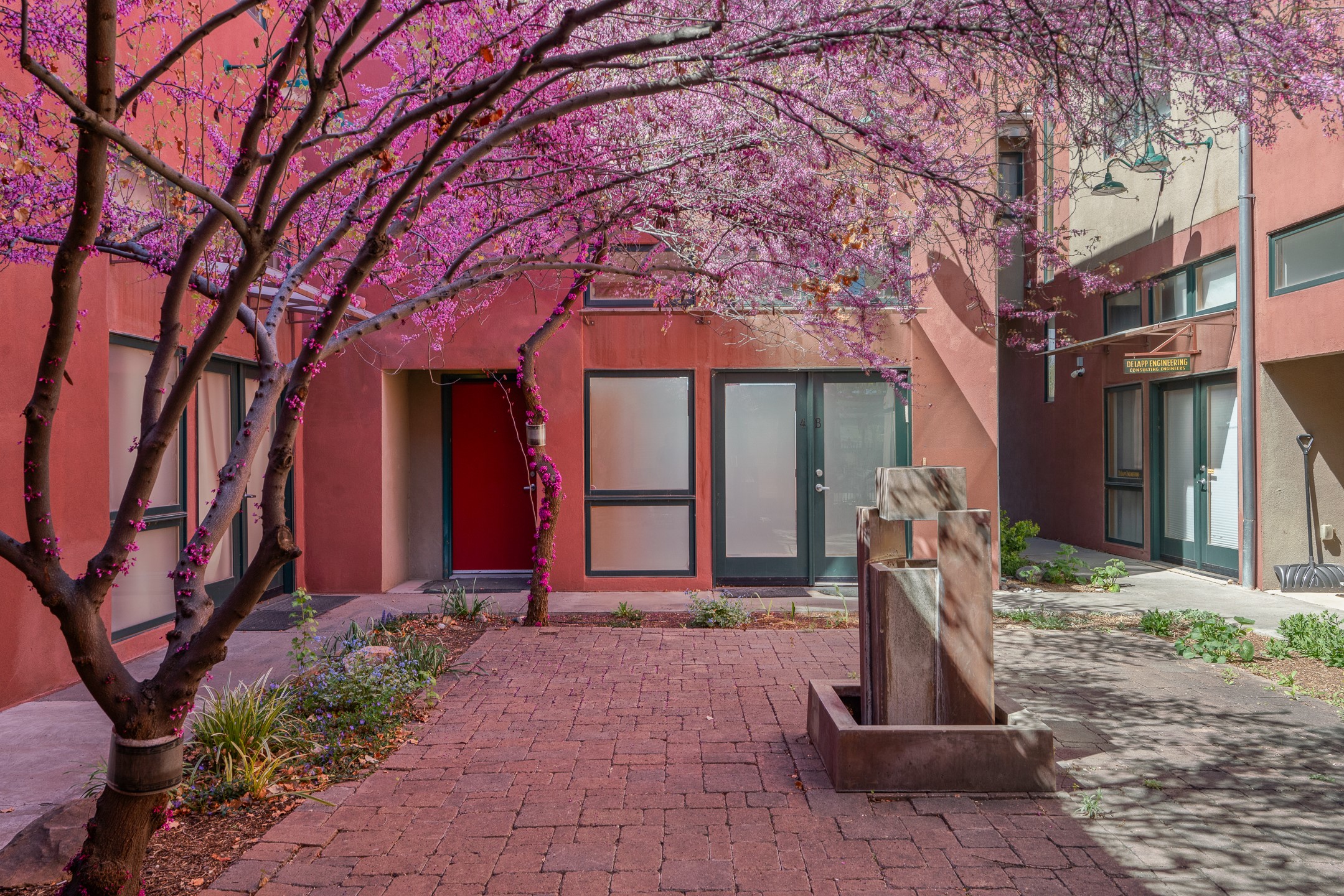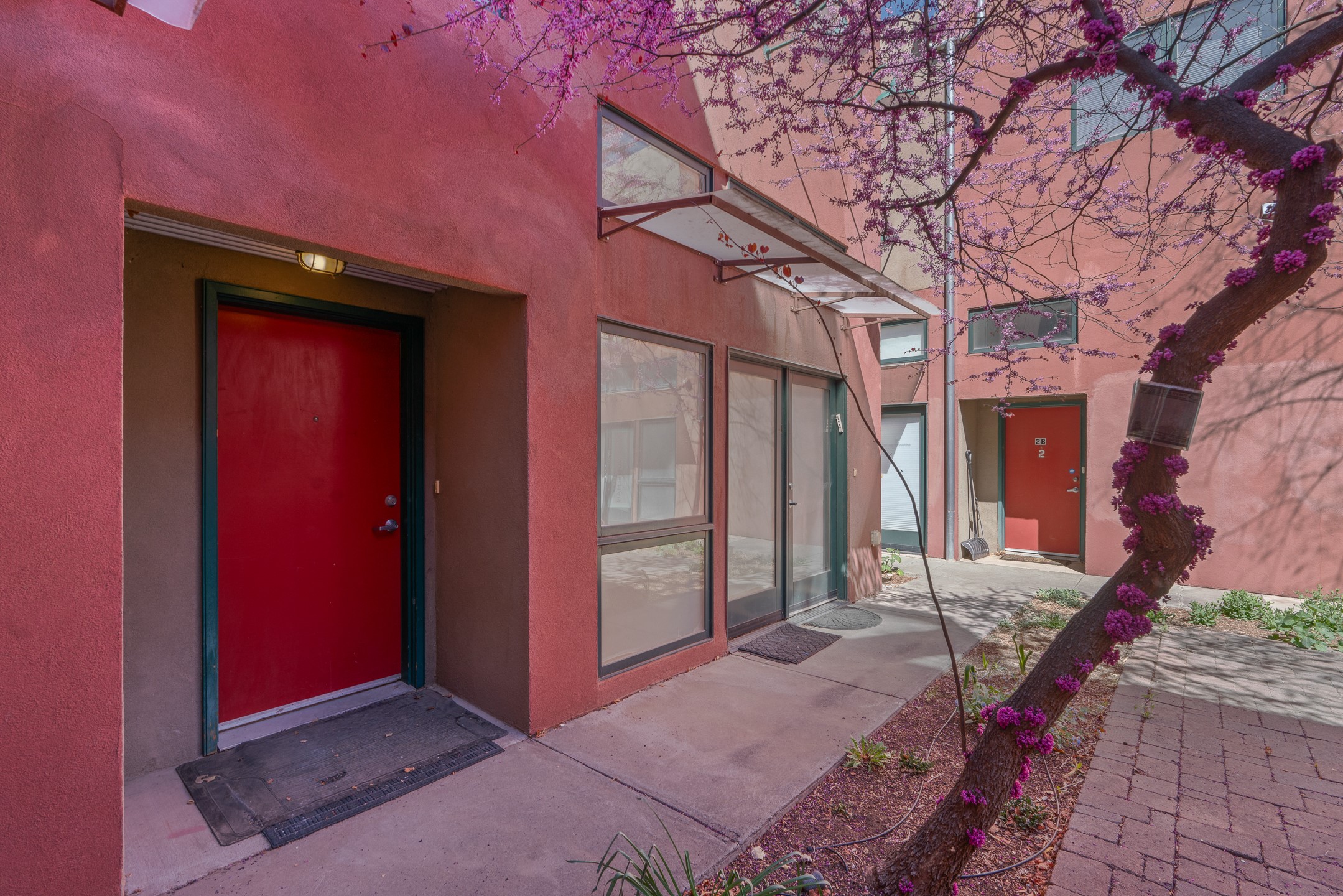 Exceptional modern 2BD/2BA live/work condominium in the Siler Arts District, designed by Dent & Nordhaus Architects. Offering 2,600 sq ft with C-2 zoning, 12-foot ceilings on both levels, surround sound throughout, and with mountain and city views, this property delivers an inspiring blend of residential comfort and true commercial flexibility. The private upper level has its own entrance and lives like a residence, featuring a comfortable bedroom, full bath, kitchen, spacious living area, breakfast area, and a bonus studio ideal for yoga, meditation, or creative pursuits. A second balcony provides a quiet retreat, thoughtfully separated from the work spaces below. The lower level is designed for professional, studio, or gallery use, with two large commercial spaces connected by a long hallway, an ADA-compliant bath, and a kitchenette with microwave and refrigerator. Separate front and rear entries allow for privacy, client access, and the option to live on one level while renting the other for additional income. This property also features numerous recent upgrades, including a brand-new tankless water heater, water softener/de-acidifier system, mini-split heating and cooling units on both floors, upgraded plumbing piping, and additional thoughtful improvements throughout. Enjoy the largest fully walled private yard/patio in the complex - approximately twice the size of neighboring units - ideal for entertaining, meeting clients, or creating an outdoor workspace. A rare opportunity combining outdoor space, functionality, and flexibility in a vibrant Santa Fe location.