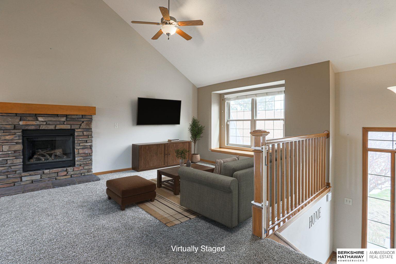 Lakeside living awaits in this well-maintained 3-bed, 2.5-bath home built in 2013 offering space and comfort, including two living areas and a primary suite with a private ensuite bath & separate his-and-hers closets. Step outside and enjoy the lifestyle this home offers--an upper-level deck with beautiful sunsets & lake views plus a lower-level walk-out patio only steps from a scenic lakeside walking trail and park offering shoreline fishing and relaxing just beyond your backyard. Vaulted ceilings & a stunning stone fireplace highlight the main living space--perfect for relaxing. Warm wood trim, doors, and cabinetry bring character to every room, and winters are easy with the fully finished, oversized two-car garage. Home is move-in ready with new carpeting, fresh paint & new A/C system.