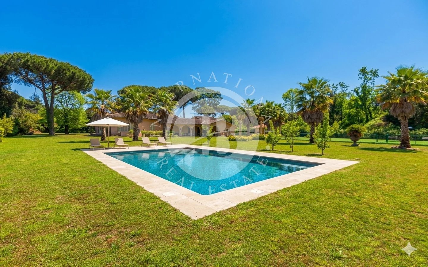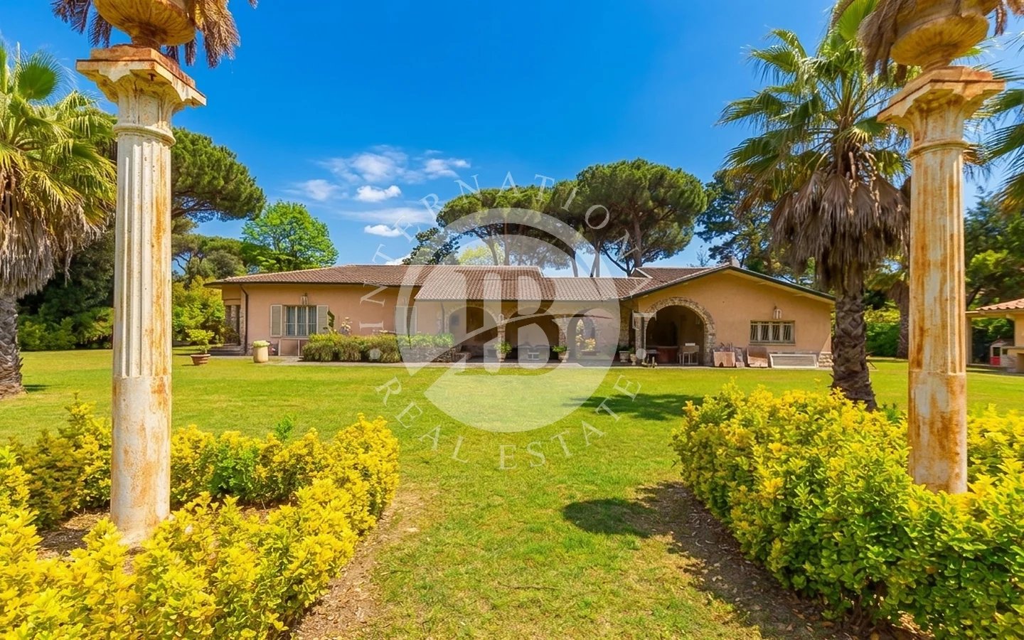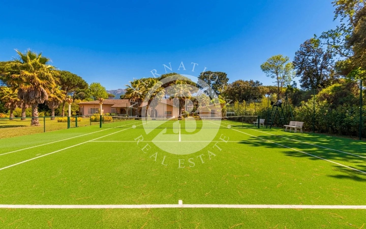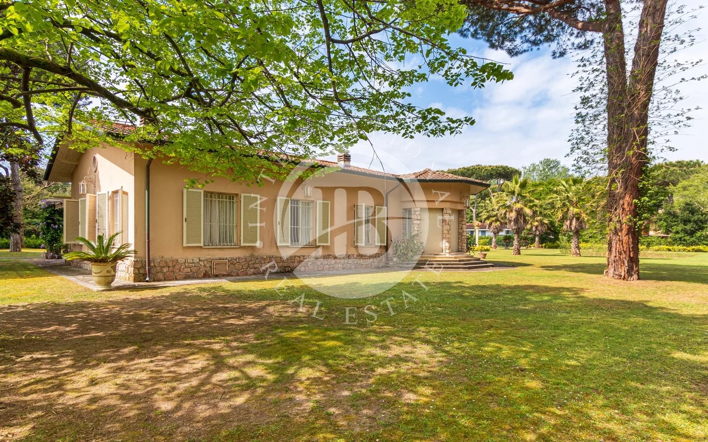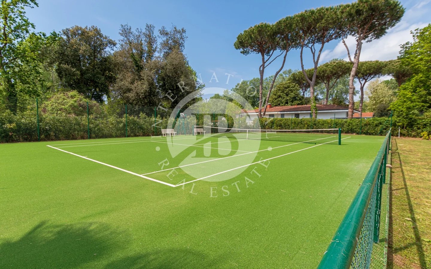 Located in the peaceful area of Ronchi, just moments away from the exclusive Forte dei Marmi, this prestigious villa is nestled in lush greenery and features an architectural style reminiscent of the charm of ancient Pompeian domus.A winding driveway leads to an enchanting central courtyard with a manicured lawn and a decorative fountain at its heart. Overlooking this harmonious space are the two main buildings that form the residence.The main villa, conveniently arranged on a single level, stands out for its refined design. The heart of the home is a spacious living room with a fireplace, flooded with natural light thanks to an elegant bay window. From here, the living area flows seamlessly outdoors onto a stunning terrace that transitions into a covered loggia facing the courtyard. Arranged around the salon are the dining room, an eat-in kitchen, and the sleeping quarters, comprising four large bedrooms and three bathrooms.Nearby, the annex is spread over two floors, offering a spacious 'taverna' with a kitchenette on the ground floor and two additional bedrooms with a bathroom upstairs. Adjacent to the loggia is a further independent unit with a private bathroom, ideal as an atelier or a guest suite.The 3,000 sqm grounds serve as a true private green oasis, enriched by majestic maritime pines and recently enhanced with a new private tennis court. The property also offers the potential to build a swimming pool.While its architectural splendor remains intact, the villa currently requires general renovation to be restored to its full glory and updated to modern technological standards.The locality of Ronchi is an oasis of tranquility situated in the greenest stretch of the Apuan coast, where the dense Mediterranean pinewood reaches right down to the shore.It is the ideal choice for those seeking privacy and peace without sacrificing convenience. The area is predominantly residential, characterized by large gardens and tree-lined avenues that ensure a cool, pleasant microclimate even in the height of summer.One of its most significant highlights is the strategic proximity to Forte dei Marmi, the glamorous heart of Versilia. Home to high-fashion boutiques, Michelin-starred restaurants, and historic beach clubs, it is just a few minutes away by car or via a pleasant bike ride along the seafront cycling path.500m from the beach4km from Forte dei Marmi50km from Pisa International Airport (PSA)240km from Milan