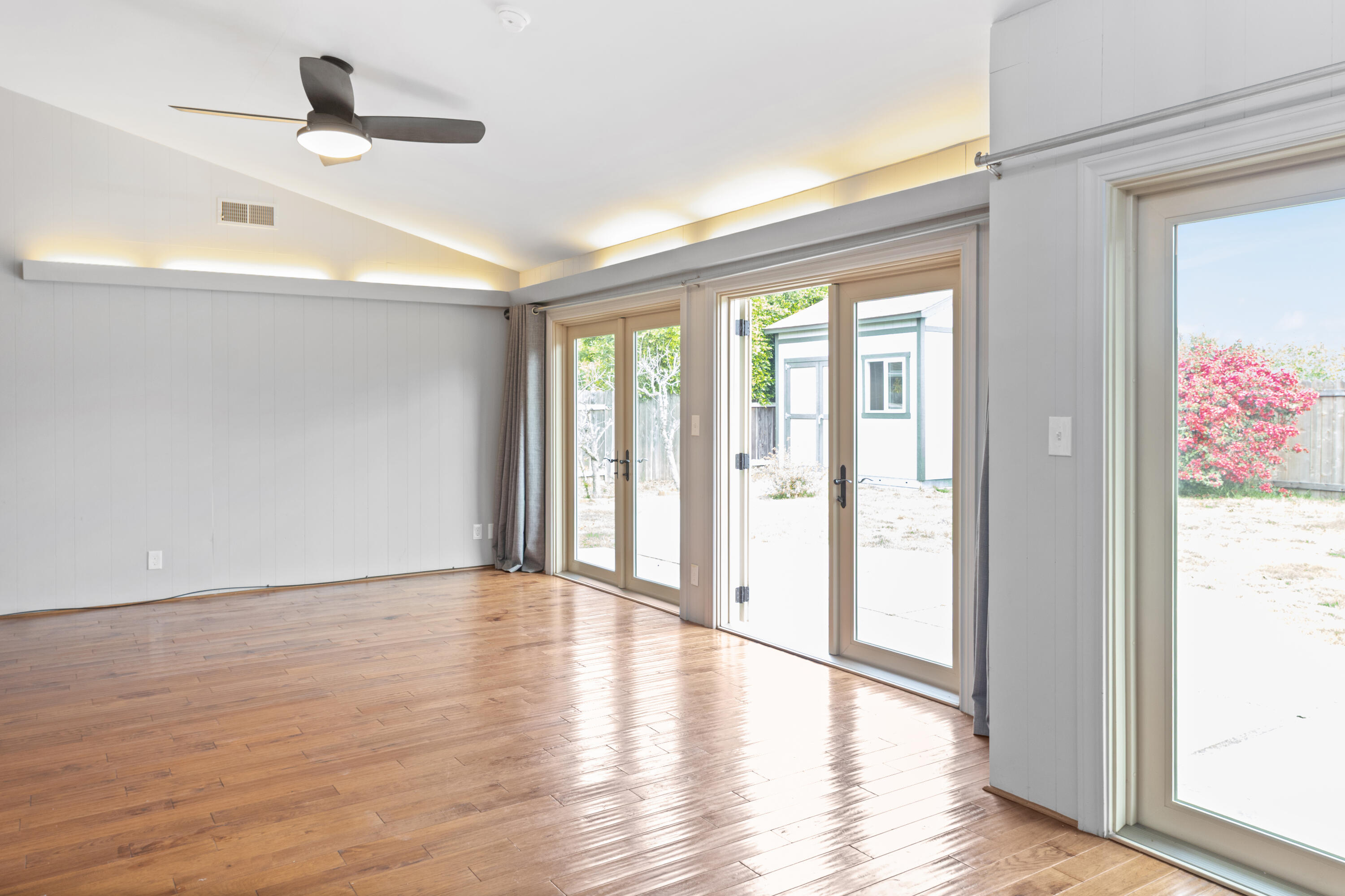 Full of charm and character, this inviting single-level home features three bedrooms and two bathrooms. Hardwood floors, vaulted ceilings, and a cozy fireplace create a warm, welcoming atmosphere. French doors open to the backyard, blending indoor and outdoor living--perfect for relaxing or entertaining guests. The kitchen offers a charming dining space, complemented by a vintage hall bath and a beautifully updated primary bathroom. A two-car garage with laundry hookups adds everyday convenience, while a separate backyard workshop provides flexible space for hobbies or storage. Located near the bike path with easy access to UCSB, Goleta, the beach, and Cottage Hospital, this home offers both comfort and an unbeatable location.