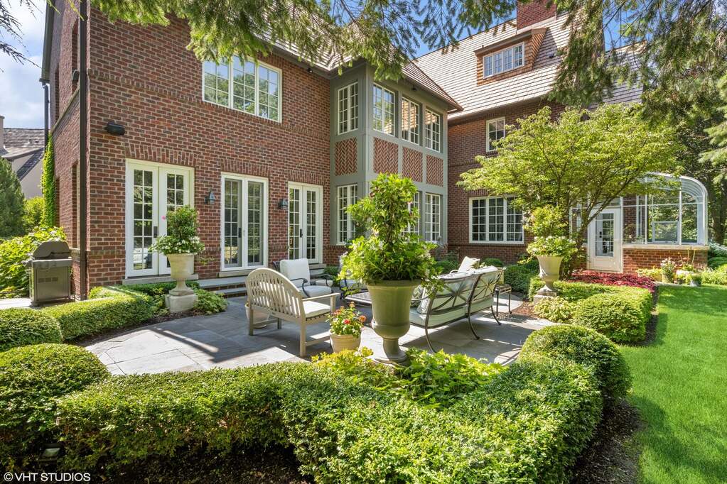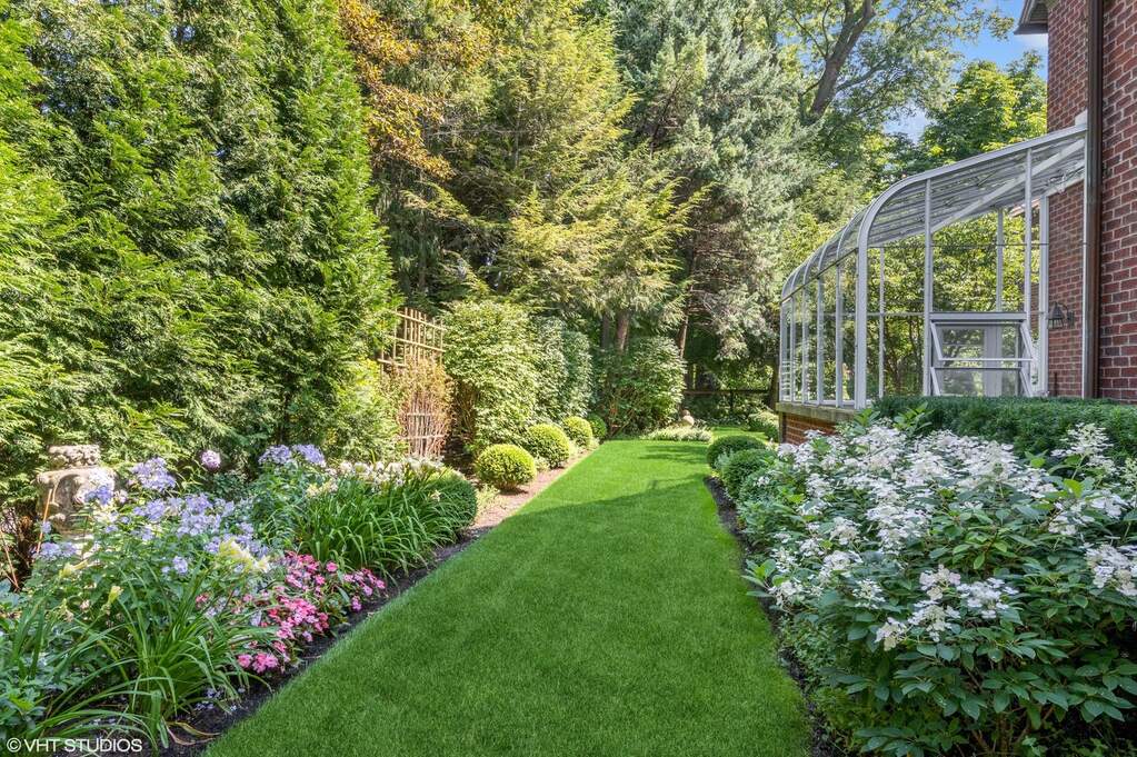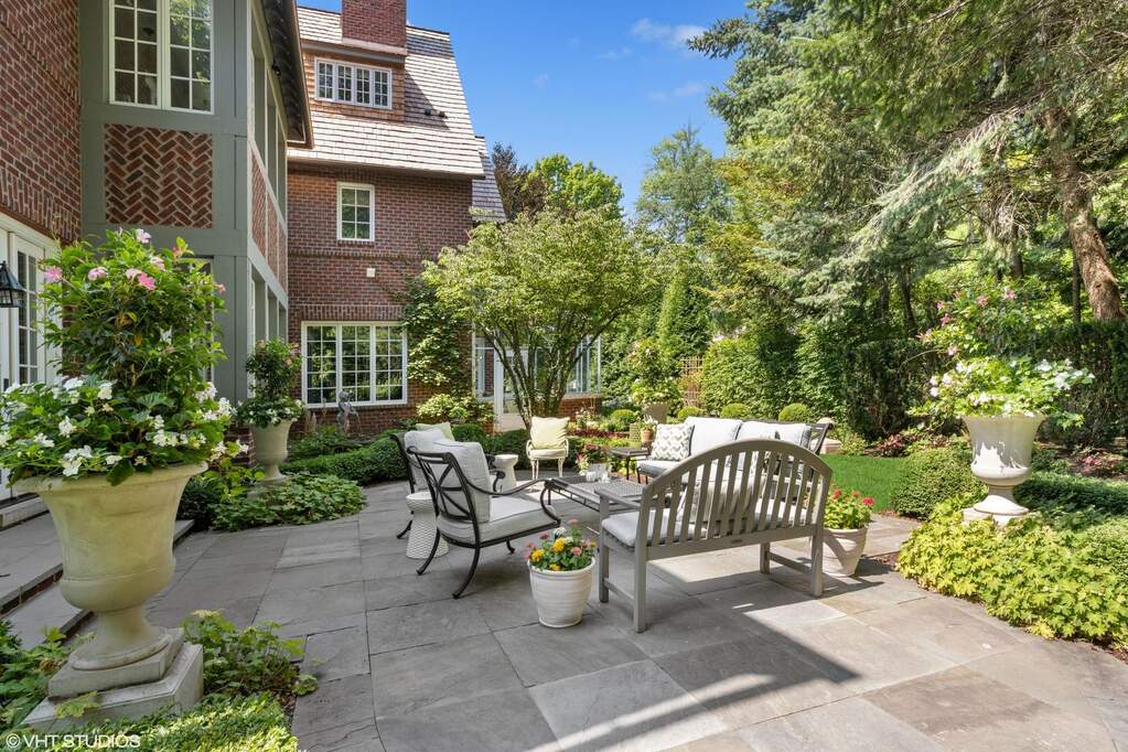 Experience refreshing lake breezes from this exceptional English Manor estate, offering 7 bedrooms, 5 full and 2 half bathrooms, four fireplaces, and a three-car attached garage. Spanning four levels of beautifully finished living space, this fully renovated, light-filled home blends timeless architecture with modern sophistication. Designed by Chip Hackley and enhanced with exquisite landscaping by Craig Bergman, the residence showcases remarkable craftsmanship, custom millwork, and refined designer finishes-all set in a coveted location with views of Lake Michigan. A gracious foyer welcomes you with a sweeping staircase, custom wood banister, and elegant runner. The expansive living room, bathed in natural light from floor-to-ceiling windows, sits to the left, while an elegant formal dining room lies to the right. Connecting the two is a thoughtfully designed butler's pantry featuring a wine cooler, secondary sink, Miele dishwasher, polished nickel hardware, and sophisticated lighting-perfectly suited for seamless entertaining. The gourmet kitchen is a chef's dream, featuring a Wolf dual-fuel range, custom hood, Sub-Zero refrigerator/freezer, two sinks, and a Miele dishwasher. A large center island with prep sink and seating anchors the space, complemented by a striking Calacatta marble backsplash, pot filler, and polished nickel finishes. The sun-filled breakfast area flows effortlessly into the inviting family room and oversized great room, creating an ideal layout for both everyday living and entertaining. Additional highlights include private office spaces and a charming greenhouse with seating-perfect for relaxing or gardening. Upstairs, the luxurious primary suite offers a serene retreat with a fireplace, dual walk-in closets, and a spa-inspired bath featuring soaking tub, steam shower, heated Calacatta marble floors, dual vanities, and custom cabinetry. A sitting room and convenient second-floor laundry enhance the suite's comfort. Four additional bedrooms on this level include ensuite or dedicated baths, along with a separate office space. The third floor adds two more bedrooms and a full bath. The lower level is designed for elevated living, boasting high ceilings, a home theater, exercise room, and a pool room with built-in furnishings. Additional features include a wine room, full bath, floral arranging room, and rich hardwood flooring throughout. The professionally landscaped grounds offer a private oasis, with bluestone patios, lush gardens, mature trees, perennial plantings, and lake breezes. A designated vegetable garden with irrigation, zoned sprinkler system, and elegant outdoor lighting enhance the outdoor experience. The property is adjacent to Mahoney Park, providing additional open green space. Ideally located across from Lake Michigan and just moments from Plaza del Lago and downtown Wilmette, this home offers convenient access to both Wilmette and Kenilworth train stations, along with highly regarded schools. A truly exceptional property that combines elegance, comfort, and premier location.