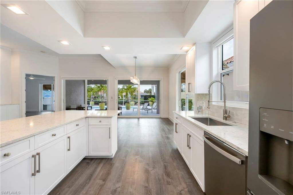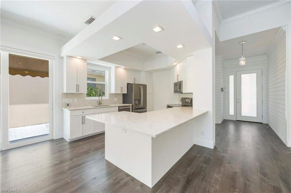 Step into a home that feels different the moment you arrive. This beautifully remodeled Oakmont residence is tucked into a private, lakefront setting within the award-winning community of Village Walk in North Naples, where lifestyle and location come together seamlessly. Inside, volume ceilings and natural light create an inviting, open-concept living space designed for both everyday comfort and effortless entertaining. Offering nearly 2,000 square feet under air, this thoughtfully designed home features 4 bedrooms and 3 full baths, with flexible living options ideal for guests, a home office, or multi-generational living. The primary suite is a true retreat, rarely found at this price point, featuring dual private baths. One offers a soaking tub, walk-in shower, and generous vanity, while the second showcases a steam shower with dual showerheads for a spa-like experience at home. The kitchen is both stylish and functional, highlighted by bronze stainless appliances, abundant counter space, and a seamless connection to the main living areas. Then you step outside and everything changes. The screened lanai opens to a long lake view and a resort-style pool framed by lush palms, orchids, water features, and evening landscape lighting. It is private, peaceful, and built for the Florida lifestyle. A front courtyard firepit adds another layer of charm and entertaining space that most homes simply do not offer. Village Walk is known for delivering one of the most active and amenity-rich lifestyles in Naples. Residents enjoy a vibrant Town Center with a full-service restaurant and bar, resort and lap pools, tennis, pickleball, fitness center, and a full calendar of social activities. All of this just minutes to Naples' white sand beaches, world-class dining, and shopping. This is not just a home. It is a lifestyle, and at this price point, it stands apart.