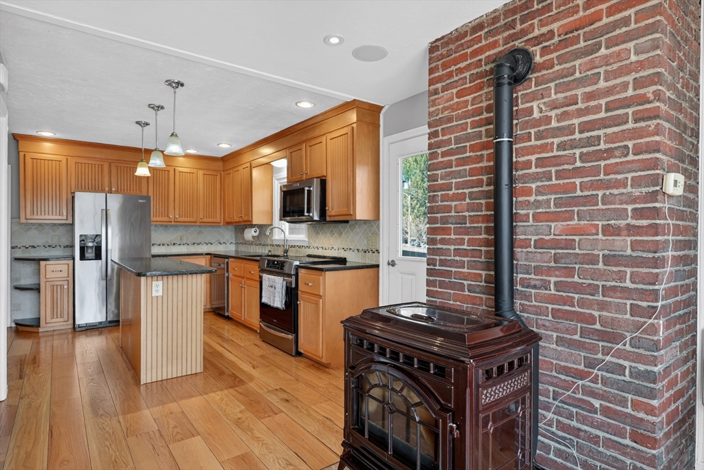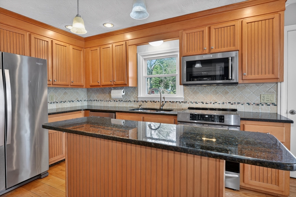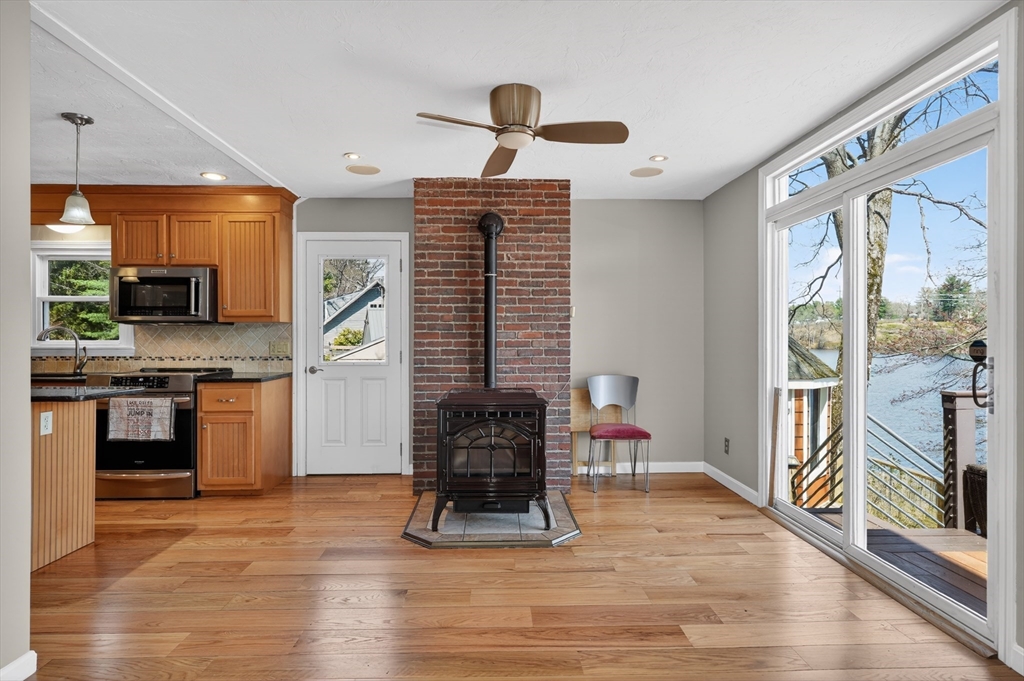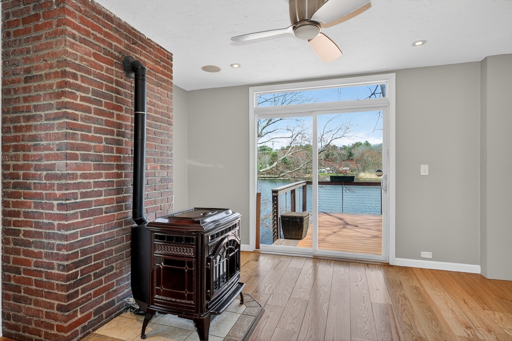 LOCATION, LOCATION, LOCATION! NEWTON POND! Well maintained, Sunny, Waterfront property with open floor plan, has amazing views overlooking the pond and dock. The HUB of this home is the custom cabinet Kitchen with granite counters and stainless steel appliances, open to a spacious Living Room and Dining Room with pellet stove. Additionally, there is a generously sized flex space that can be used as a Primary Bedroom or first floor Office with full bath and double closet. The second floor has a lovely Cathedral Ceiling Main Bedroom with Cork Flooring and 2 large closets. Completing the second level are two more amply sized Bedrooms, and a well appointed half bath. The finished walk out Lower Level is designed as a Multi-Generational living space complete with a 2nd Kitchen, full Bath and wood stove overlooking the tranquil pond setting.Fresh Paint, Gleaming Wood Flooring, an oversized 2 car detached Garage with storage space above, plus a gazebo and two storage sheds.