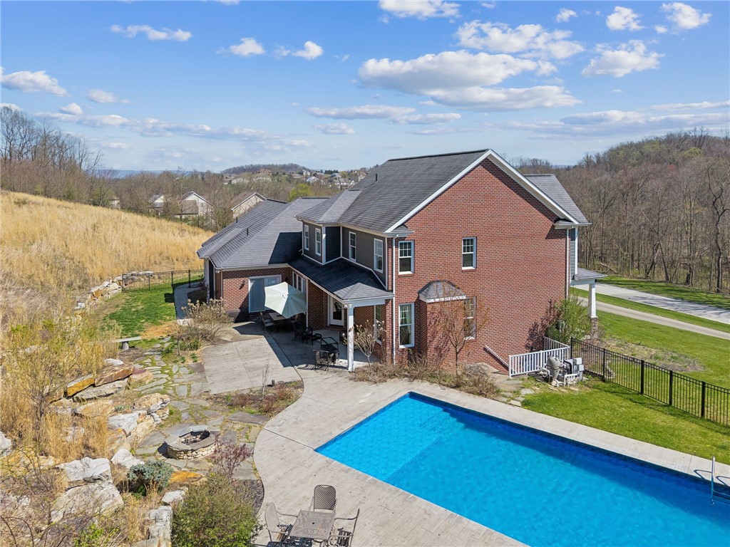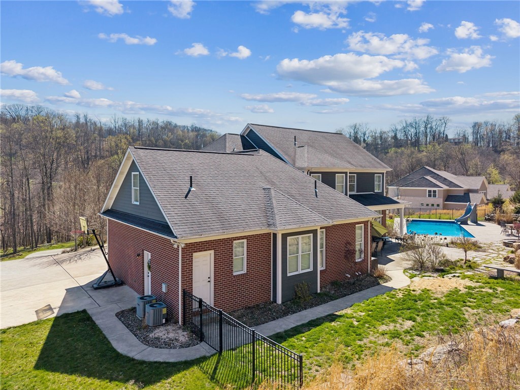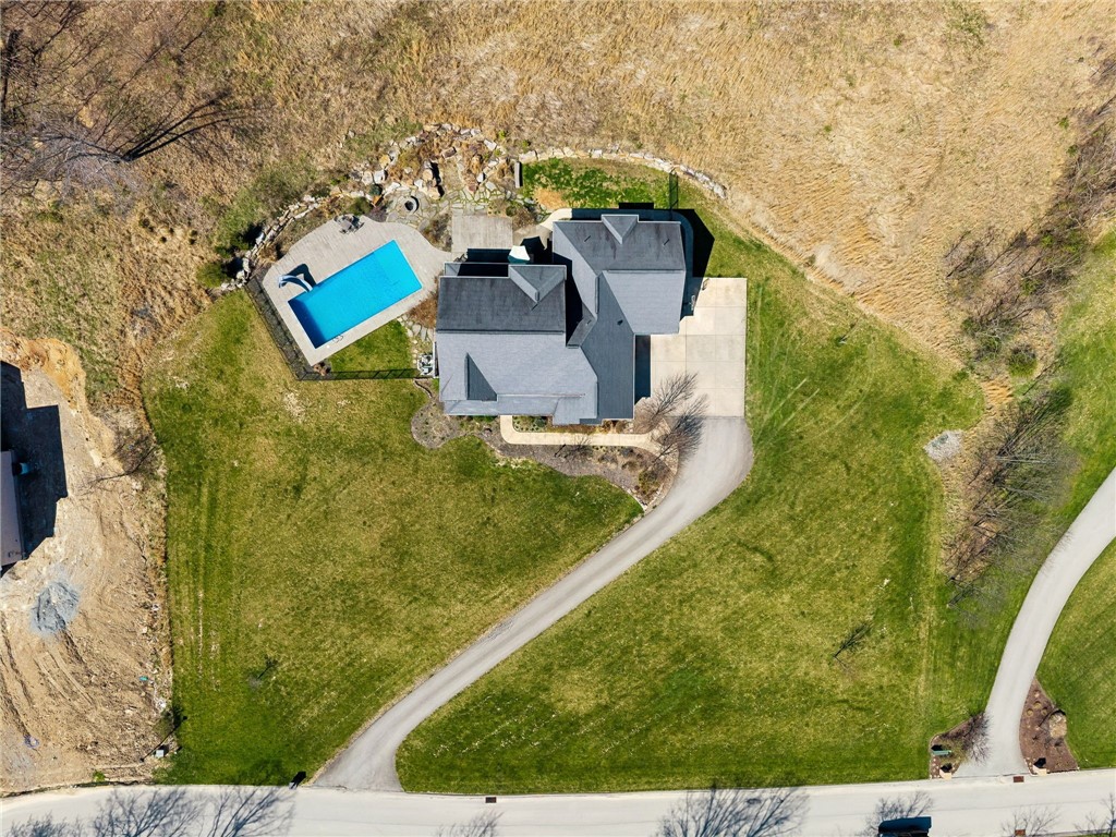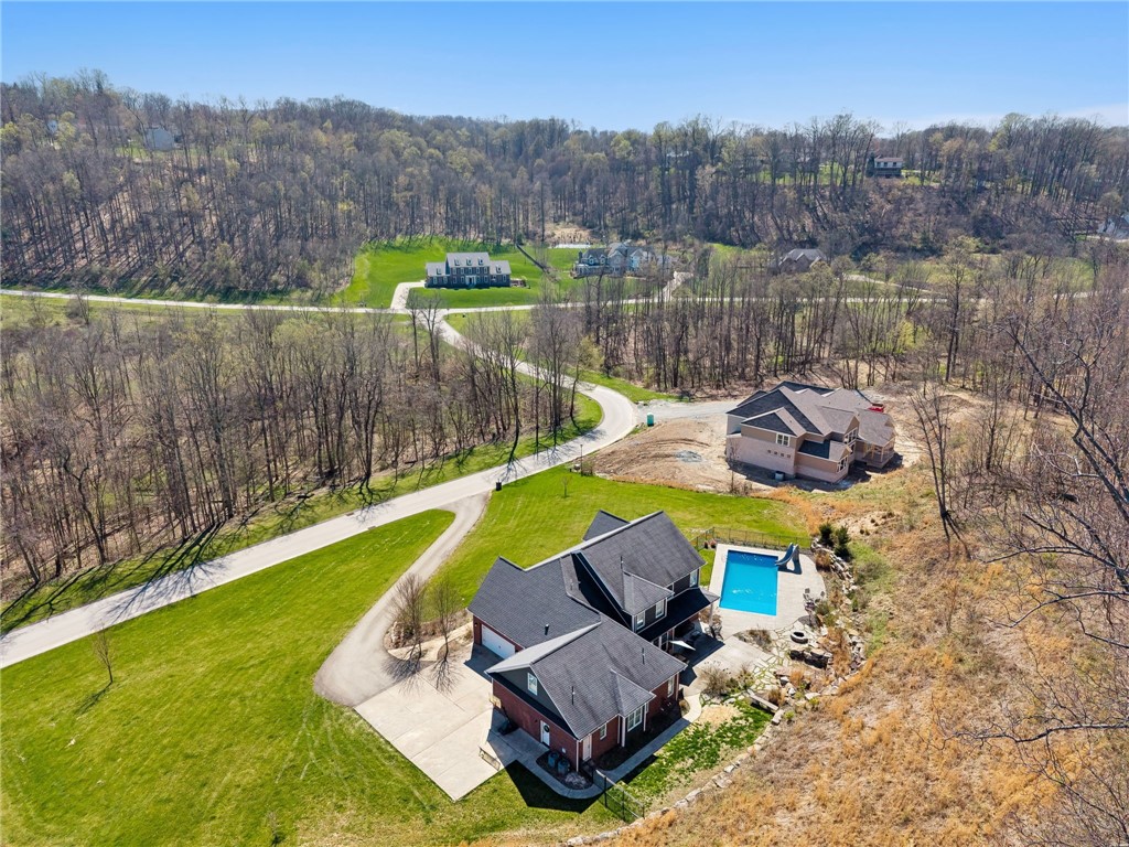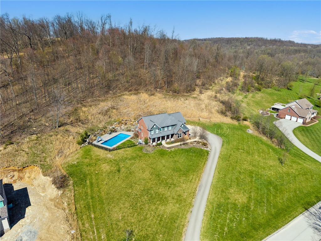 This all custom "Rustic Beauty" sits on over 2 acres and backs to a large wooded parcel. The front yard looks out onto a 28+ acre nature preserve. Beautiful heated in-ground swimming pool with a lovely half bathroom that is accessible from the outside. Beautifully landscaped. Large paved driveway with extra parking pad. Three car L shaped garage. Inside on the main level you will find a lovely foyer, formal office, dining room, large open kitchen with eat in area, expansive kitchen island and bar area for your stools. Gorgeous appliance package; Frigidaire Pro full size refrigerator and freezer connect with a custom trim package to make one large commercial size unit. Double Kenmore convection ovens. Kitchen is open to the two story great room. Huge first floor Master ensuite. Convenient to the entrance from the garage is the mud room, powder room and separate laundry room. The second floor looks down into the Great Room and has an ensuite guest bedroom, two additional bedrooms connected by a Jack n Jill bathroom. The expansive finished bonus room is being called the 5th bedroom for convenience purposes. This room has a very large unfinished room for storage or future plans. All three upper bedrooms have oversized walk in closets. Basement is massive and unfinished and has a stairway to the outside yard and pool area. Thank you in advance for not driving up the driveway without an appointment.