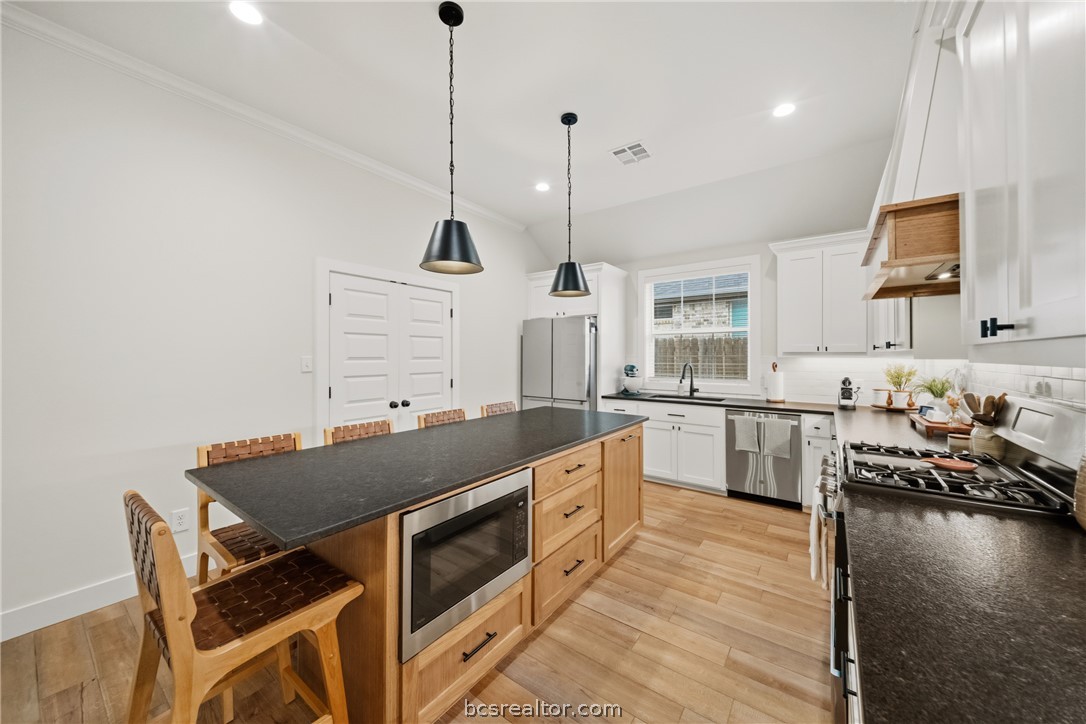Welcome to 3520 Fairhope Way located in the highly sought after Greenbrier subdivision in Bryan. Step inside this beautifully maintained 4-bedroom, 2.5-bath home that blends style, comfort, and functionality. From the moment you arrive, you'll notice the charming curb appeal, clean lines, and inviting entry that set the tone for what's inside. The open-concept floor plan offers a bright and airy living space filled with tons of natural light, high ceilings, and a floor plan that seamlessly flows throughout the home. The kitchen is a true centerpiece, featuring a large island, gorgeous countertops, stainless steel appliances, and an abundance of cabinet and counter space - for both everyday living and entertaining. The spacious primary suite provides a relaxing retreat with a spa-like bathroom that includes a soaking tub, elegant walk-in shower, and a generous walk-in closet. Three additional bedrooms offer flexibility for kids, guests, a home office, or flex space, while the convenient half bath adds extra functionality for visitors. One of the home's standout features - an oversized backyard w/ covered patio. With plenty of room to play, entertain, or even add a pool, this expansive lot offers endless possibilities. Additional highlights include a large laundry area, modern finishes throughout, and a thoughtfully designed floor plan that maximizes space and comfort. This home truly checks all the boxes - Don't miss your opportunity to make it yours!