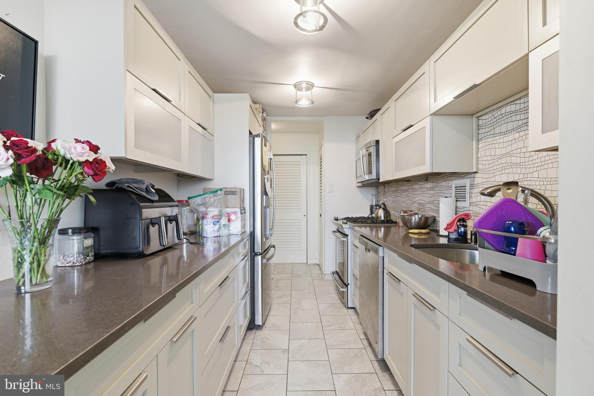 Welcome to Unit 1204 - an exceptional opportunity to own a beautifully renovated 2-bedroom, 1-bath corner residence offering style, comfort, and sweeping views in every direction. From the moment you enter, you'll appreciate the thoughtful upgrades and attention to detail that make this home truly move-in ready. A tiled entryway leads into a bright and expansive living and dining area, highlighted by rich hardwood flooring and a dramatic wall of windows that floods the space with natural light. Sliding glass doors open to a private balcony, perfect for morning coffee, evening sunsets, or simply taking in the peaceful, tree-lined surroundings. The galley Kitchen is both functional and refined, featuring granite countertops, stainless steel appliances, a mosaic tile backsplash, and ample cabinetry. Whether you're preparing a quick meal or entertaining guests, this space is designed to impress. Just beyond, a walk-in pantry provides additional storage rarely found in units like this. The fully renovated bathroom offers a spa-like experience, complete with a whirlpool soaking tub, elegant tile work, a designer vanity with granite top, and upgraded fixtures throughout. A conveniently located stacked washer and dryer adds everyday ease. The primary bedroom is a serene retreat with plush carpeting and floor-to-ceiling windows showcasing stunning views in two directions. The second bedroom is equally versatile, ideal as a guest room, home office, or den and featuring abundant natural light and scenic vistas overlooking Fairmount Park. Storage is abundant throughout the unit with multiple closets, enhancing both functionality and livability. As a corner unit, privacy and panoramic greenery views are unmatched. River Park House is a full-service building offering a lifestyle of convenience and security, including gated entry, 24/7 doorman service, porters, a fitness center, yoga room, gathering room, and available gated parking. Residents can also enjoy the community pool for an additional fee. Ideally located just minutes from Center City, Manayunk, and major routes including I-76, this home also offers walkable access to Fairmount Park and the scenic river drives. Unit 1204 delivers the perfect blend of luxury, location, and low-maintenance living - an outstanding opportunity at an attractive price point!