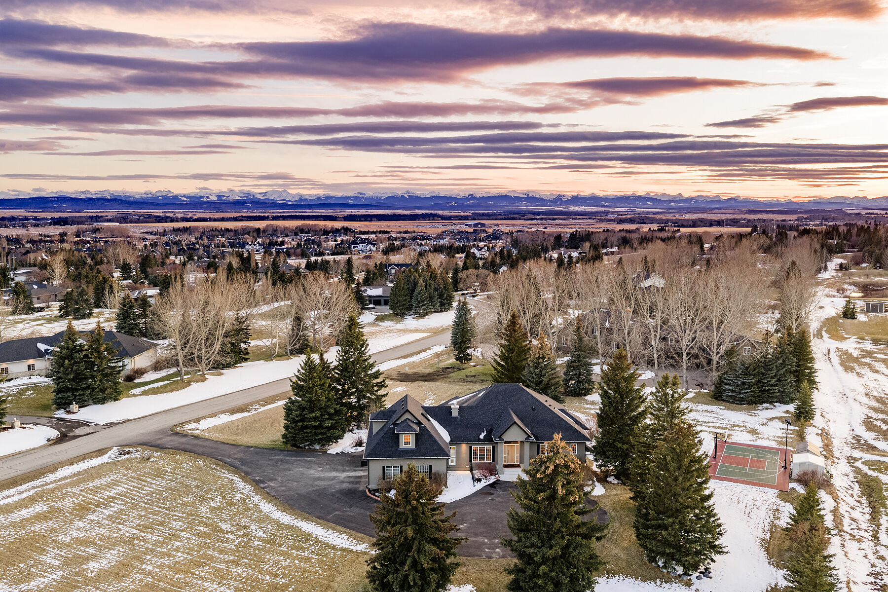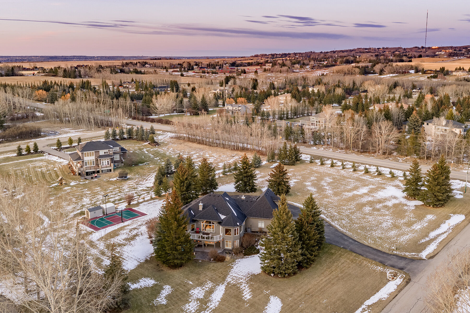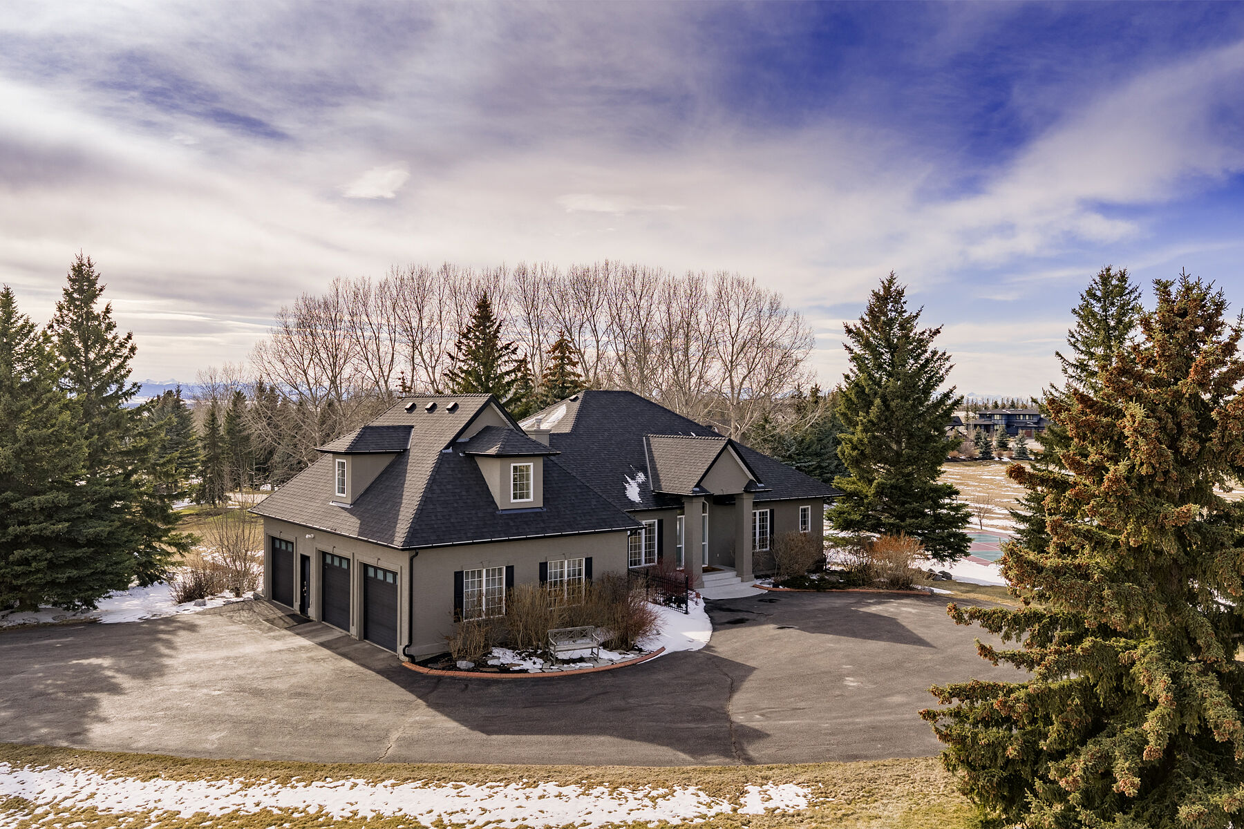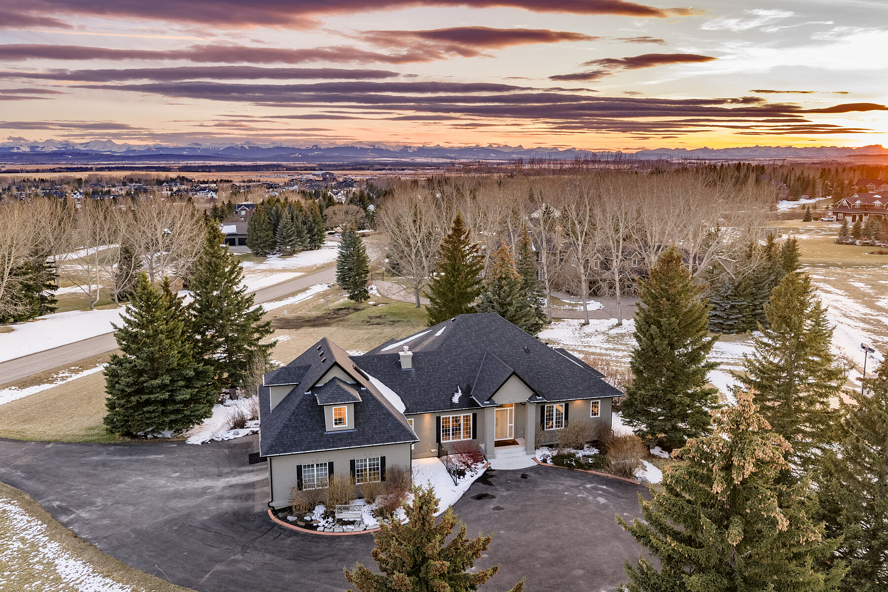 Introducing 3 Spring Meadows Lane, perfectly positioned on two acres in South Springbank. This beautifully appointed home enjoys uninterrupted mountain views, an ever changing backdrop that brings both stillness and perspective to everyday living. Mature landscaping, thoughtfully enhanced with a newly planted screen of trees, creates a sense of privacy that feels both natural and refined. From the moment you step inside, there is a quiet sense of arrival. The entrance draws your eye through the home to expansive windows that frame the landscape beyond, allowing the views to become part of the living experience. Set on a well established street known for its strong sense of community, with school pick up just moments from your door, the setting feels both connected and considered. Originally intended as a forever home, the property has been thoughtfully refined. This is not a renovation for resale, but a careful evolution where quality, craftsmanship, and longevity have guided each decision. An extensive list of upgrades is available. The main floor offers a beautifully balanced layout. A custom designed office with bespoke cabinetry provides a quiet place to work or read, while the principal living room is both generous and inviting, centred around a reimagined fireplace with a custom cast mantle by DreamCast, a microcement surround, and a Kozy Heat Nordik 48 inch gas fireplace with herringbone detail. Soaring ceilings and expansive windows fill the space with natural light. The kitchen is designed for both everyday living and hosting, anchored by a substantial island with an integrated induction cooktop, solid walnut cabinetry, and generous storage throughout. The primary suite is quietly set apart, with large windows capturing the surrounding landscape, a beautifully updated ensuite, and a generous walk in dressing room. A lofted area offers flexibility for guests, a studio, or additional living space. Practicality has been carefully considered, with an organised mudroom, dedicated dog entry, and direct access to the triple heated garage. A secondary stair leads conveniently to the lower level. The lower level extends the home beautifully, offering a dedicated gym, private cinema room, and a spacious recreation area with a custom arched walk up bar. Two well proportioned bedrooms and a five piece bathroom complete the space, along with walkout access to a sheltered patio and swim spa. Outdoors, a professionally lit sport court extends the home’s versatility, offering a wonderful setting for both recreation and relaxed evenings. A rare opportunity to enjoy acreage living in an established pocket of South Springbank, where thoughtful design, community, and mountain views come together with ease.