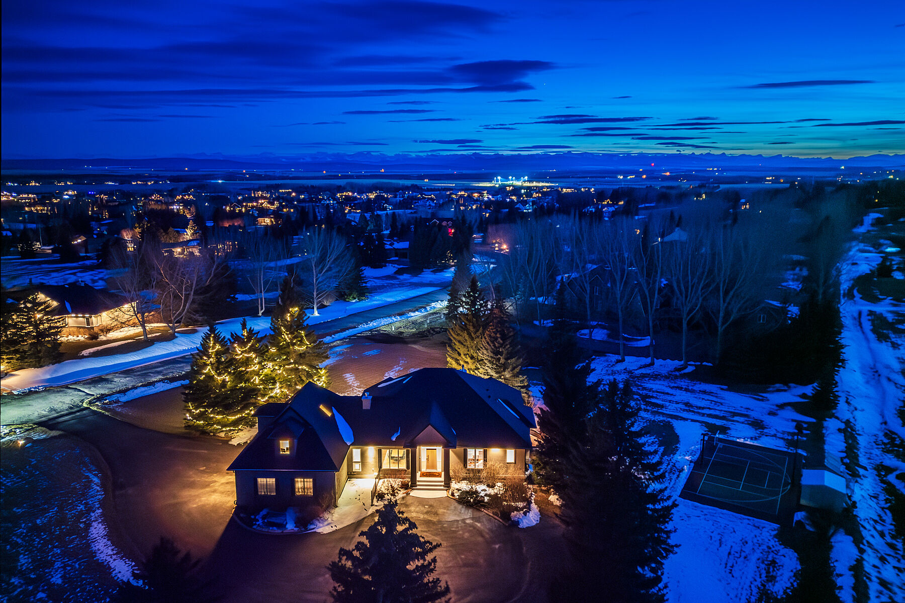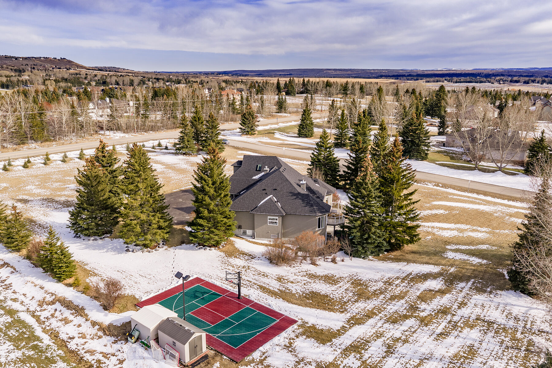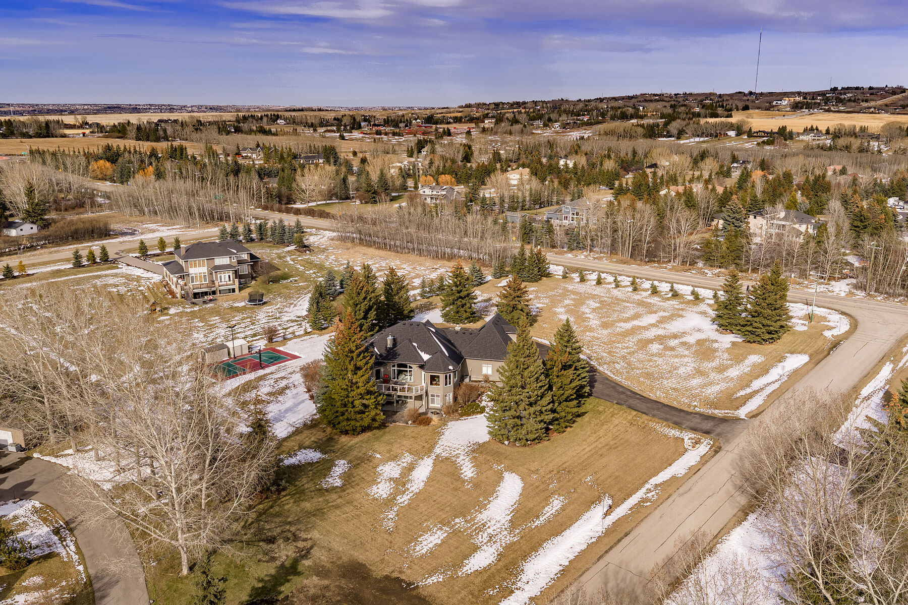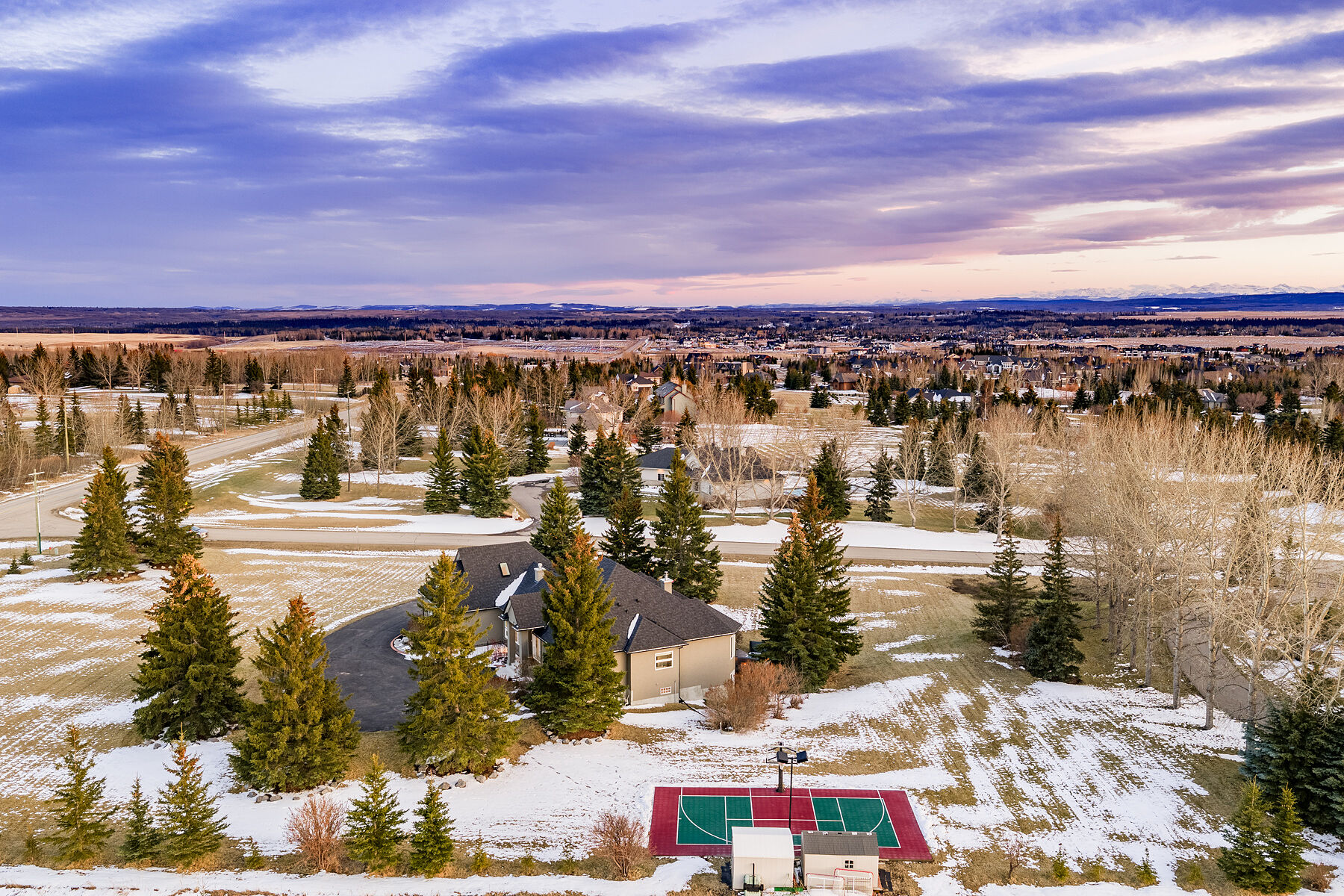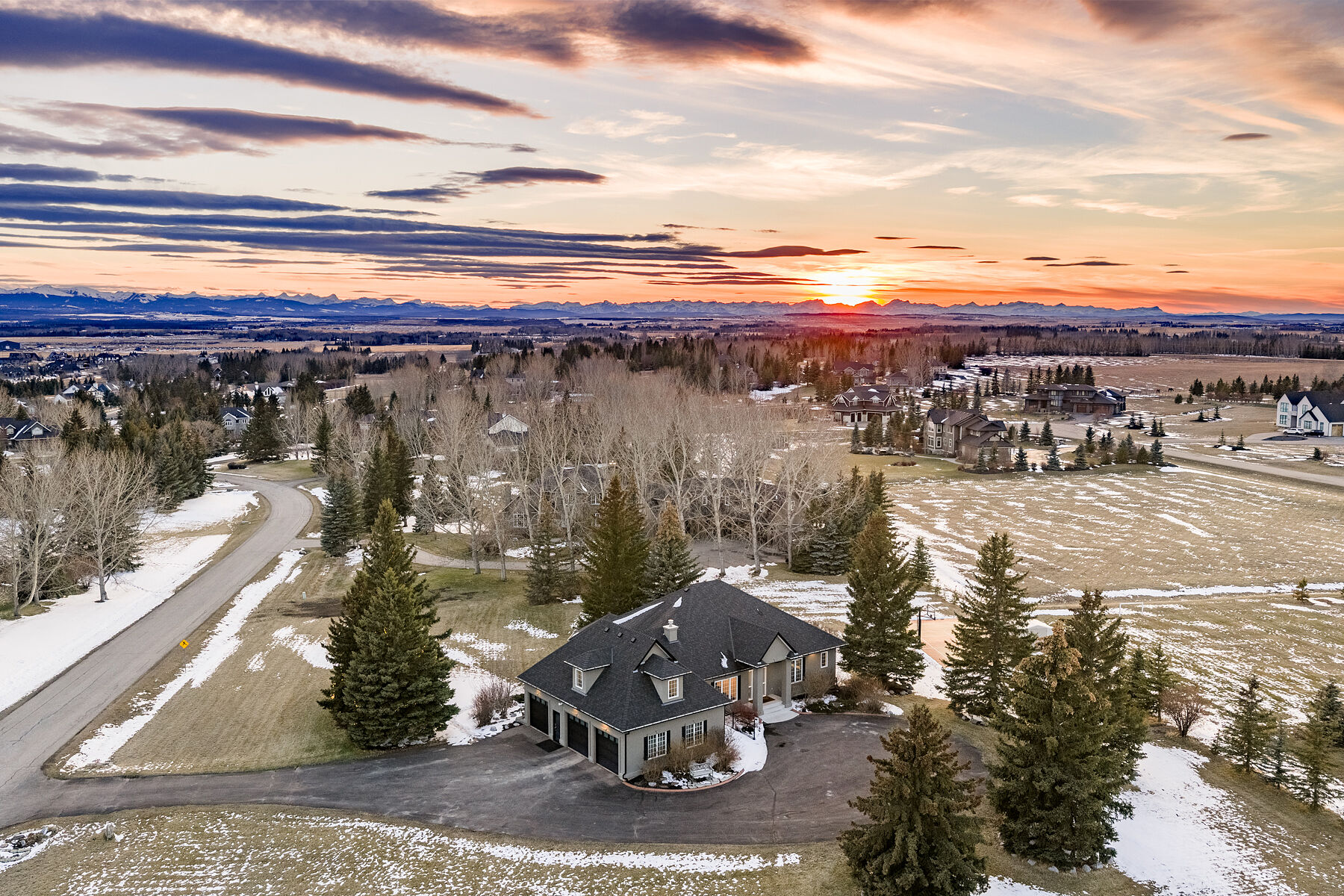 Introducing 3 Spring Meadows Lane, perfectly positioned on two acres in South Springbank. This beautifully appointed home enjoys uninterrupted mountain views, an ever changing backdrop that brings both stillness and perspective to everyday living. Mature landscaping, thoughtfully enhanced with a newly planted screen of trees, creates a sense of privacy that feels both natural and refined. From the moment you step inside, there is a quiet sense of arrival. The entrance draws your eye through the home to expansive windows that frame the landscape beyond, allowing the views to become part of the living experience. Set on a well established street known for its strong sense of community, with school pick up just moments from your door, the setting feels both connected and considered. Originally intended as a forever home, the property has been thoughtfully refined. This is not a renovation for resale, but a careful evolution where quality, craftsmanship, and longevity have guided each decision. An extensive list of upgrades is available. The main floor offers a beautifully balanced layout. A custom designed office with bespoke cabinetry provides a quiet place to work or read, while the principal living room is both generous and inviting, centred around a reimagined fireplace with a custom cast mantle by DreamCast, a microcement surround, and a Kozy Heat Nordik 48 inch gas fireplace with herringbone detail. Soaring ceilings and expansive windows fill the space with natural light. The kitchen is designed for both everyday living and hosting, anchored by a substantial island with an integrated induction cooktop, solid walnut cabinetry, and generous storage throughout. The primary suite is quietly set apart, with large windows capturing the surrounding landscape, a beautifully updated ensuite, and a generous walk in dressing room. A lofted area offers flexibility for guests, a studio, or additional living space. Practicality has been carefully considered, with an organised mudroom, dedicated dog entry, and direct access to the triple heated garage. A secondary stair leads conveniently to the lower level. The lower level extends the home beautifully, offering a dedicated gym, private cinema room, and a spacious recreation area with a custom arched walk up bar. Two well proportioned bedrooms and a five piece bathroom complete the space, along with walkout access to a sheltered patio and swim spa. Outdoors, a professionally lit sport court extends the home’s versatility, offering a wonderful setting for both recreation and relaxed evenings. A rare opportunity to enjoy acreage living in an established pocket of South Springbank, where thoughtful design, community, and mountain views come together with ease.