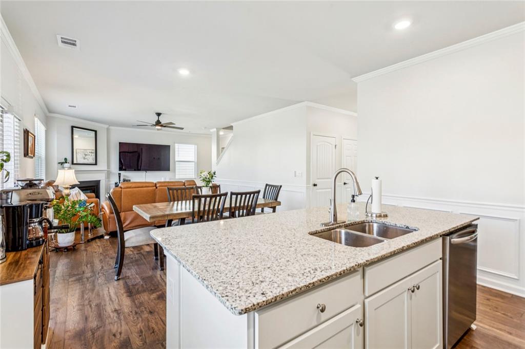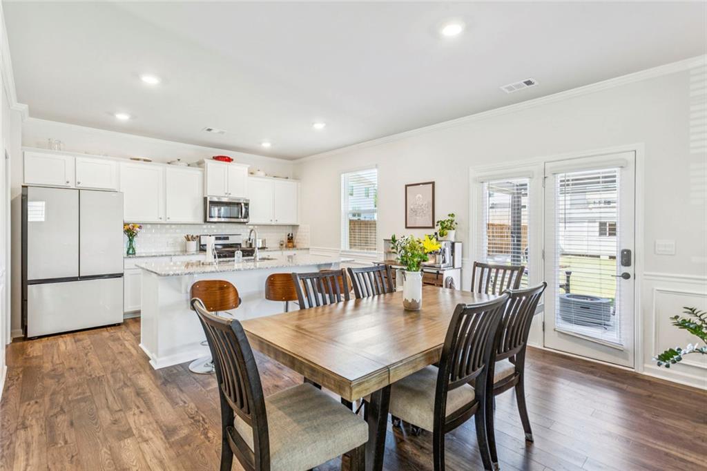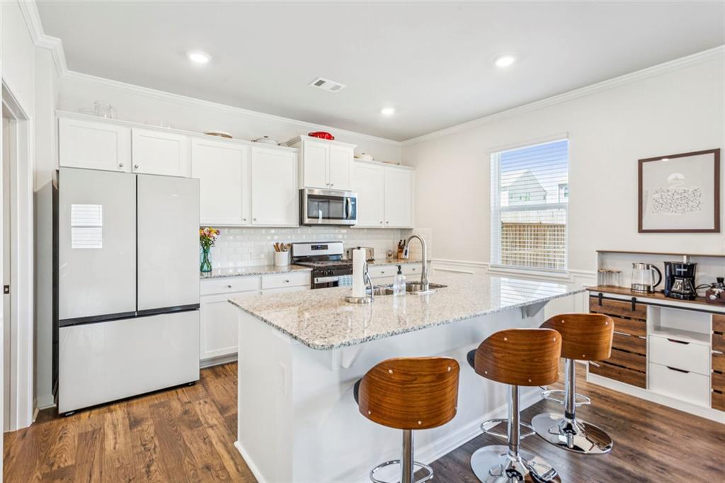 Welcome to 430 Highgrove Way a beautifully maintained 4-bedroom, 2.5-bath home that feels like new nestled in an amenity-rich community. From the moment you step inside, you're greeted by abundant natural light and premium LVP flooring throughout the main level, creating a warm and inviting atmosphere. The gourmet kitchen is truly the heart of the home, featuring white cabinetry, granite countertops, stainless steel appliances, a gas range, breakfast bar, and a large pantry with custom shelving all overlooking a spacious great room with a cozy fireplace, perfect for everyday living and entertaining. Upstairs, you'll find like-new carpet throughout and an oversized primary suite complete with a spa-like bath, including a separate shower and tub, dual vanities, and a generous walk-in closet. All while the secondary bedrooms don't skimp on spaciousness either. The home continues to impress outdoors with a beautifully manicured lawn, a large fenced backyard, raised garden beds, a pergola-covered patio ideal for relaxing or hosting, and an additional storage shed. The garage(equipped with automatic locking system) is upgraded with custom lighting, organization ready areas, and finished floors, adding both style and practicality. Located just minutes from shopping, dining, and entertainment, this home is also part of a community that offers a junior Olympic-sized pool, playground, basketball and tennis courts making it perfect for an active lifestyle. This home checks every box come see it for yourself before it's gone!
