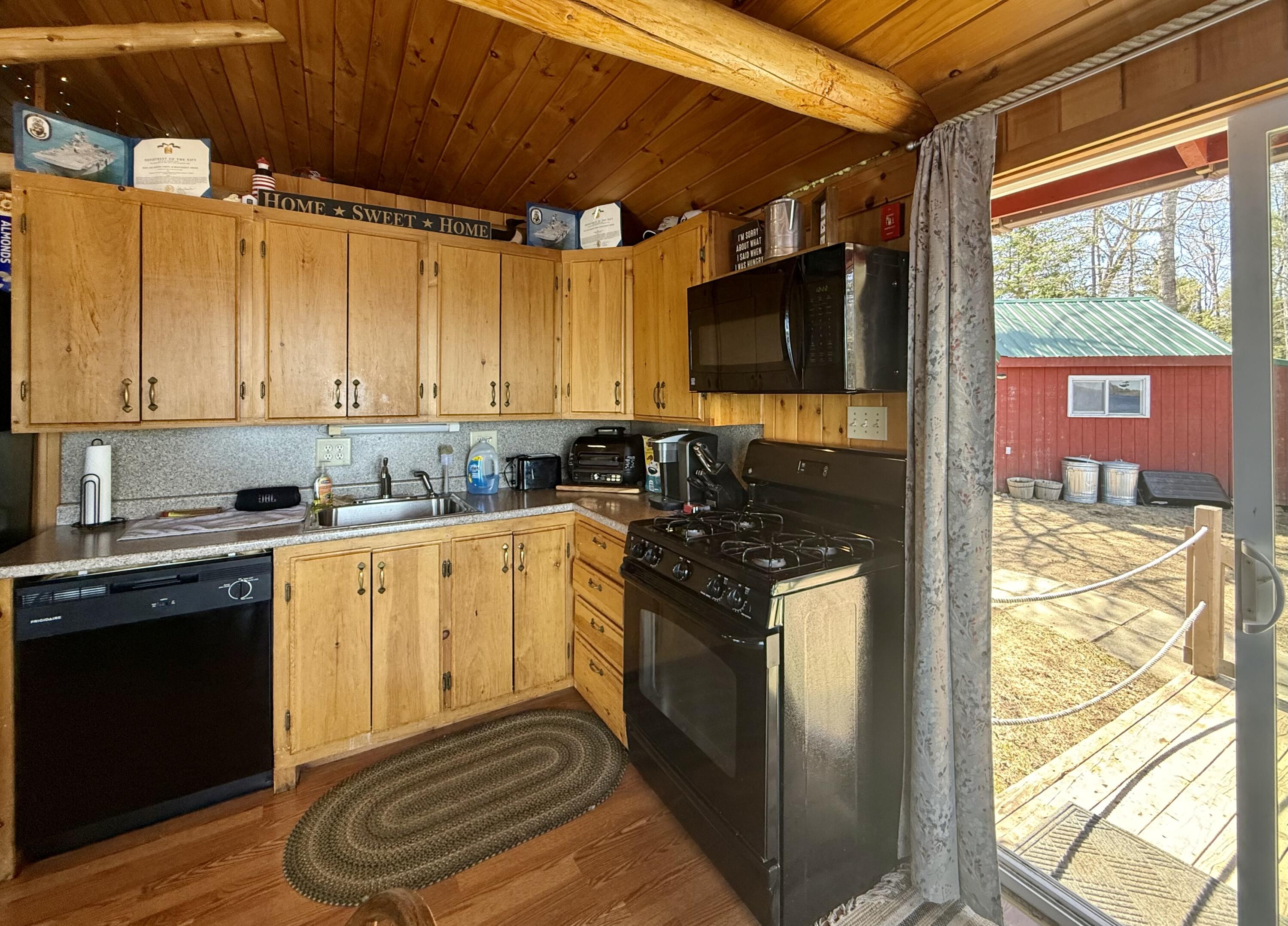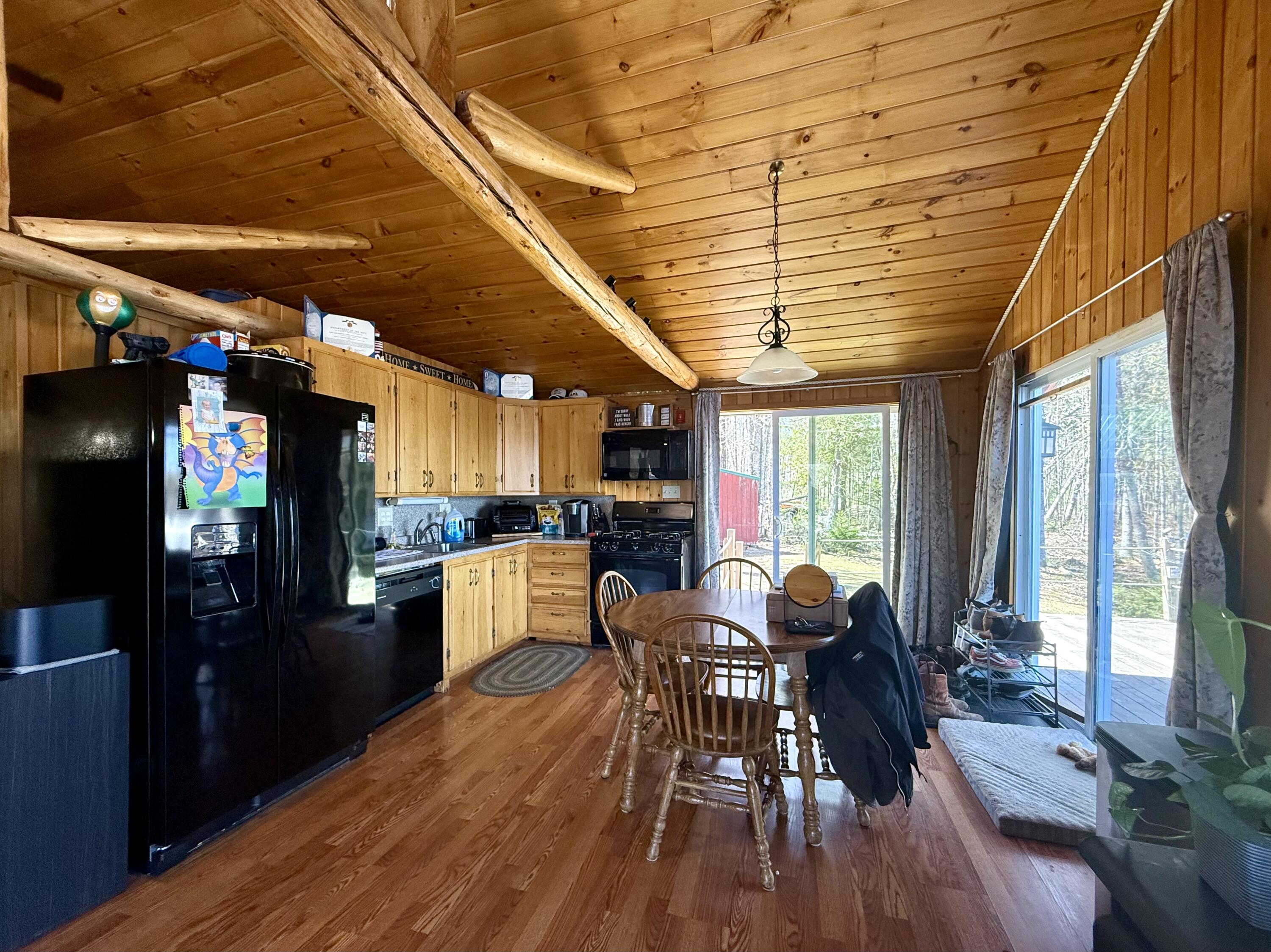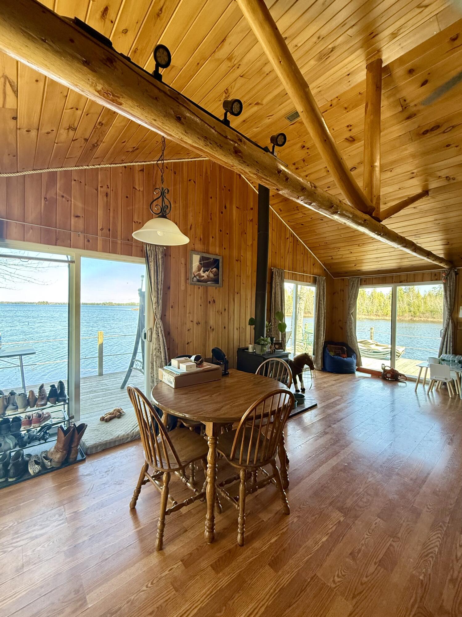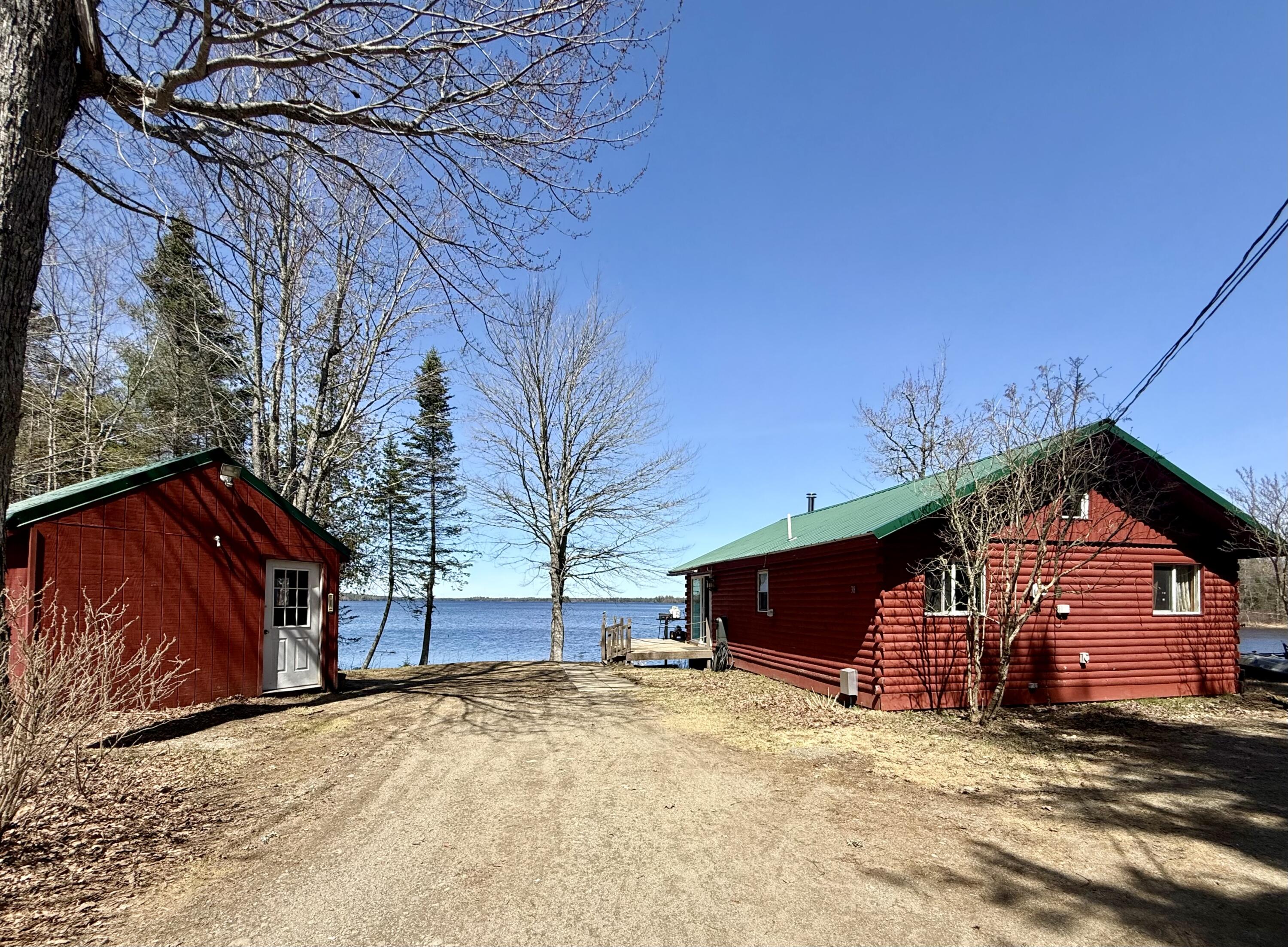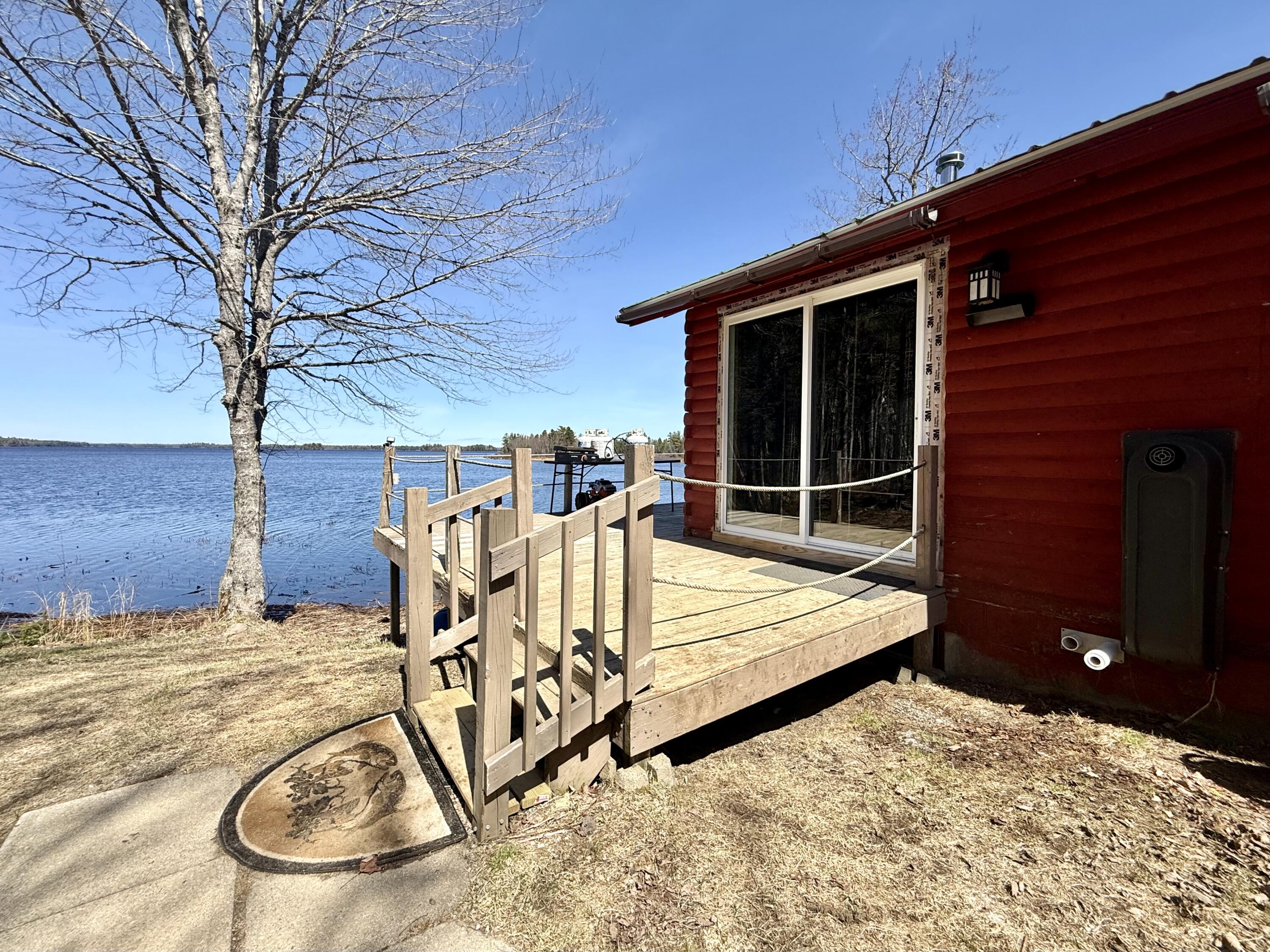 Perched at the edge of Grand Falls Flowage in Baileyville, this classic year round Maine log cabin captures the essence of lakeside living. Crafted for year-round living, the residence blends rustic character with comfort, offering a seamless connection to the water just steps from the door. A generous waterside deck extends toward the shoreline, perfectly positioned with a northeast exposure to take in ever-changing sunrises over the lake. Inside, vaulted ceilings and a well-proportioned open living area create a sense of volume and ease, ideal for both quiet retreats and entertaining. Natural wood finishes and thoughtful details lend warmth and authenticity while maintaining a clean comfortable feel. Two bedrooms are complemented by a sleeping loft, providing additional accommodations for adventurous guests! Grand Falls Flowage is well regarded for its small mouth bass and white perch fishing, making this an exceptional setting for anglers. The property also lends itself to four-season recreation, with opportunities for fishing, swimming, and boating in the warmer months, and easy access to off-roading and snowmobiling when winter arrives. Whether you're seeking outdoor adventure or a peaceful escape, this setting offers both in equal measure. The property provides room to add a garage if desired, allowing for future expansion without compromising the natural surroundings. Privately situated yet an easy half-hour drive to the amenities of Calais. 38 Lamb Farm Road: Timeless & quintessential Maine waterfront property.