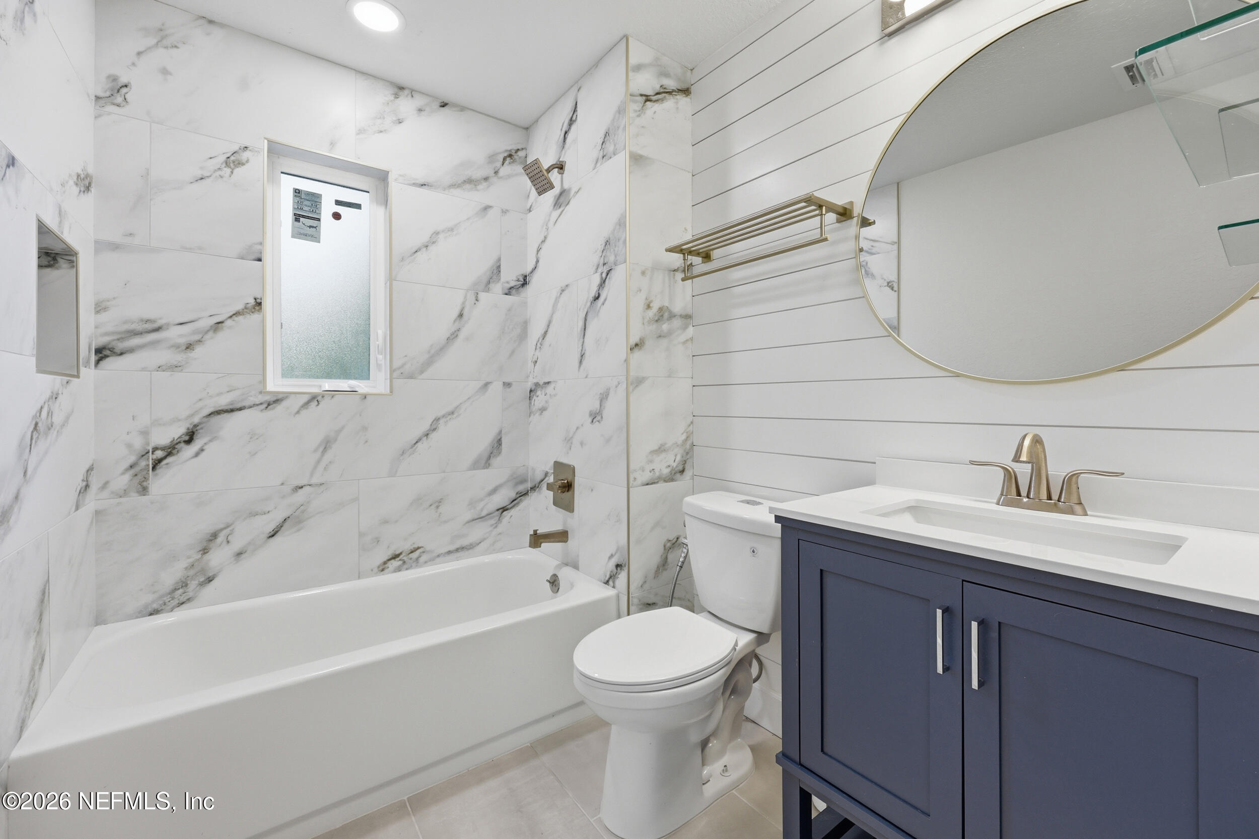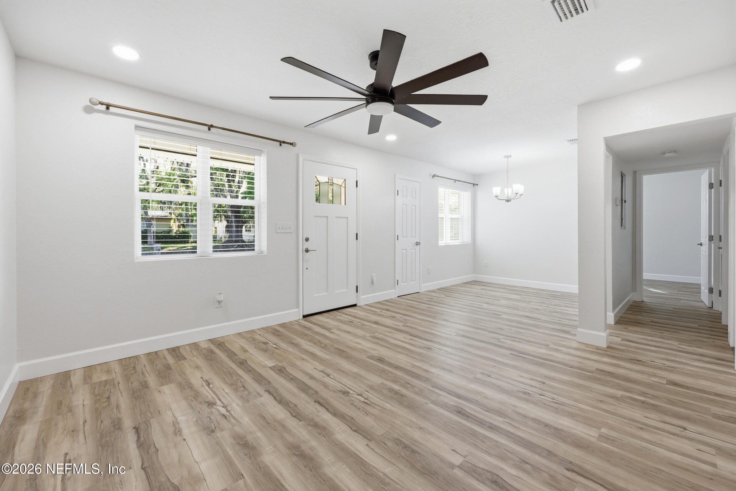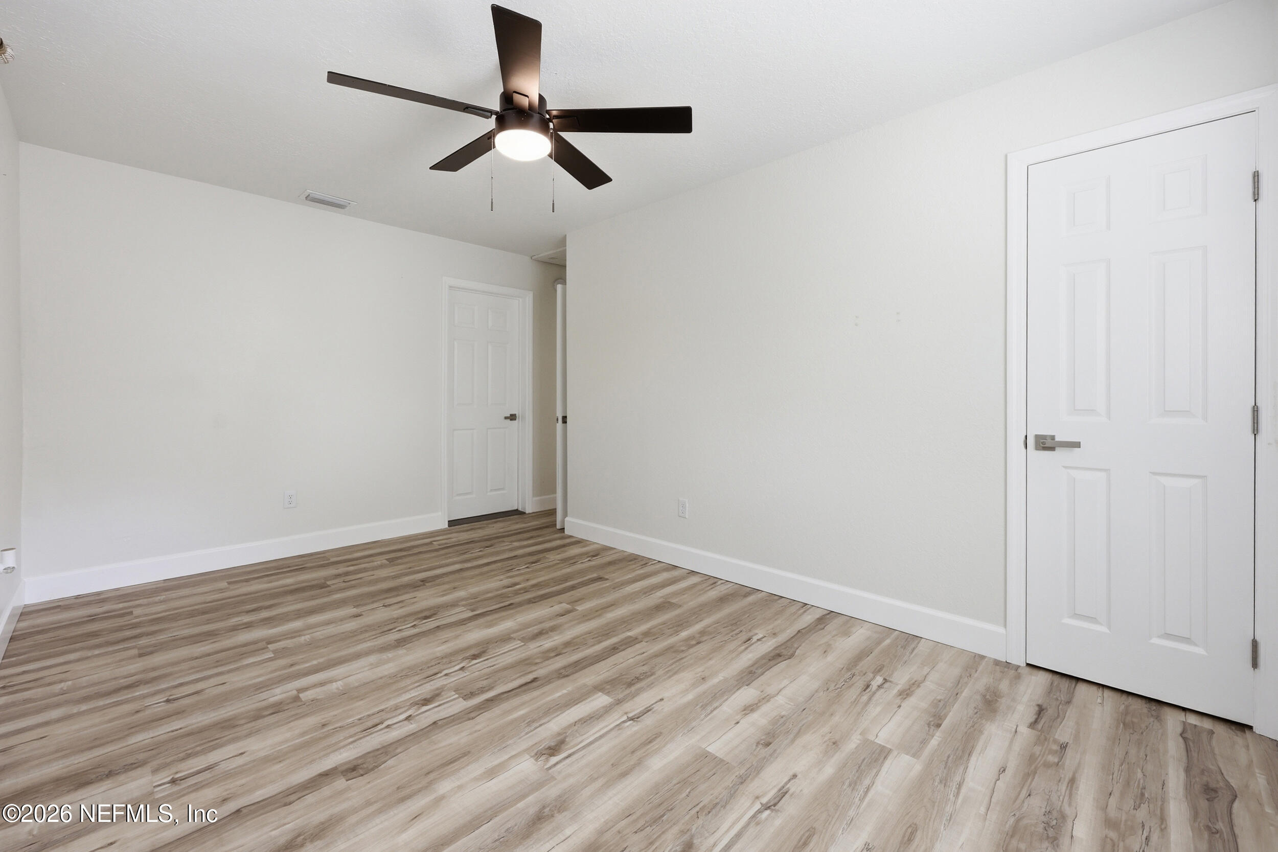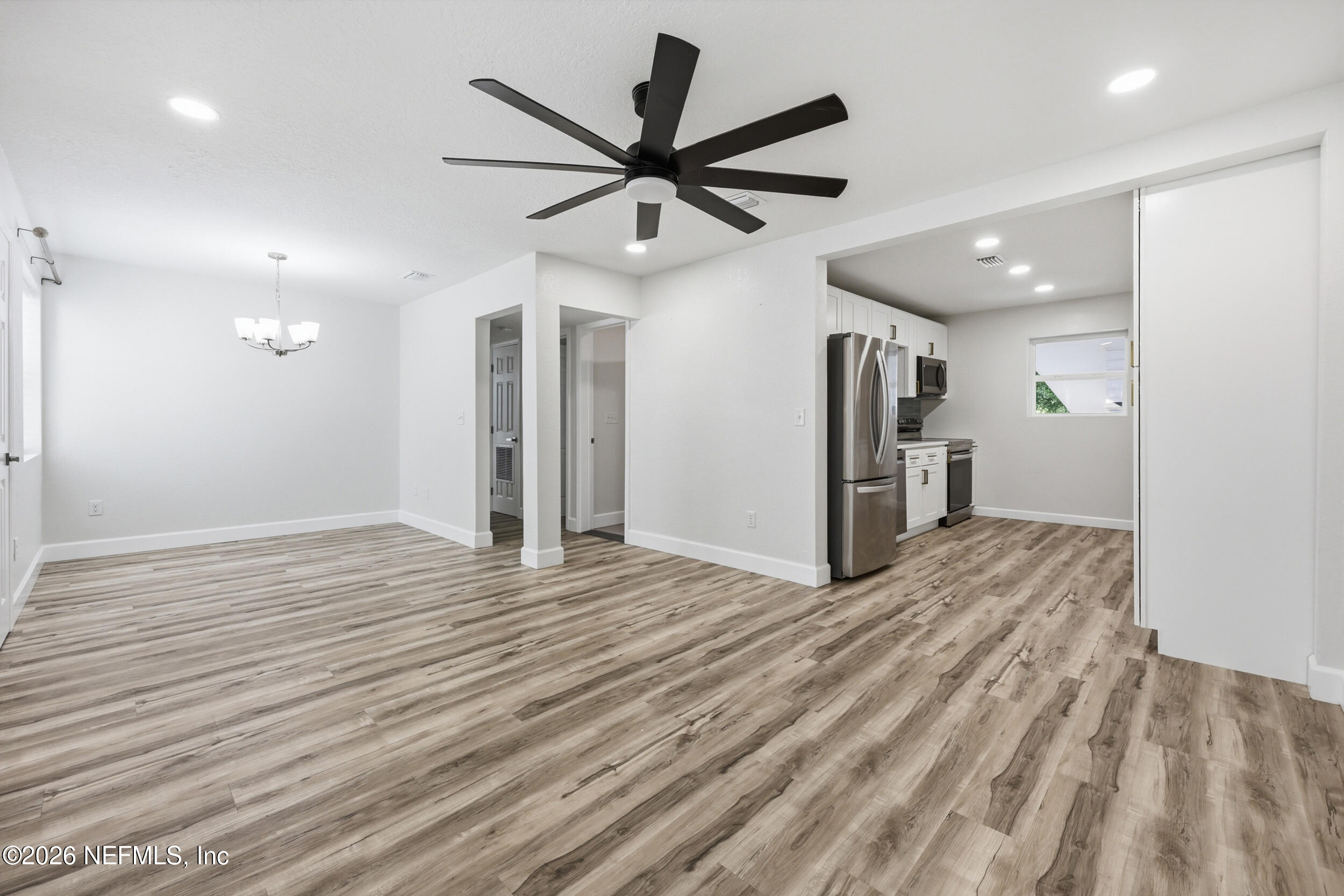 This meticulously maintained 3-bedroom, 1-bathroom ranch home is move-in ready and shows like a model. Inside enjoy luxury plank flooring, recessed lighting and an open layout. The kitchen features white shaker cabinets with gold hardware, quartz countertops, stainless steel appliances and slate blue tile backsplash. The bathroom boasts marble-style tile, a soaking tub, a walk-in shower and a shiplap accent wall. The primary bedroom offers room to relax and unwind. Outdoors, a covered patio overlooks a spacious, tree-lined backyard - a private setting ideal for relaxing, entertaining, or creating your own outdoor retreat. Located on a quiet street just minutes from downtown Starke, near shopping, dining and Bradford County schools. Under an hour away from Jacksonville, welcome home to peaceful living without an HOA.