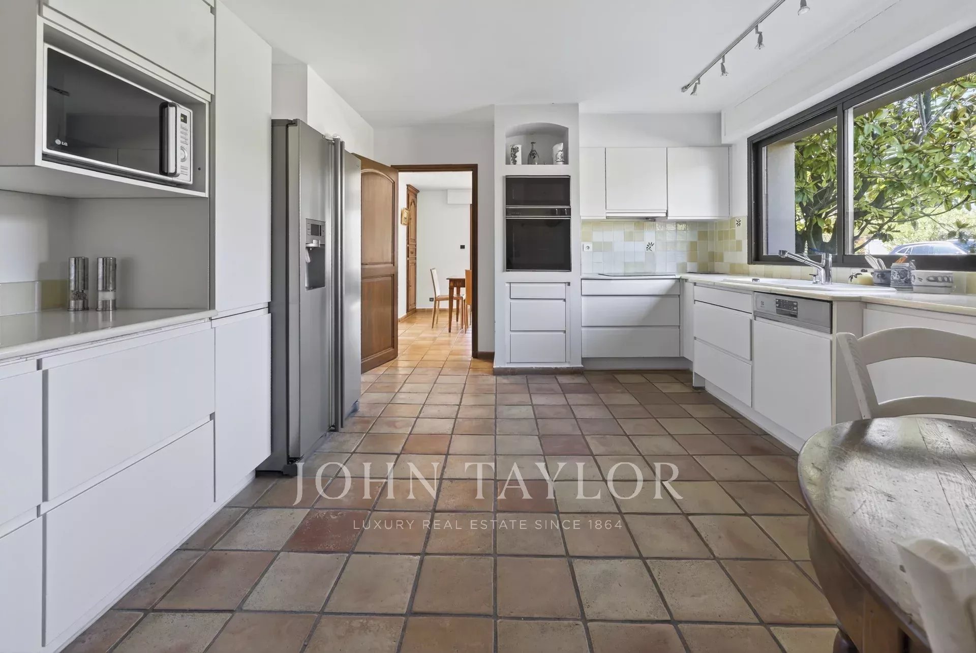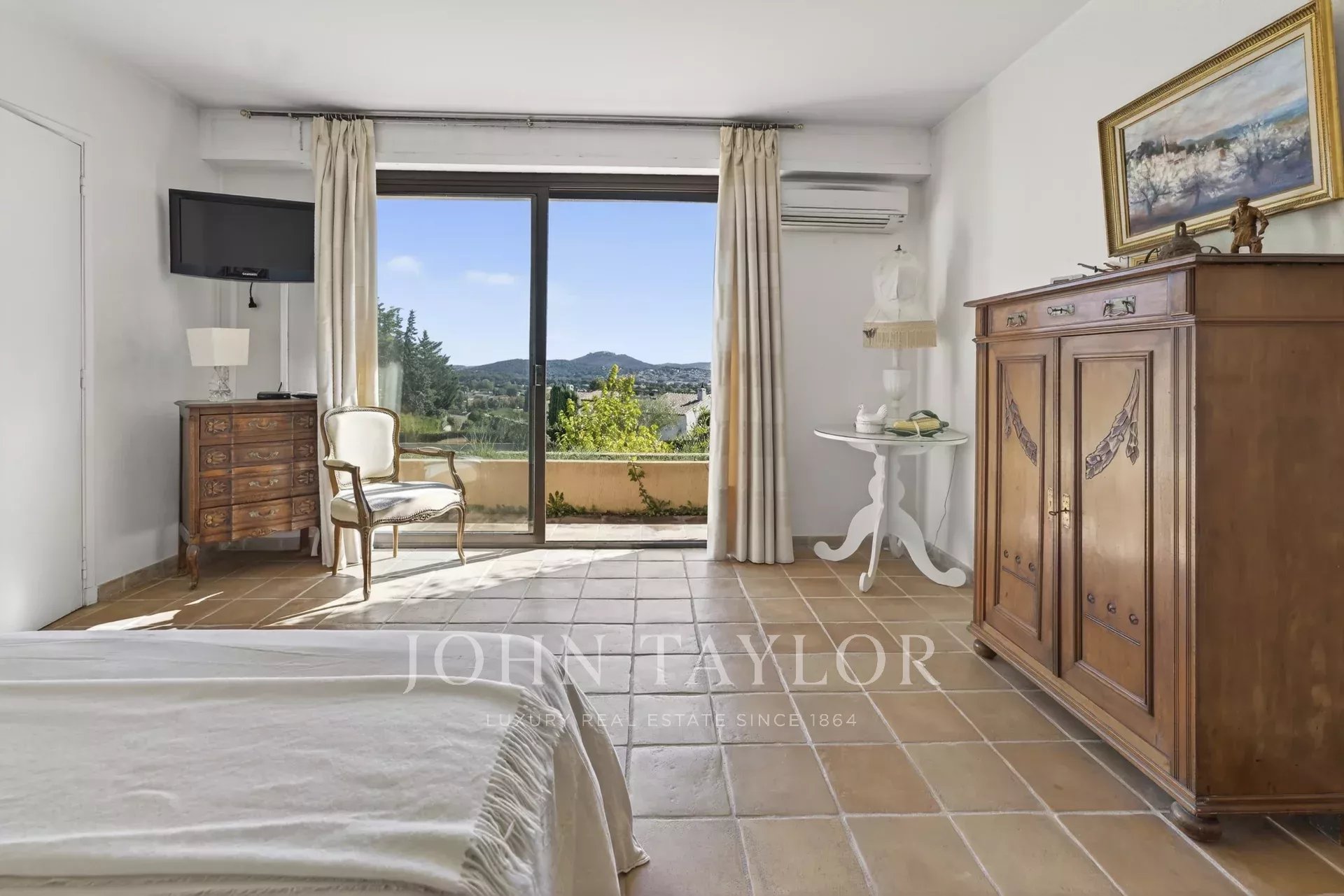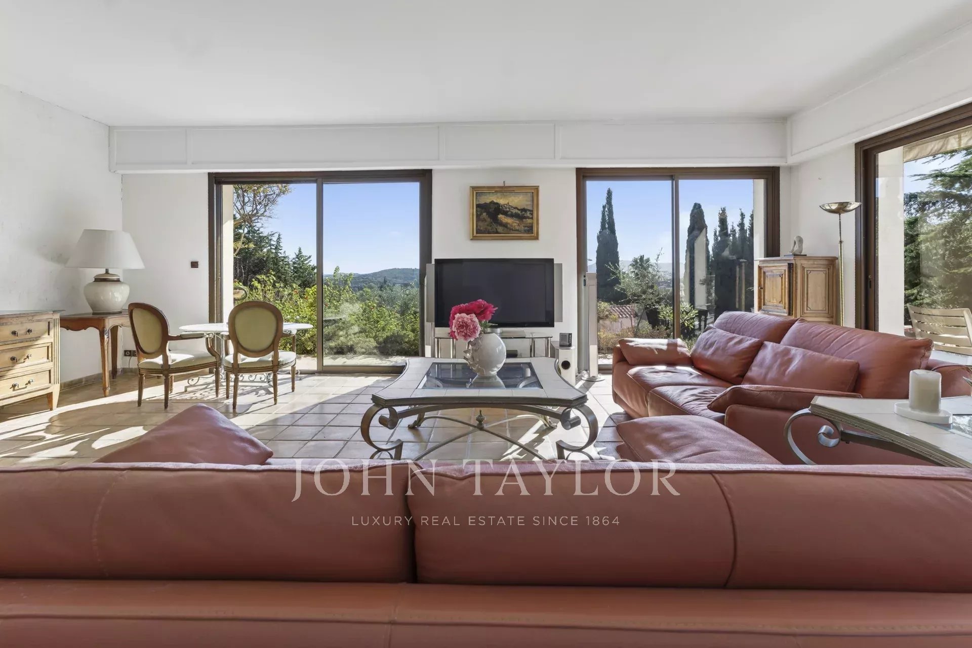 John Taylor Sanary is pleased to present this architect-designed villa, ideally located in Sanary-sur-Mer. Offering 217 sqm of living space, the property is set on a landscaped and enclosed plot of 2,200 sqm in an elevated position.The villa benefits from a desirable south/south-east exposure, open views, and a particularly მშვიდ and peaceful environment. Built in a traditional style, it charms with its generous volumes, natural light, and terracotta flooring, which add authenticity and character.The ground floor features a 41 sqm living room with a fireplace opening onto a large wraparound terrace, a dining room leading to a covered terrace, and a fully equipped 20 sqm kitchen with a dining area. This level also includes a master suite and an independent 32 sqm studio, ideal for guests or creating a self-contained living space.Upstairs, three spacious bedrooms enjoy access to a solarium, a balcony, and a glimpse of the sea.The basement, with a total surface area of 130 sqm, offers several additional rooms as well as a large 89 sqm garage, with space for up to four vehicles.The property is equipped with underfloor heating via a heat pump, air conditioning, aluminum window frames for the bay windows, and wooden interior doors, combining modern comfort with high-quality materials.Outside, the villa features a 5 x 11 meter swimming pool surrounded by expansive terraces, a technical room, and an irrigation system connected to the Canal de Provence. With no overlooking neighbors, this property perfectly combines comfort, space, and tranquility.For further information or to arrange a viewing, please contact Iris de Villars, Real Estate Consultant, at +33 6 60 24 00 92.