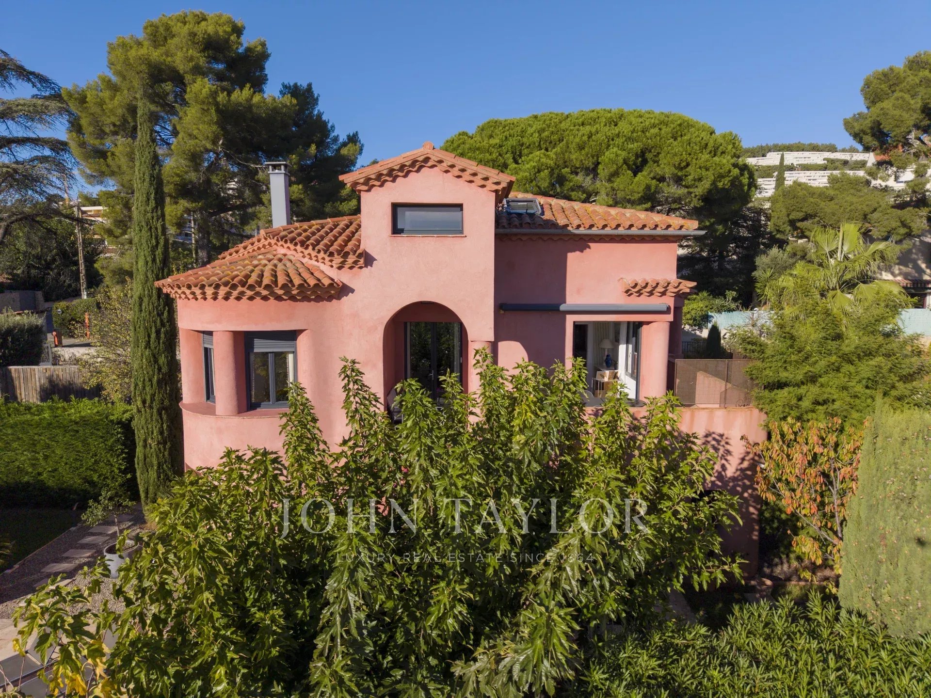 John Taylor Sanary presents, located in the sought-after Escourche district of Bandol, just a ten-minute walk from the town center and the beaches, this 1930s architect-designed house, signed Fleury Linossier, impresses with its timeless charm and prime location. Built in 1932 and fully renovated in 2016, it has preserved its original style while offering modern comfort.The property offers approximately 165 m² of living space (188 m² total floor area) on a flat, landscaped 746 m² plot, facing south. The garden level features two beautiful bedrooms with their own ensuite bathrooms, a laundry room, a separate toilet, and a kitchen opening directly onto the garden and pool. This level also includes a large garage, a boiler room, and a garden storage area.Upstairs, a bright and spacious 45 m² living room opens onto a 25 m² terrace with a lovely sea view. An independent kitchen, a bedroom with shower room, and a separate toilet complete this warm and light-filled level.The top floor offers an air-conditioned bedroom with a private shower room and toilet, a second bedroom, as well as an attic office space. The generous layout allows for comfortably hosting a large family or entertaining guests with ease.Outside, the 4 x 8.5 m swimming pool, equipped with a rolling cover, blends seamlessly into the beautifully landscaped garden enhanced with cypress trees, olive trees, mimosas, and Phoenix palm trees. The property also benefits from an automatic gate and several parking spaces.For further information or to arrange a viewing, please contact Iris de Villars, Real Estate Consultant, at +33 (0)6 60 24 00 92