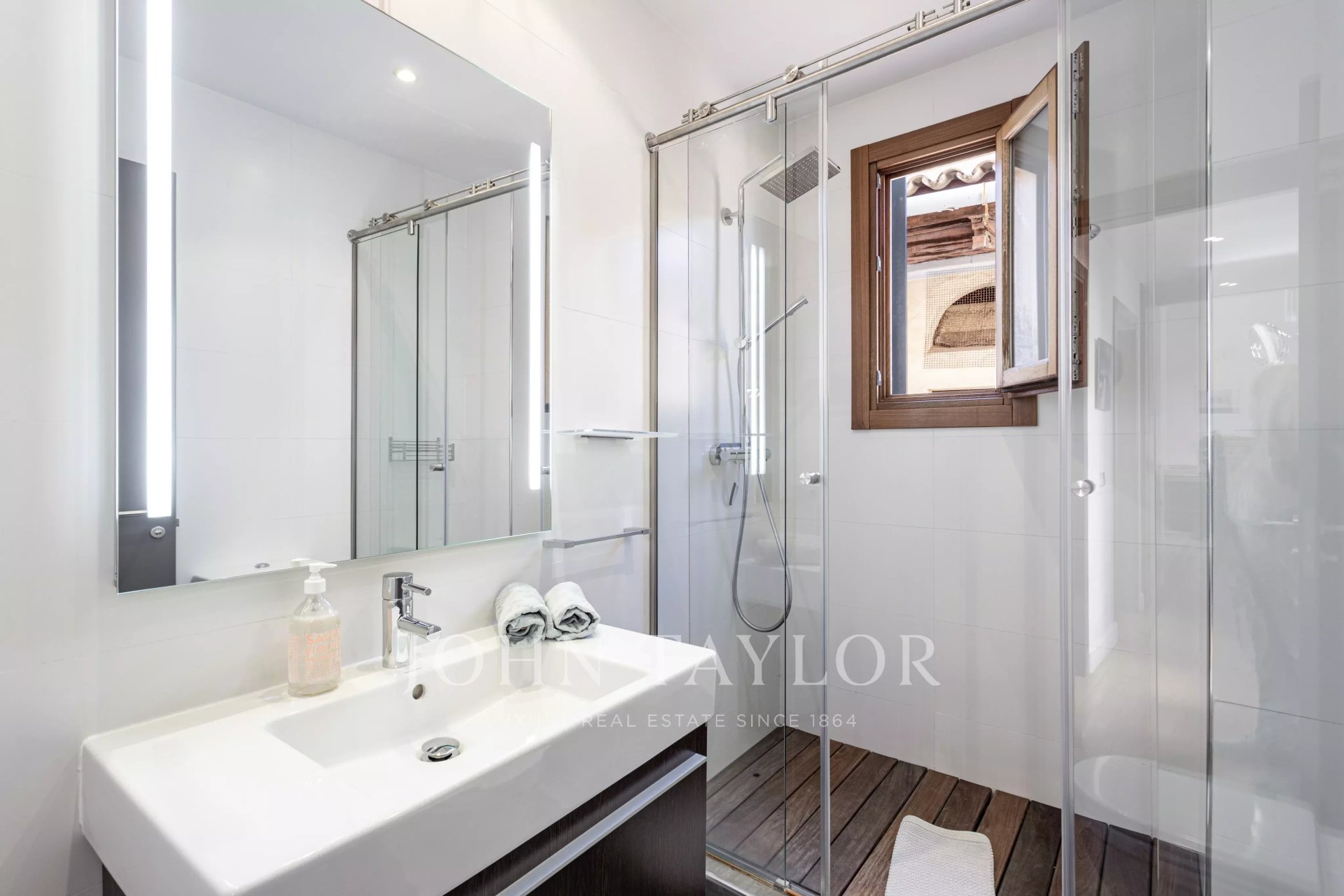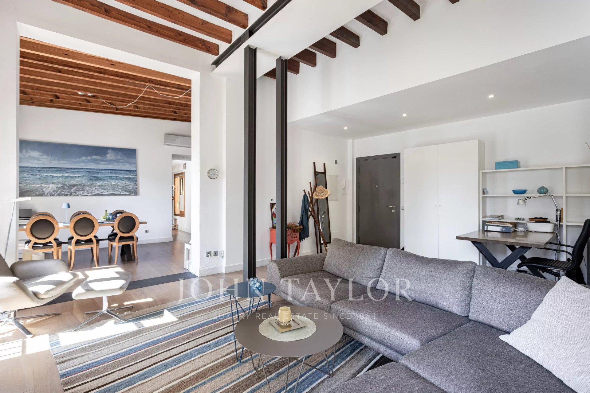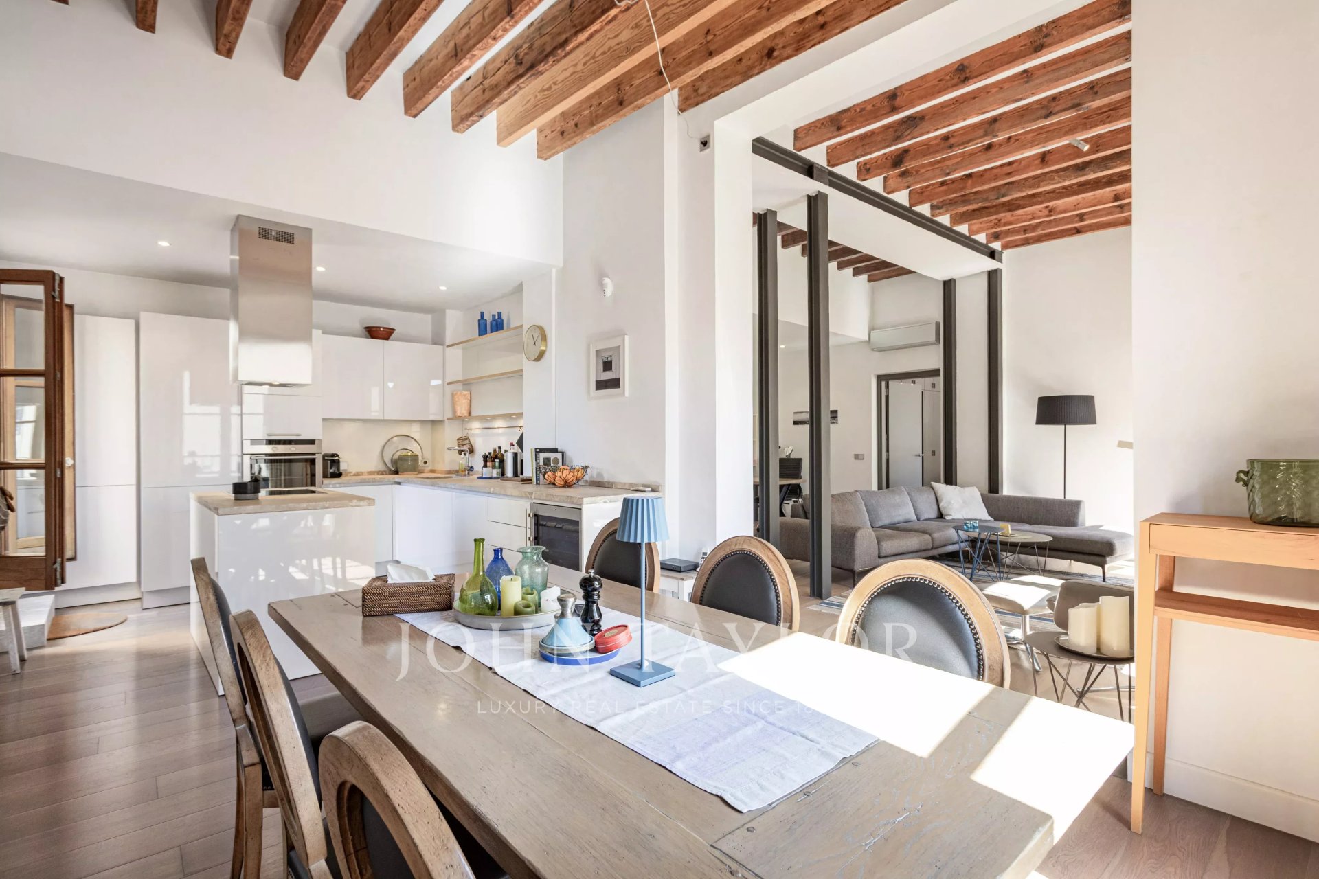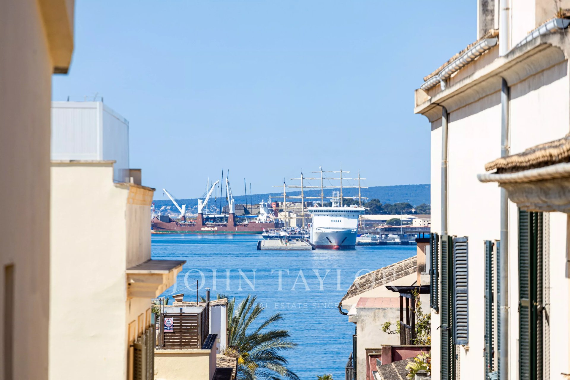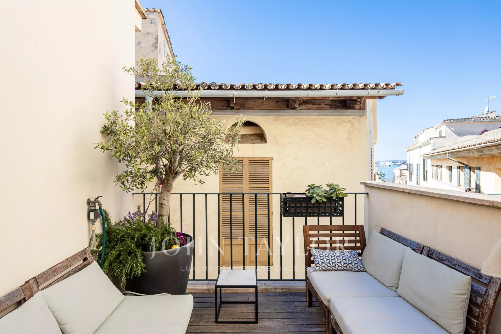 In the heart of Calatrava, one of the most sought-after areas of Palma’s old town, this property occupies a corner position overlooking a wide square, offering a very rare feeling in the historic centre: open light, privacy, and no buildings directly in front of the windows, with the theatre located on the opposite side of the square.Set in a well-maintained building from 2012 with lift access and good-quality finishes, the property was originally designed as two separate apartments and still retains both independent entrances, offering the genuine possibility of dividing it again if desired.Today it functions as a single home with three bedrooms and two bathrooms. The main living area is arranged as an open-plan space where the living room, dining area and kitchen flow together while still feeling clearly defined. Being on a corner, the light moves through the home throughout the day: morning sun fills the living room, midday light gathers on the south-facing terrace, and in the afternoon the interior regains a warm glow from the reflection of the square.From the terrace, located on the same level as the kitchen, there is also a pleasant partial sea view, which gives the space a greater sense of openness.The layout clearly separates the night area. The master suite sits at one end of the property, with an en-suite bathroom discreetly integrated behind a concealed door within a wardrobe, while the two guest bedrooms are located on the opposite side.All rooms are exterior, ceilings are high with exposed beams, and the overall condition is very well maintained. The property also includes a parking space within the same building, a highly valuable asset in the old town.A home with a very special light, a well-resolved layout, and a location that is difficult to match within Palma’s historic centre.One of the best-preserved old towns in Spain, featuring the most amazing Gothic architecture in the Mediterranean, surrounded by hundreds of narrow streets, excellent shopping, great restaurants, art galleries, museums, and amazing ancient passages leading to important historical monuments, landmark buildings, and the jewel of the crown: Catedral Santa Maria, La Seu. It is very popular for social life and offers very trendy places to visit, like Passeig del Born, Avenida de Jaume III, Passeig de la Rambla, La Llonja, and some of the most visited “Plazas”, such as Plaza Santa Eulalia, Plaza Cort, Plaza Mercat, and Plaza Mayor, among others. Casco Antiguo is one of the most desirable districts for property investment. Many of them have been renovated over the past few years and turned into luxury apartments with all the modern amenities.