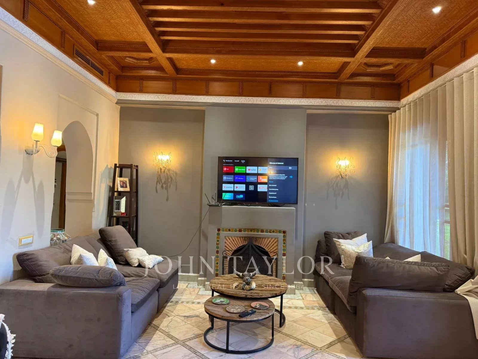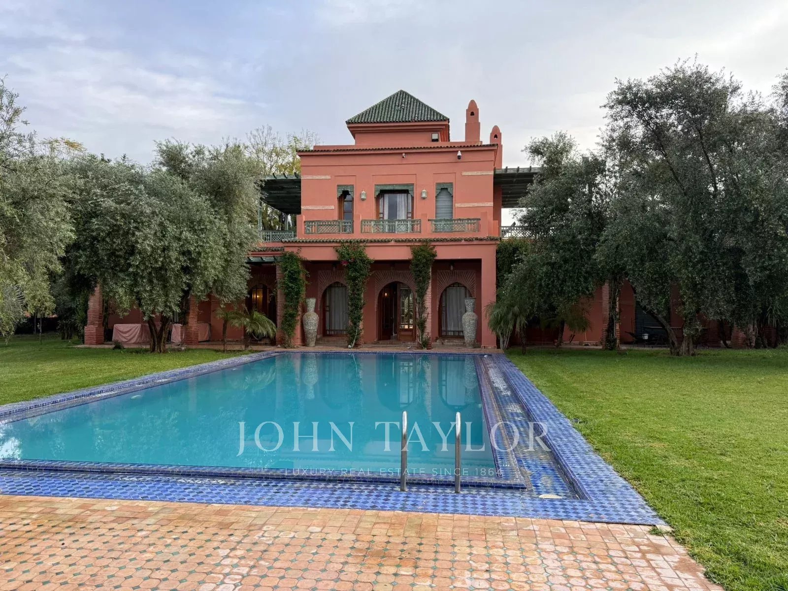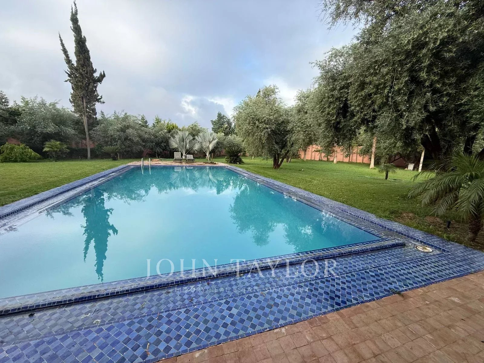 CHARM VILLA IN SECURE ESTATE 10 MINUTES FROM MARRAKECH CENTERThis recently renovated house offers a living space of approximately 350 sqm distributed as follows:4 suites including 1 master upstairs with private terrace and jacuzzi, double reception with fireplace opening onto garden and swimming pool, maid's room.Beautiful landscaped garden of 2700 sqmVERY QUIETSECUREDESIRED ADDRESSPERFECT CONDITIONBuyer’s fee: 3% including tax of the sale price
