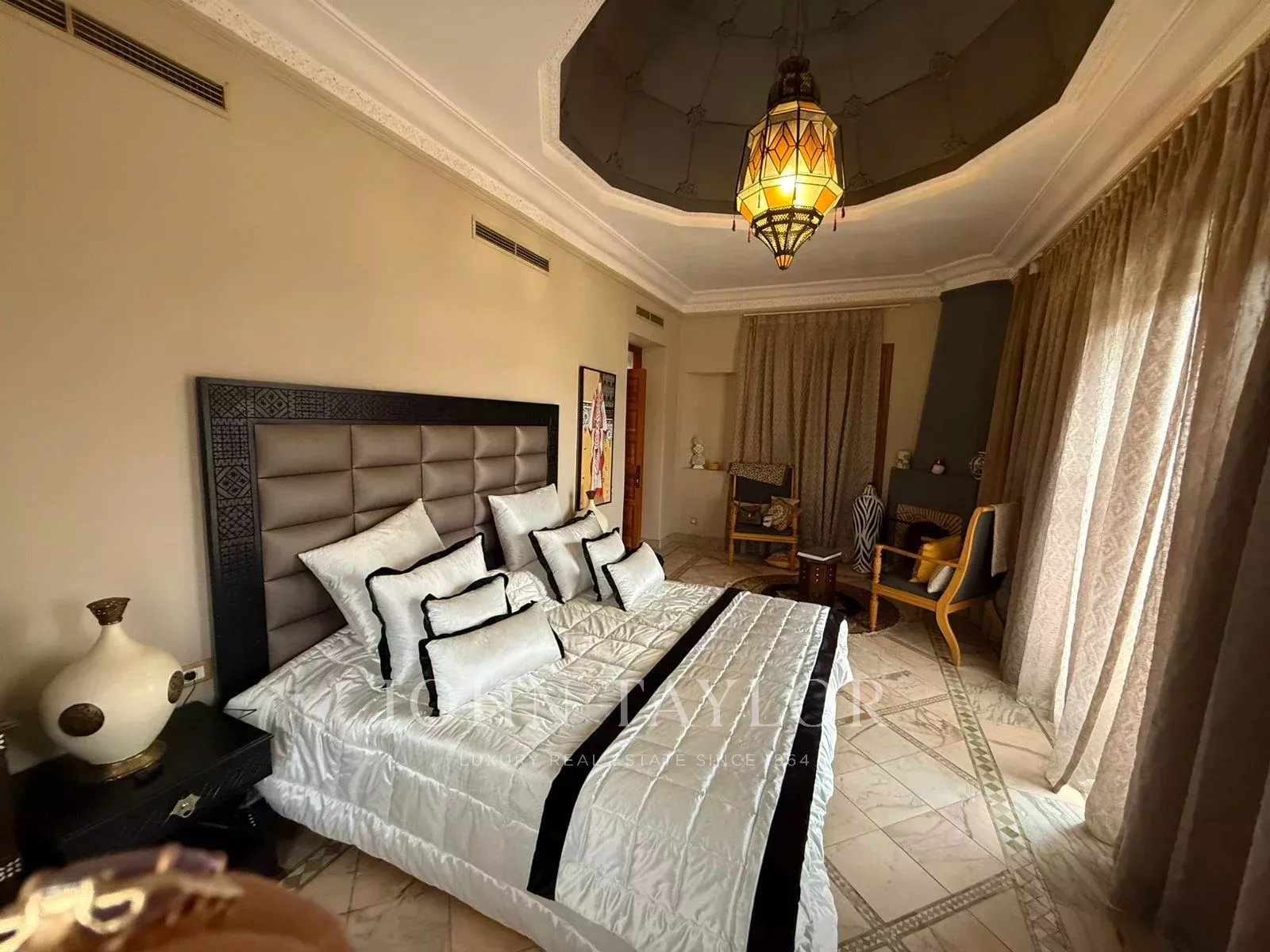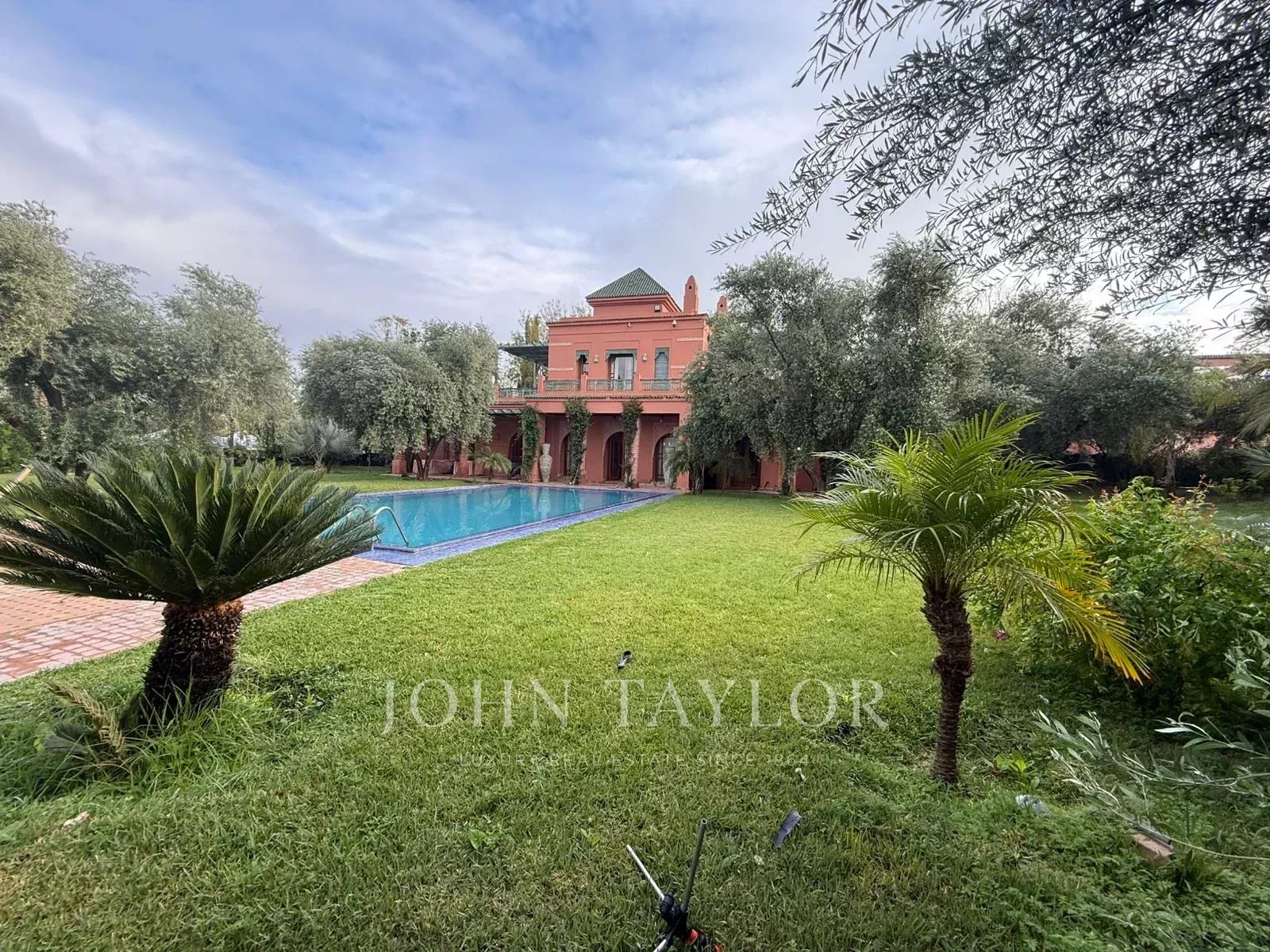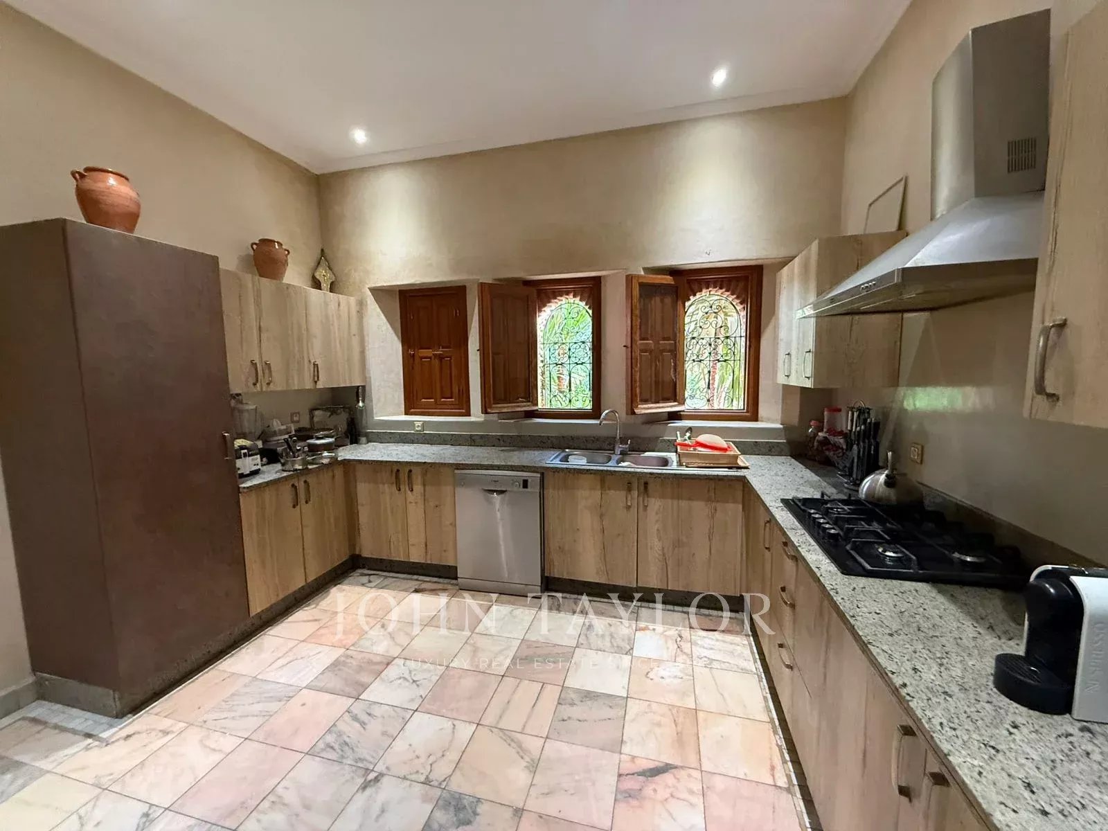CHARM VILLA IN SECURE ESTATE 10 MINUTES FROM MARRAKECH CENTERThis recently renovated house offers a living space of approximately 350 sqm distributed as follows:4 suites including 1 master upstairs with private terrace and jacuzzi, double reception with fireplace opening onto garden and swimming pool, maid's room.Beautiful landscaped garden of 2700 sqmVERY QUIETSECUREDESIRED ADDRESSPERFECT CONDITIONBuyer’s fee: 3% including tax of the sale price
